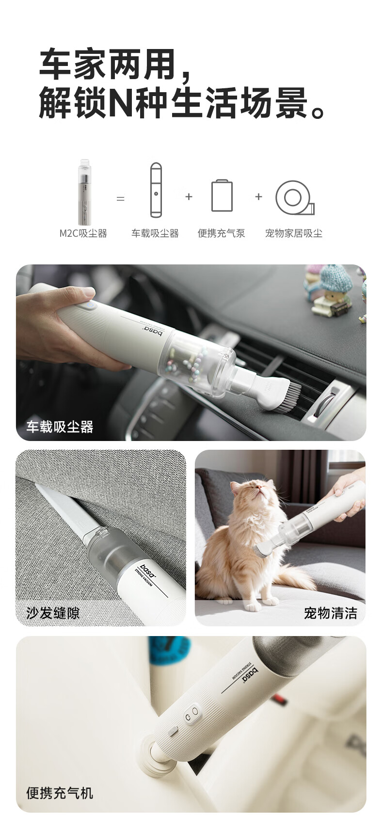 basa车载吸尘器 手持小型无线大吸力强力吹吸抽充一体机