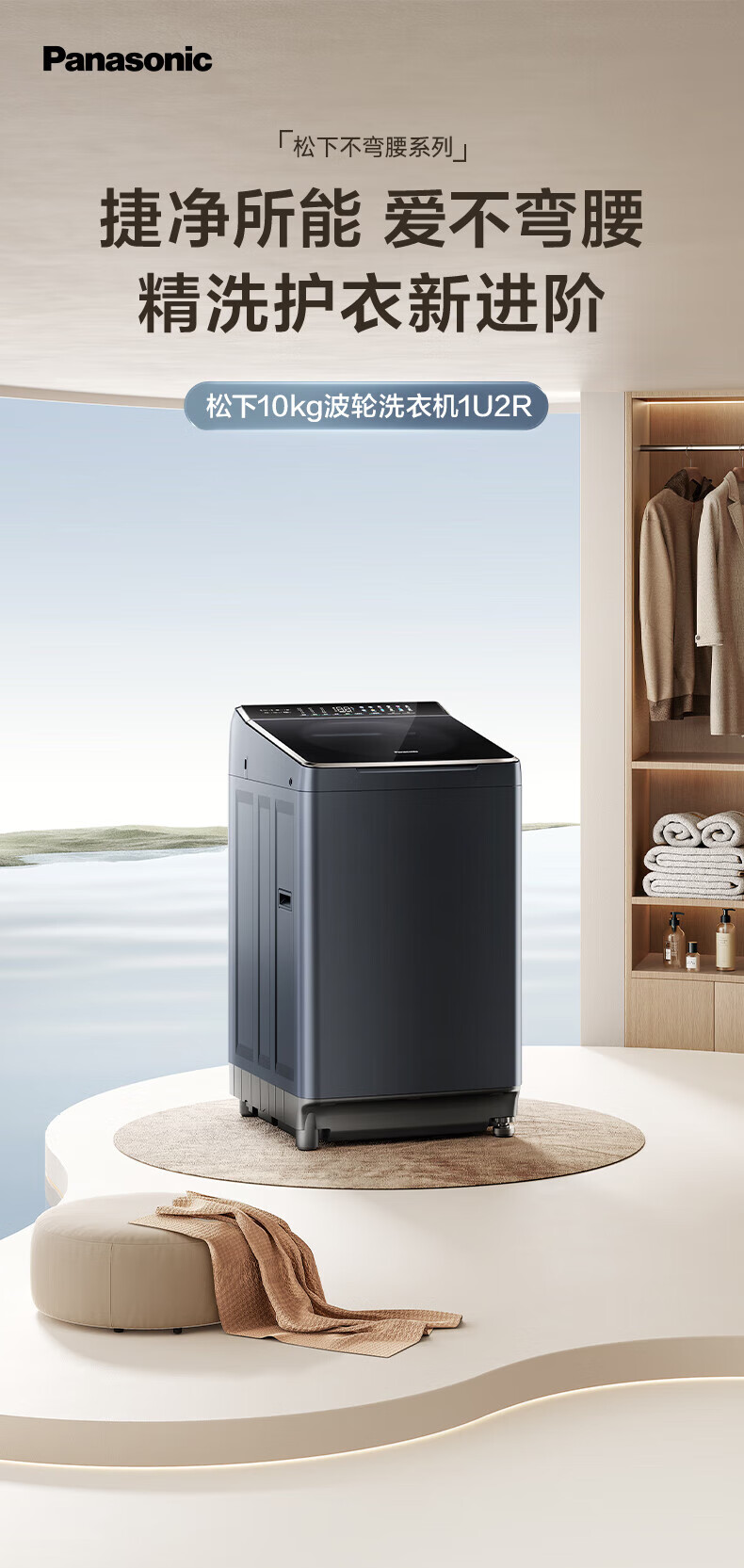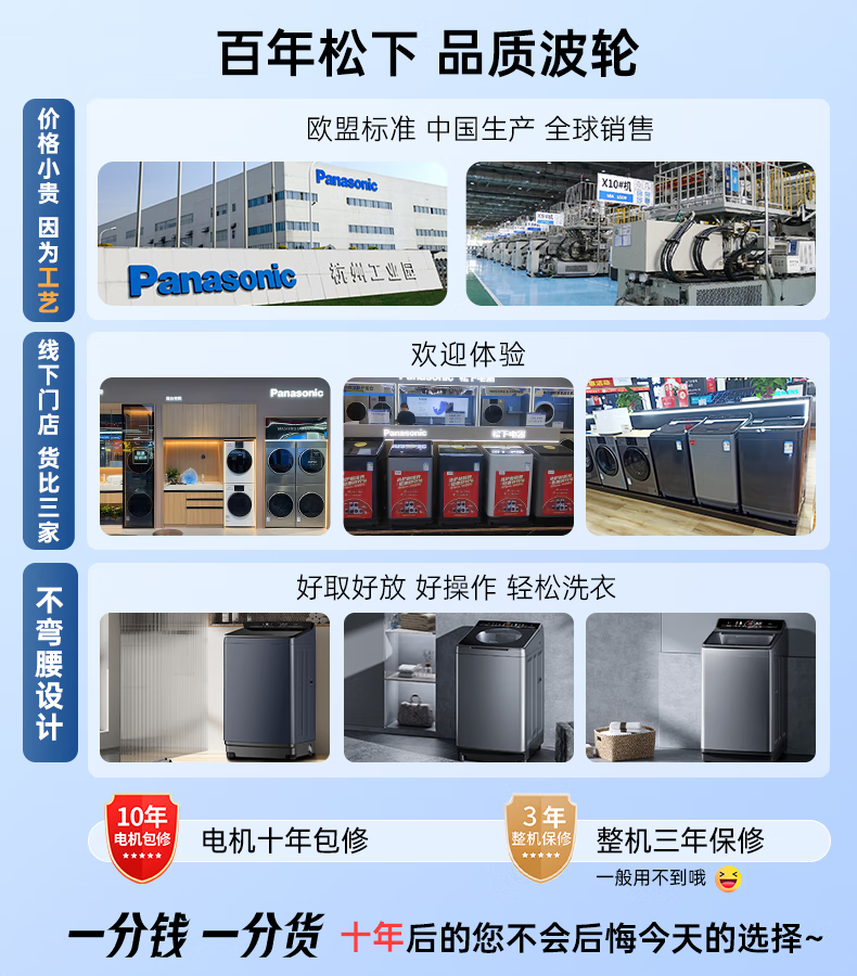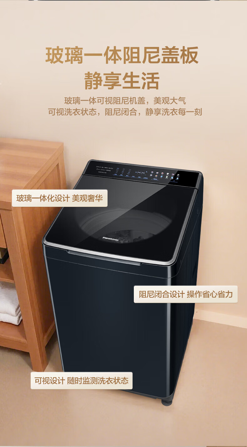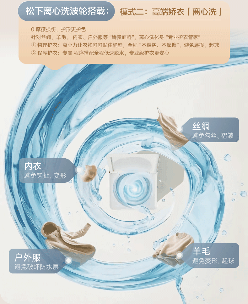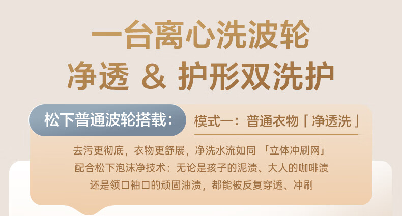 松下不弯腰 波轮洗衣机 10KG 离心洗 水氧泡沫净 羽绒内