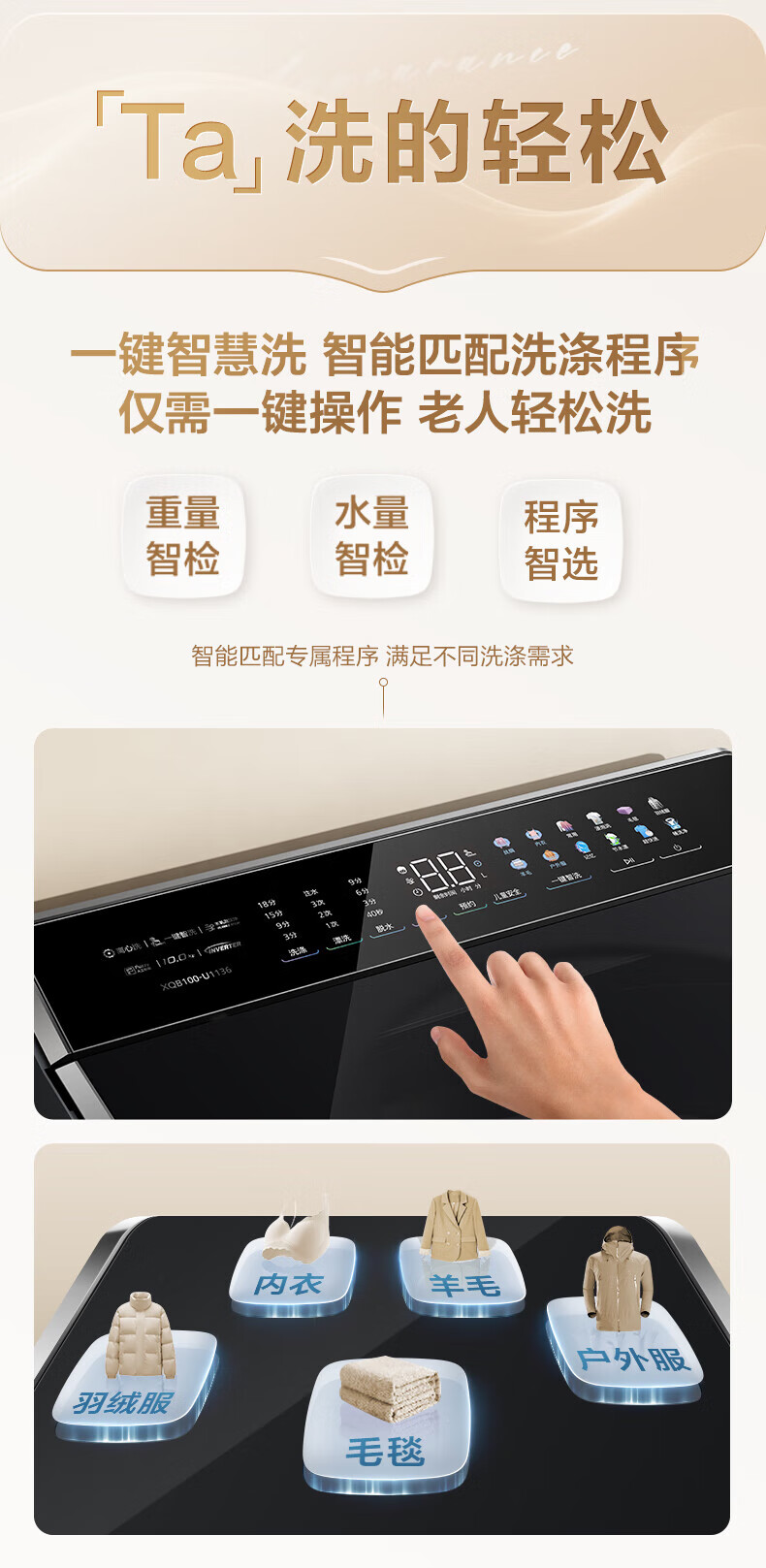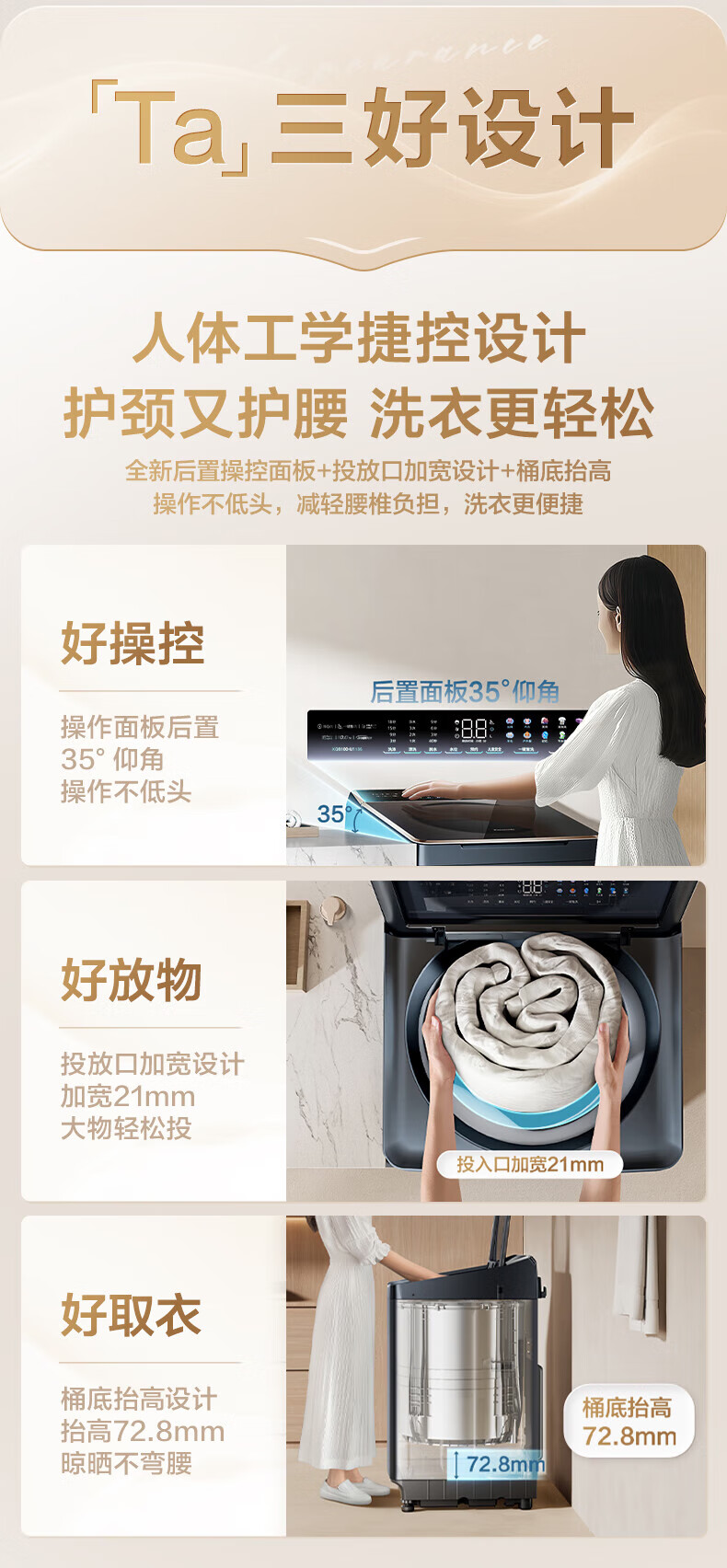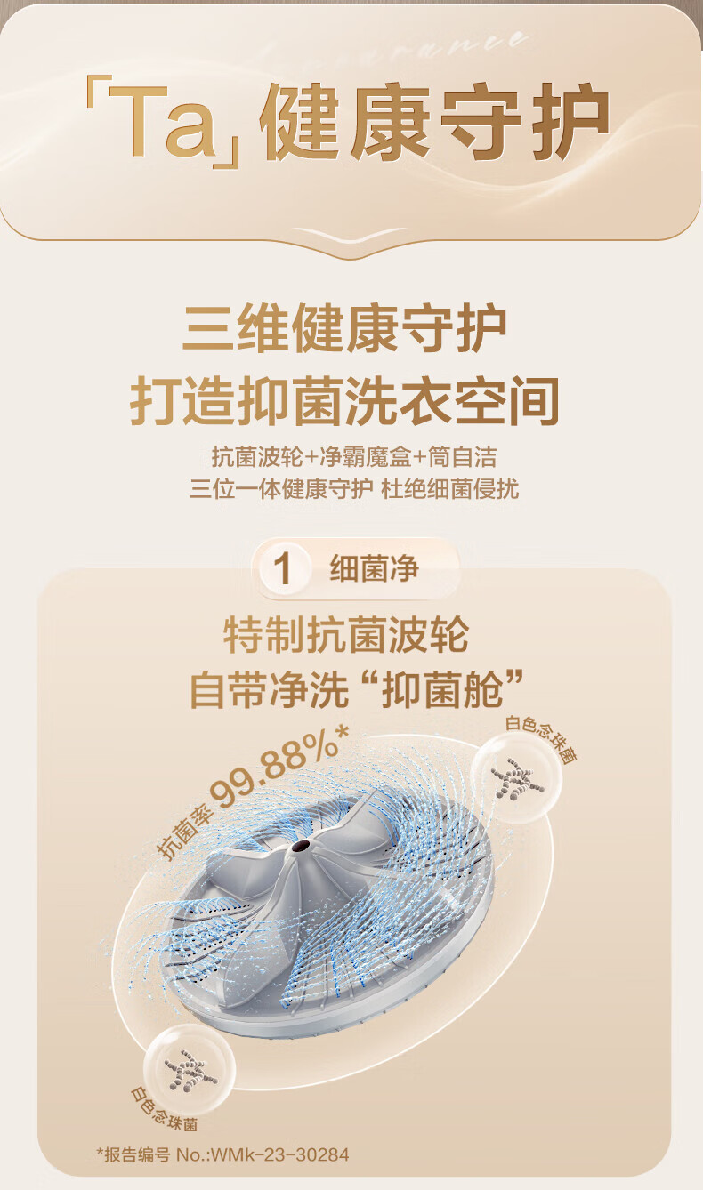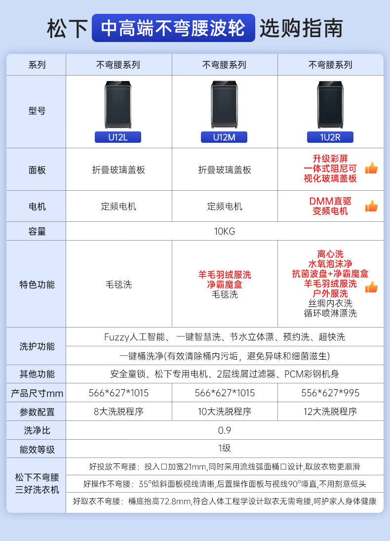 松下不弯腰 波轮洗衣机 10KG 离心洗 水氧泡沫净 羽绒内