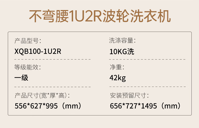 松下不弯腰 波轮洗衣机 10KG 离心洗 水氧泡沫净 羽绒内衣洗衣机 XQB100-1U2R
