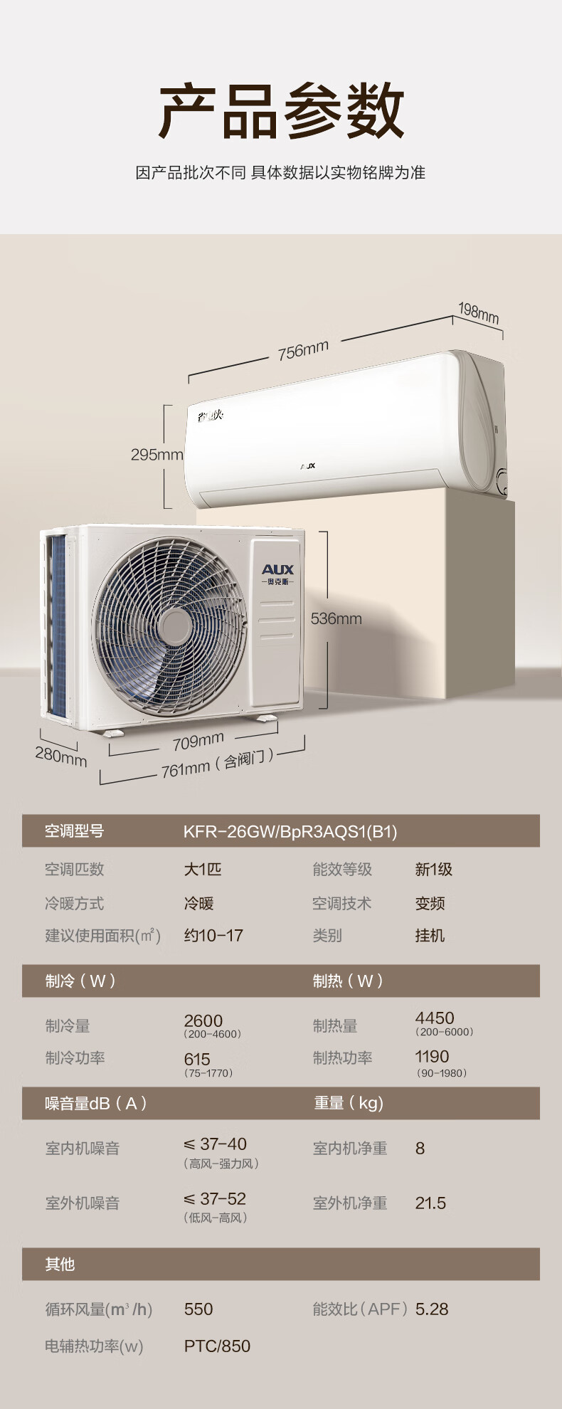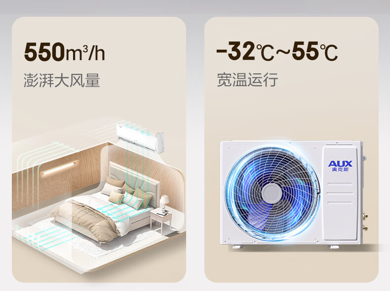 奥克斯(AUX)大1匹空调挂机 省电侠 新一级能效变频冷暖两用挂式防直吹 KFR-26GW/BpR3AQS1(B1)