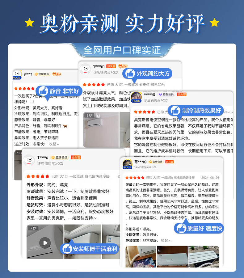 京灿 奥克斯空调 大1.5匹 新一级能效变频 铜管空调 冷暖