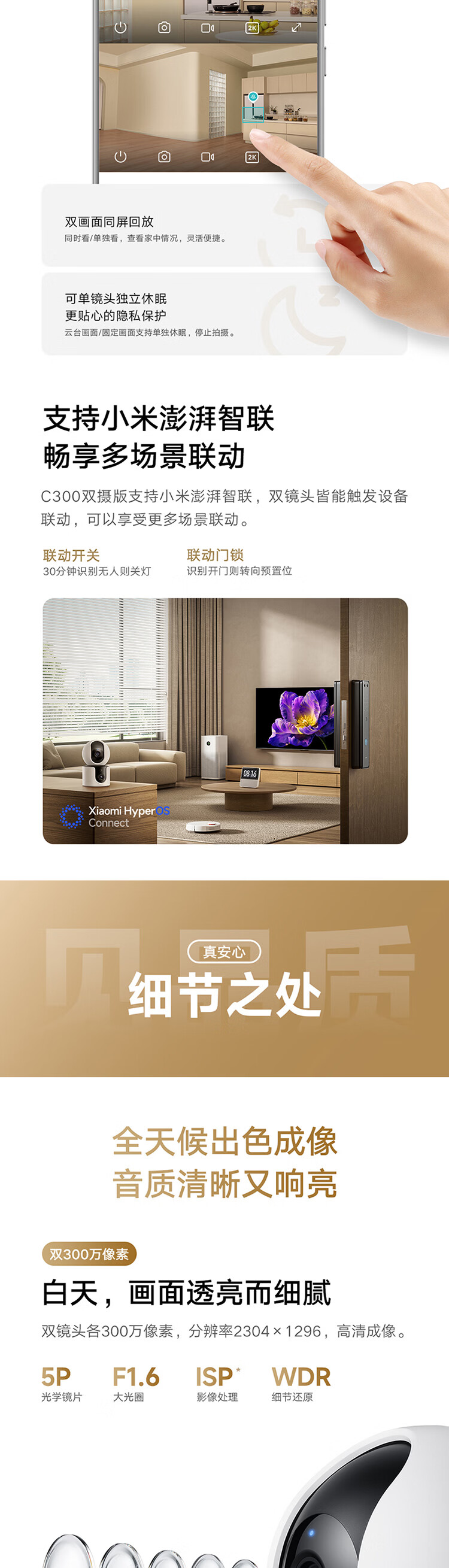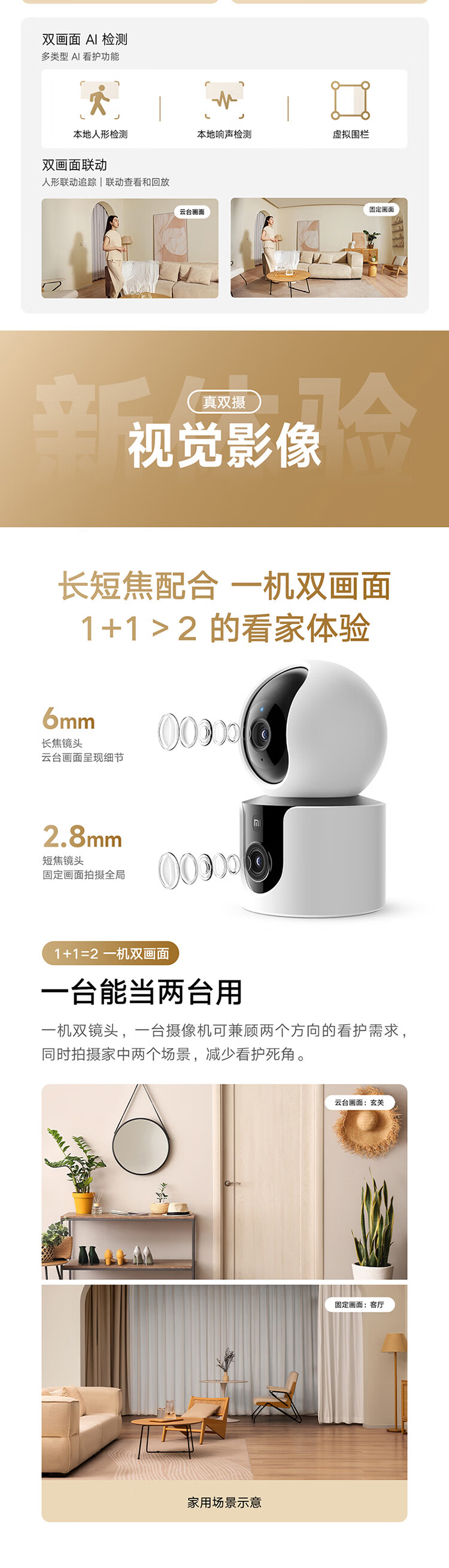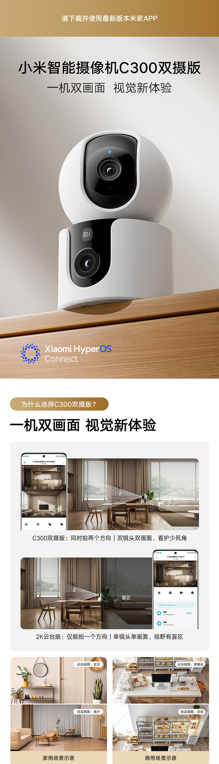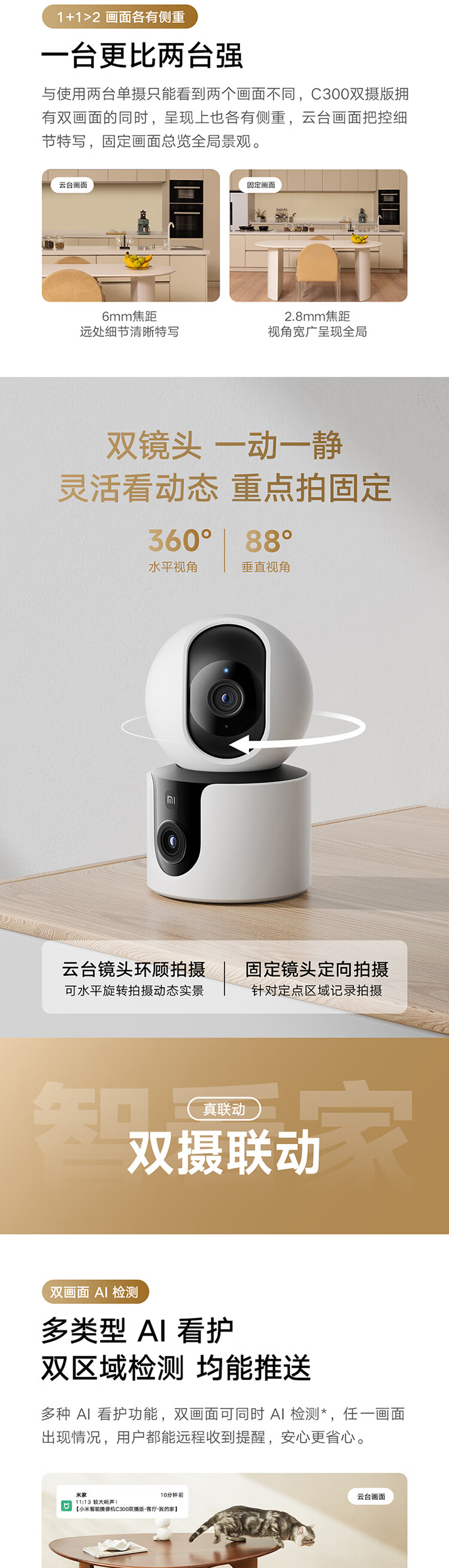小米智能摄像机C300双摄版监控器360度无死角带夜视全景摄像头家用手机远程室内监控宠物母婴老人银发