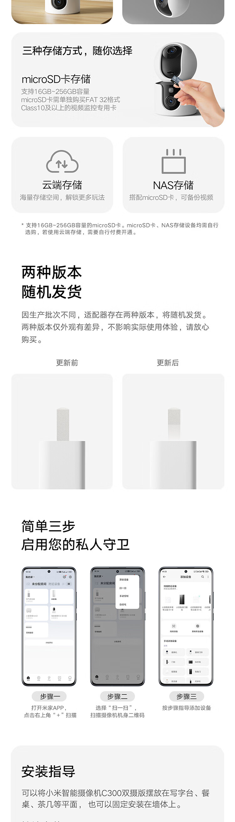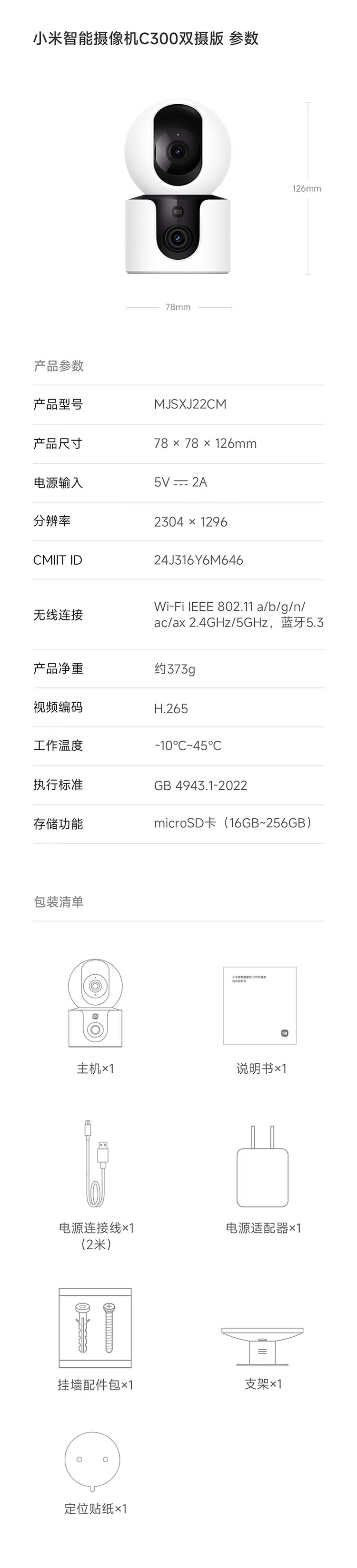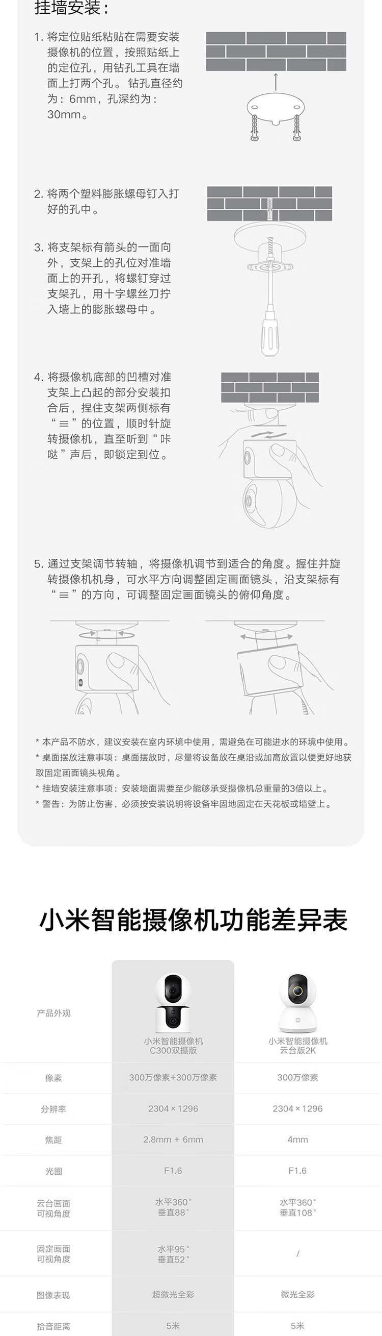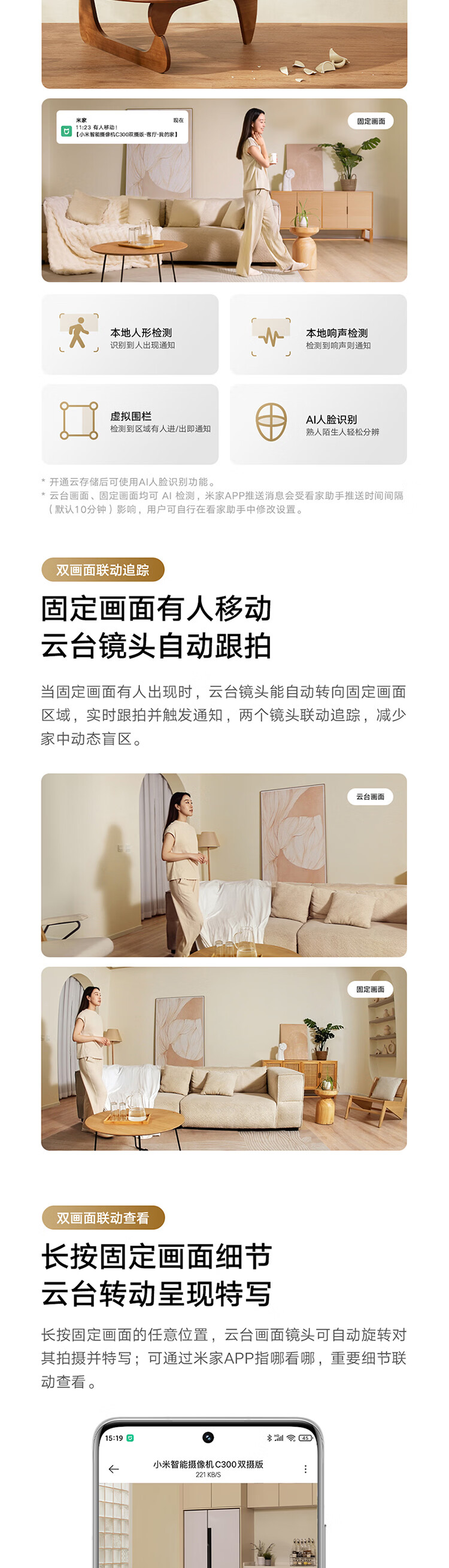 小米智能摄像机C300双摄版监控器360度无死角带夜视全景摄像头家用手机远程室内监控宠物母婴老人银发