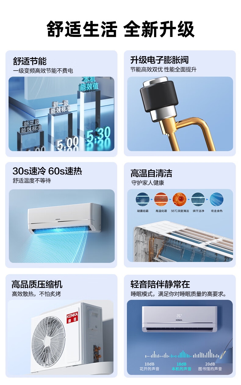 康佳空调超省电大1匹新一级能效变频冷暖 AI智慧语音 纯