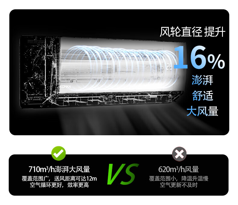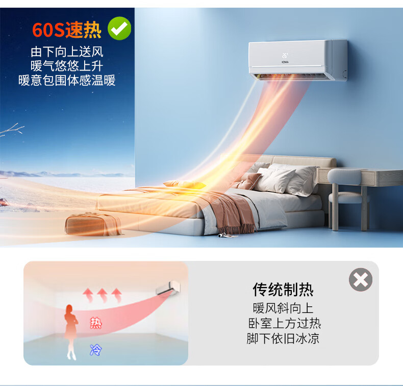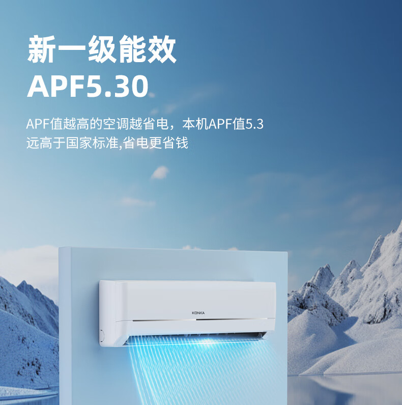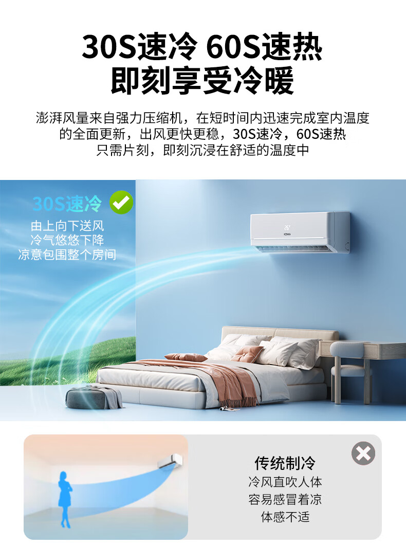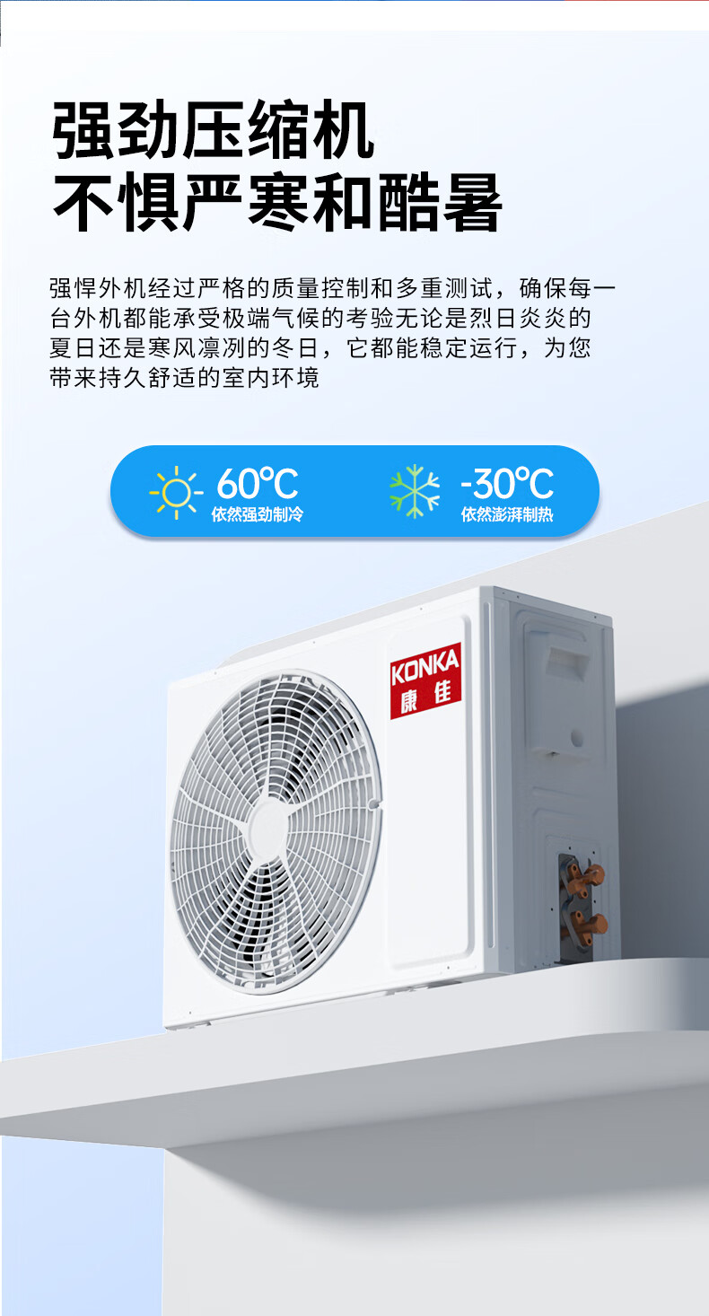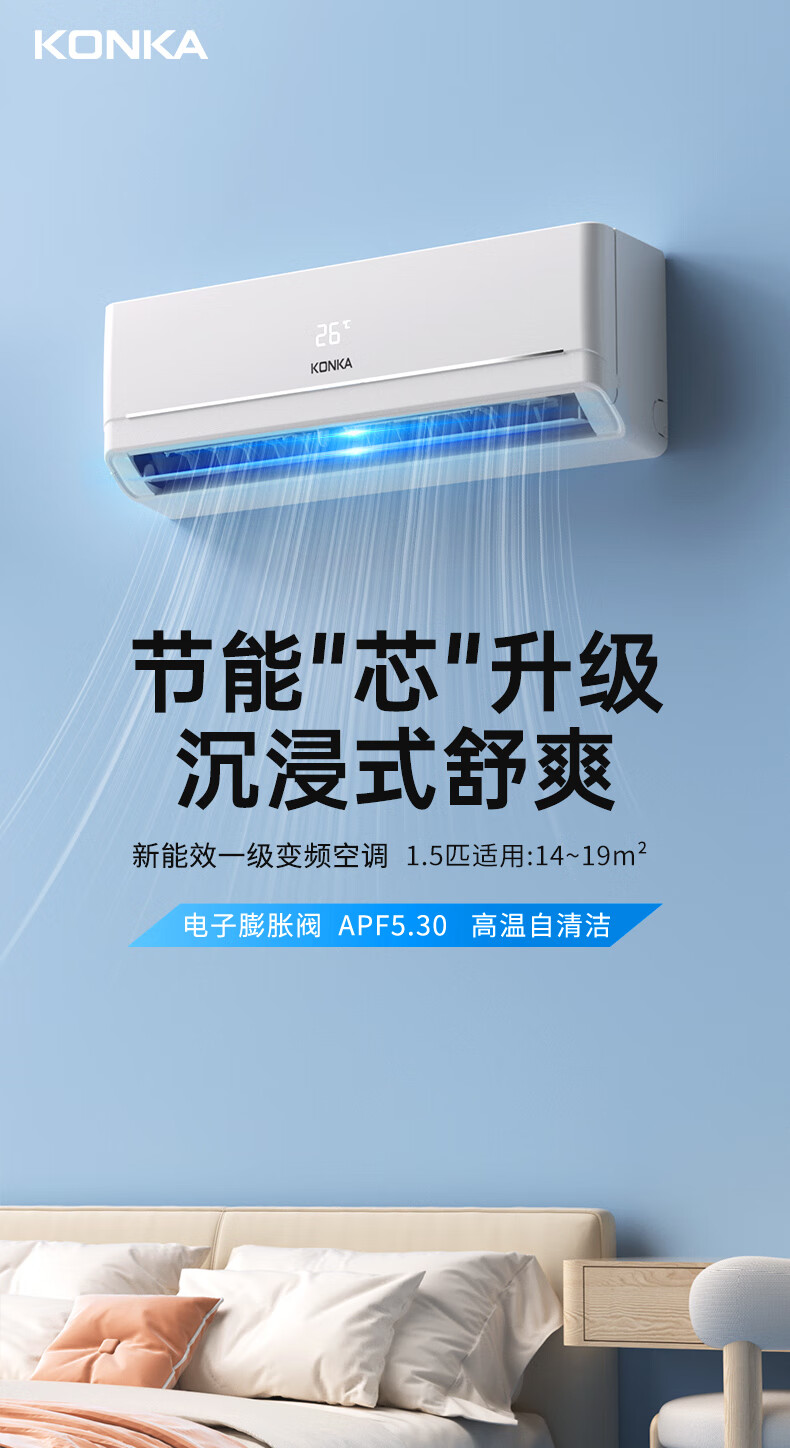 康佳空调超省电 1.5匹新一级能效变频冷暖 710m³/h循环风量 纯铜管卧室挂机 KFR-32GW/N5B10