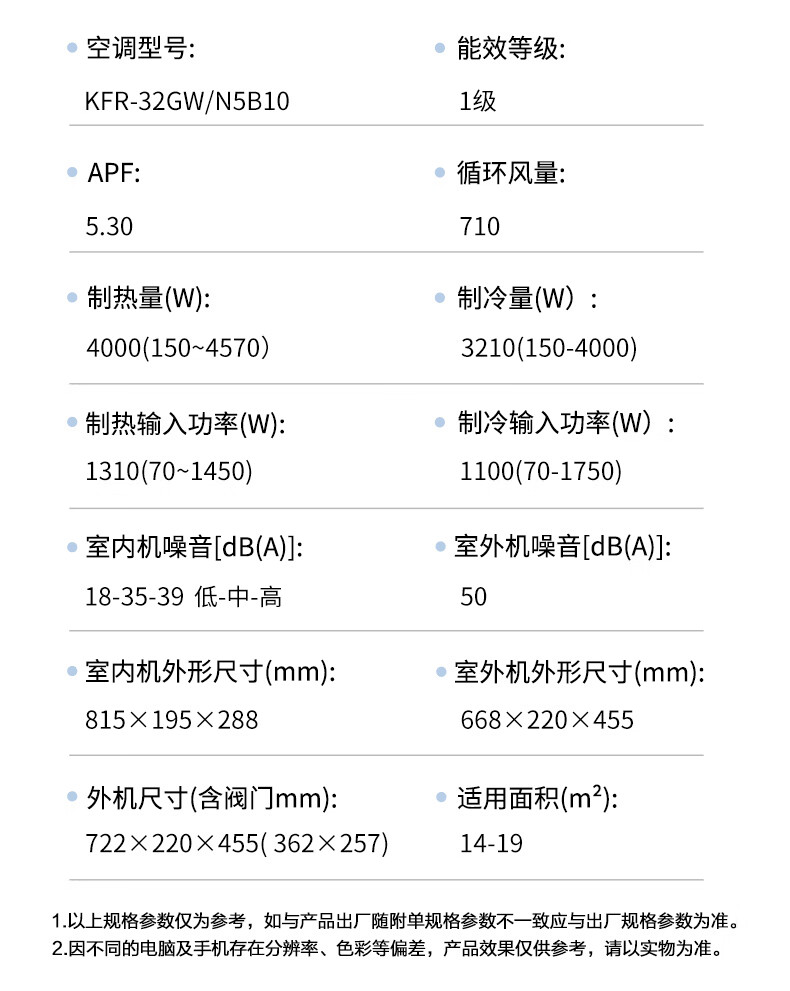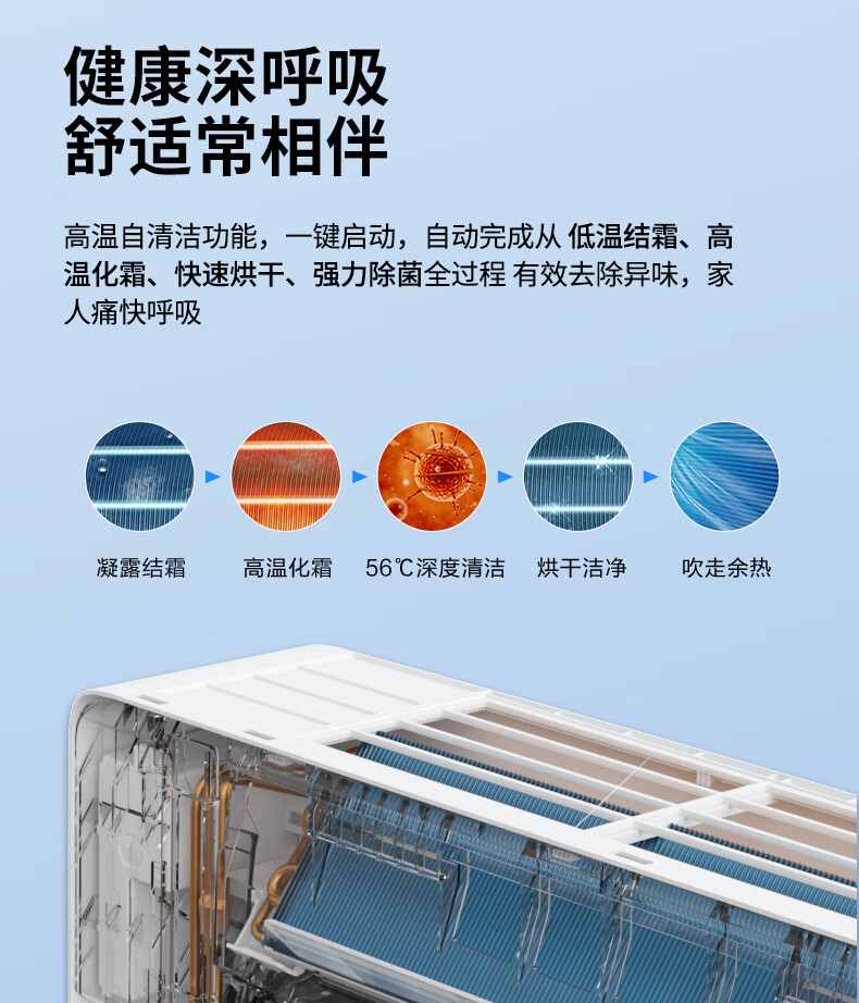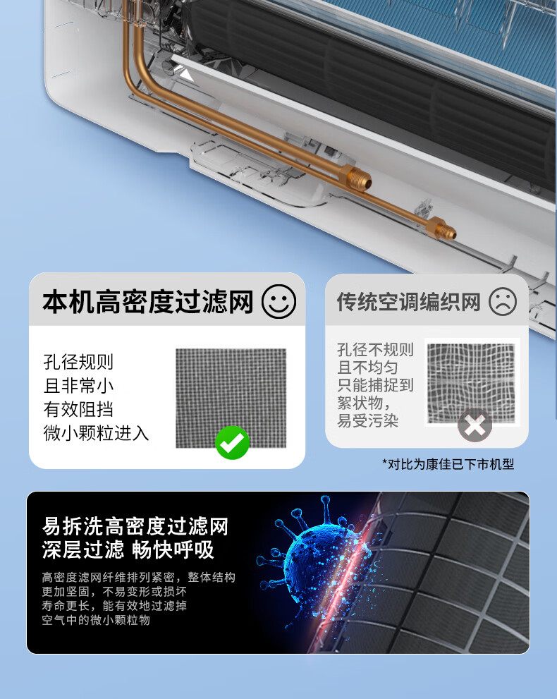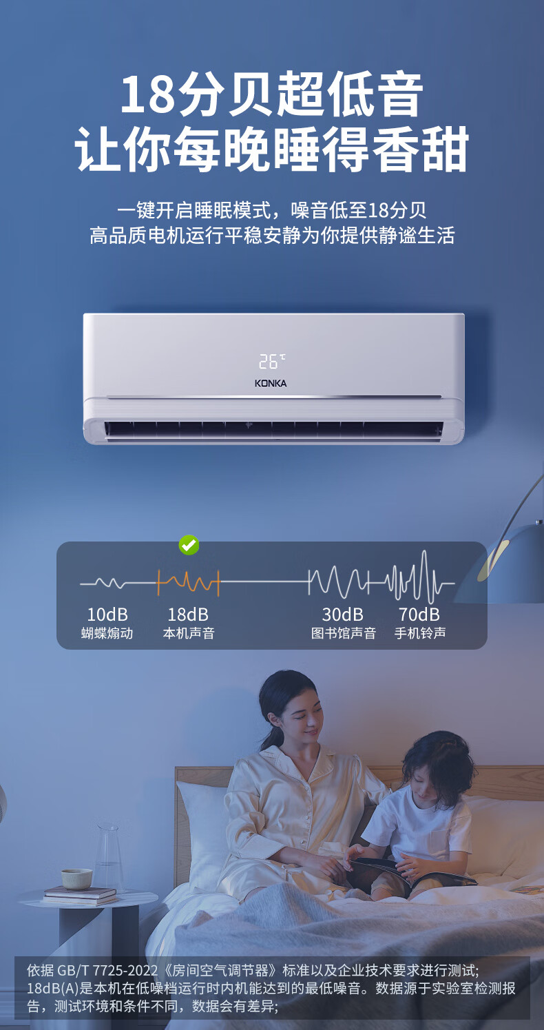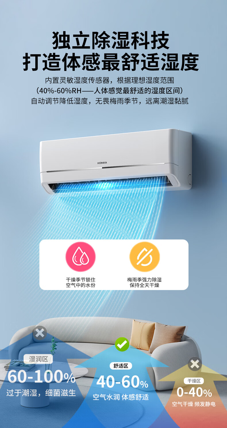 康佳空调超省电 1.5匹新一级能效变频冷暖 710m³/h循环风量 纯铜管卧室挂机 KFR-32GW/N5B10