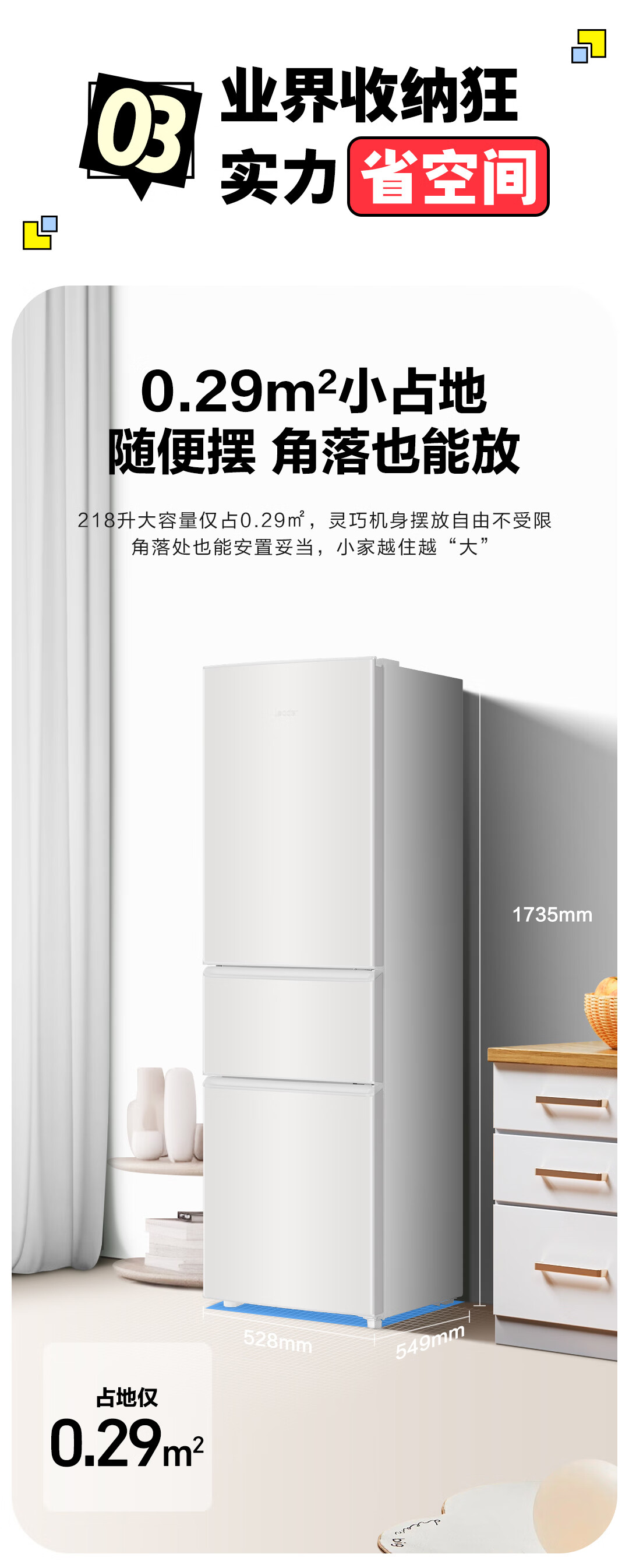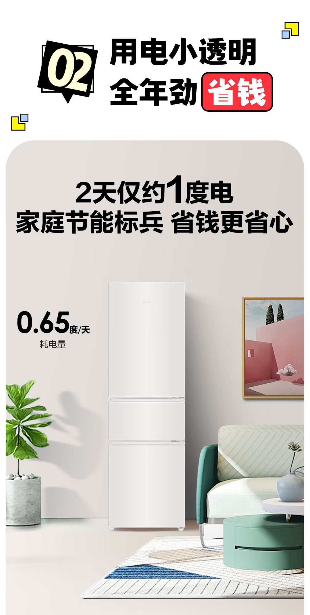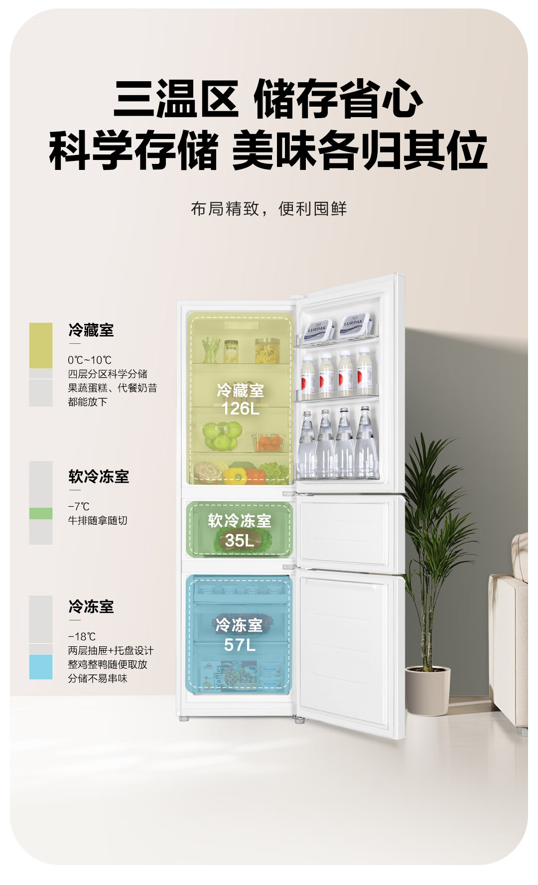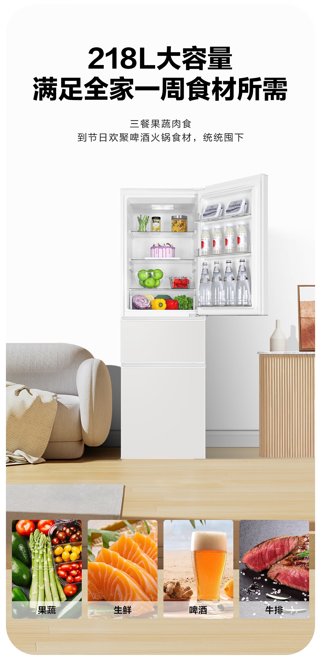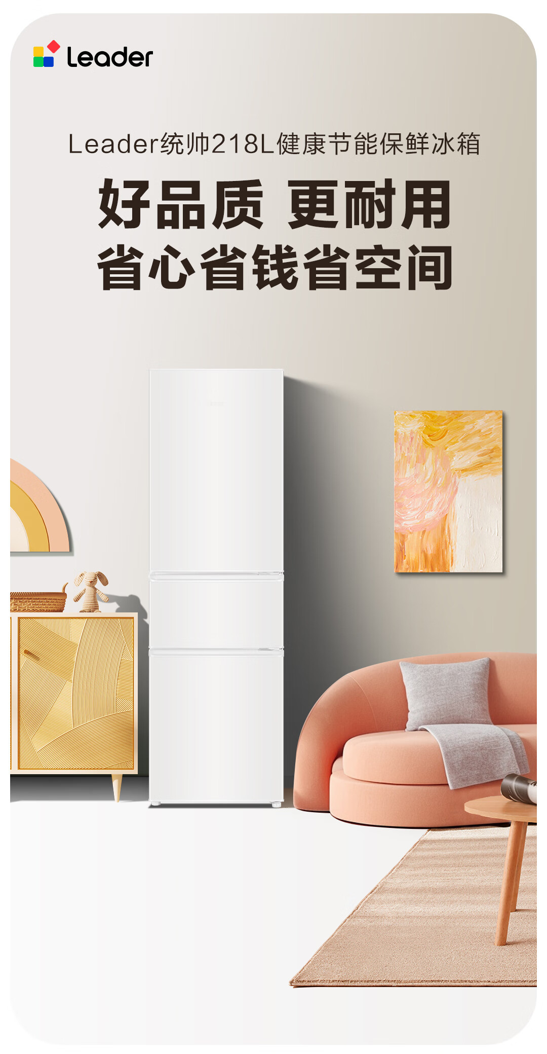 统帅(Leader)海尔冰箱出品悦享系列218L三门家用小冰箱二级能效直冷软冷冻冰箱LC3-226L9