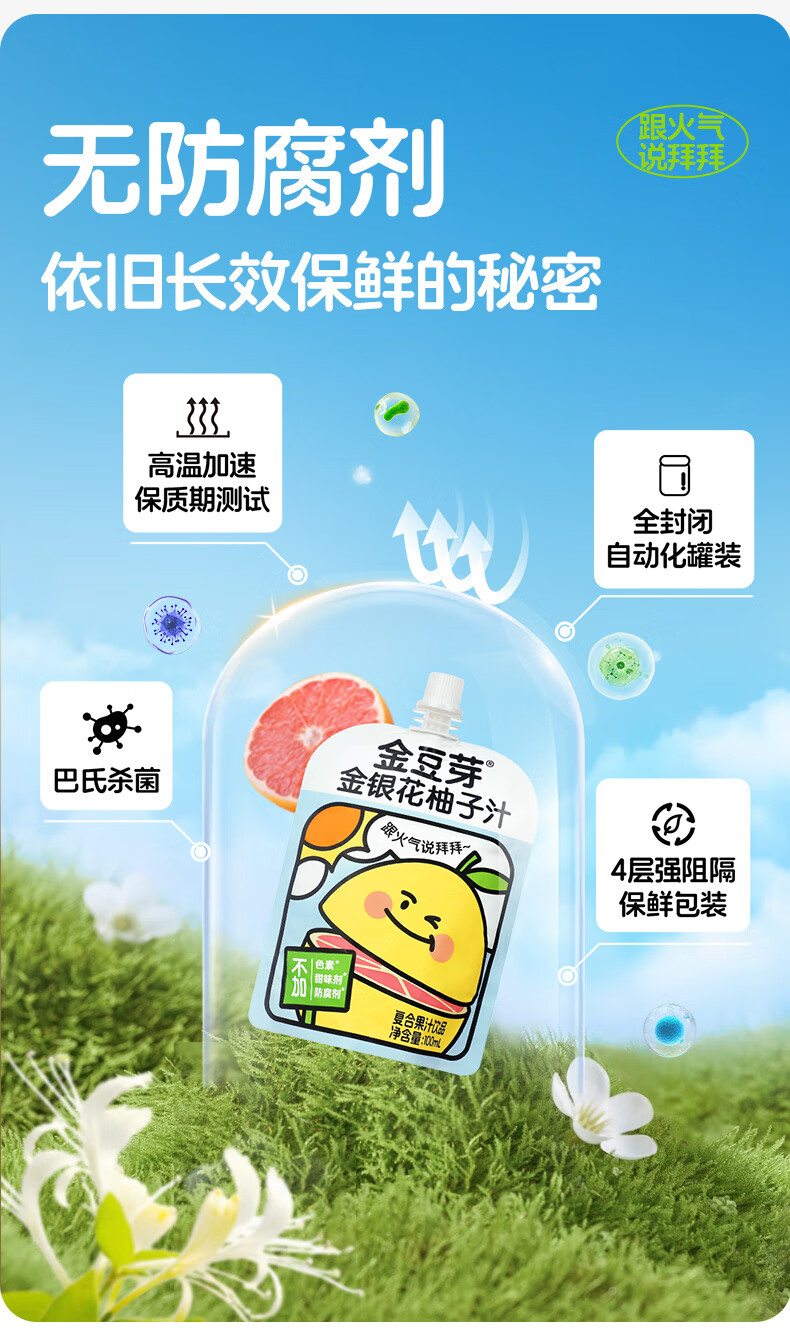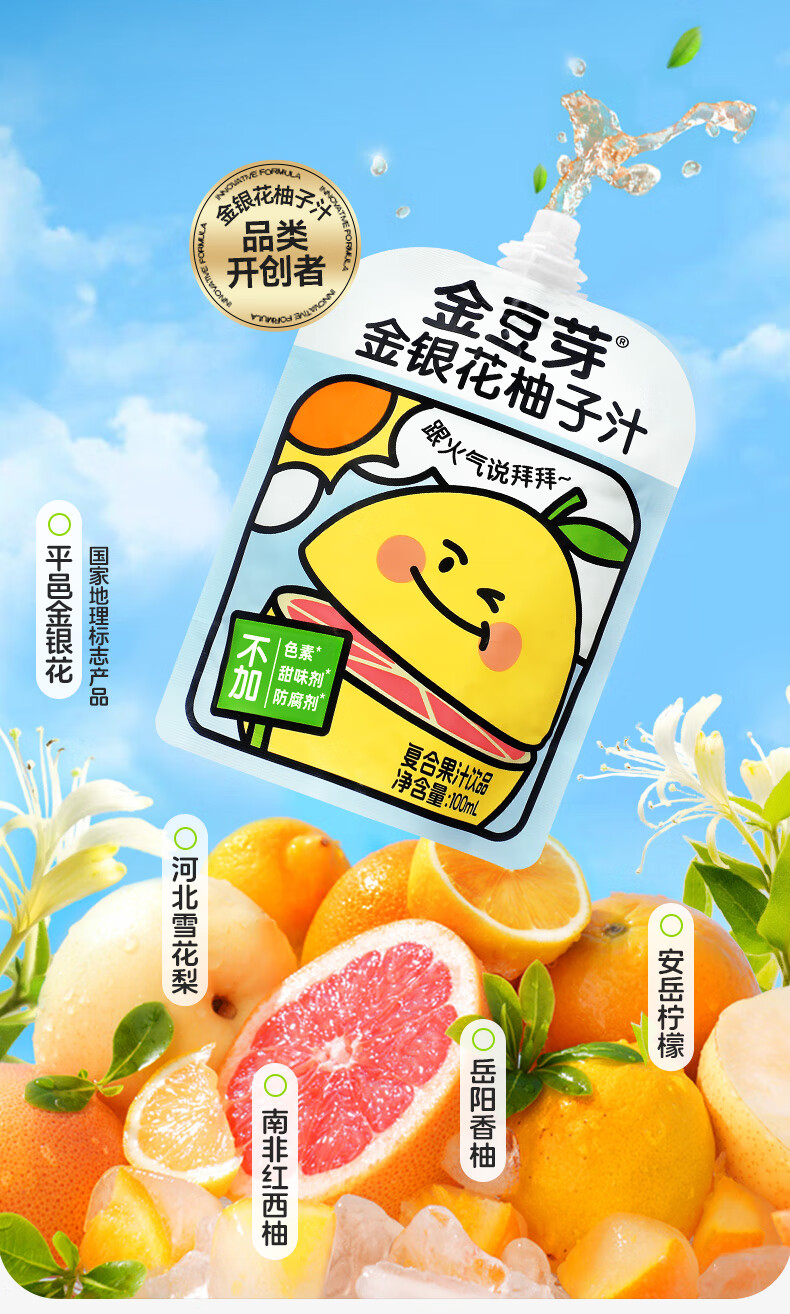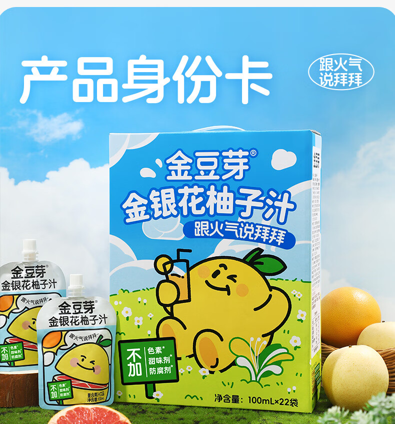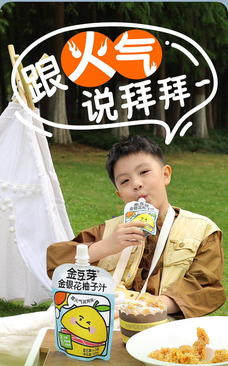 金豆芽金银花柚子汁儿童零食饮料饮品小孩果汁年货礼盒100ml*22袋