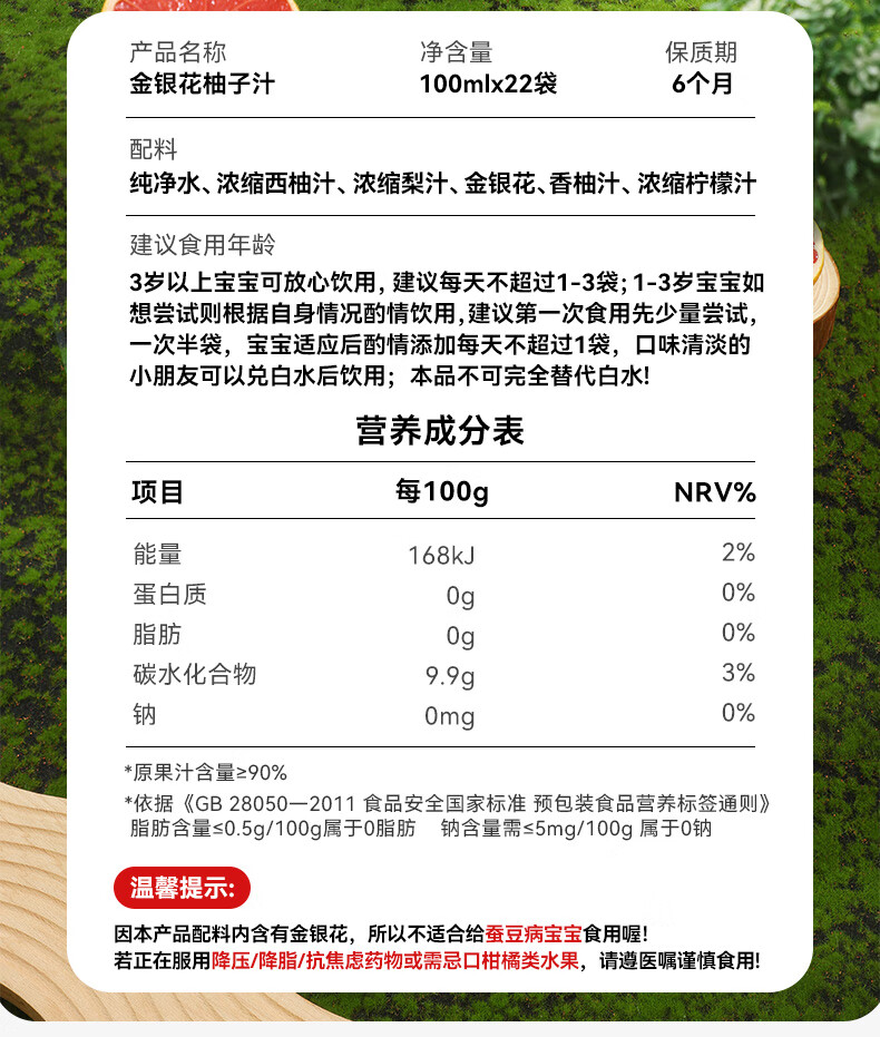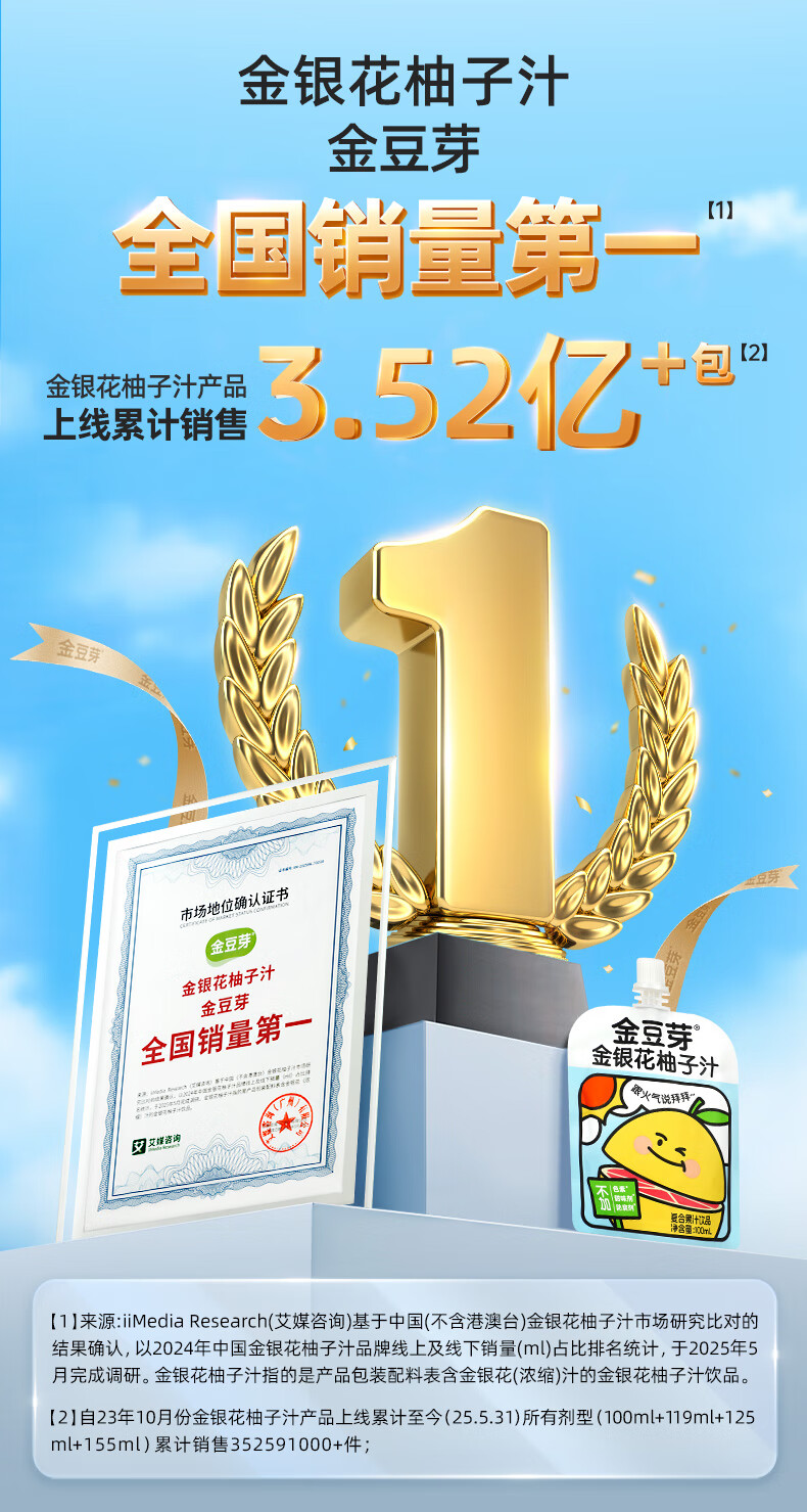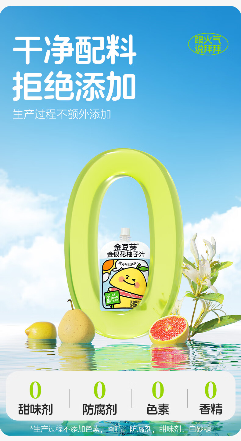 金豆芽金银花柚子汁儿童零食饮料饮品小孩果汁年货礼盒100ml*22袋