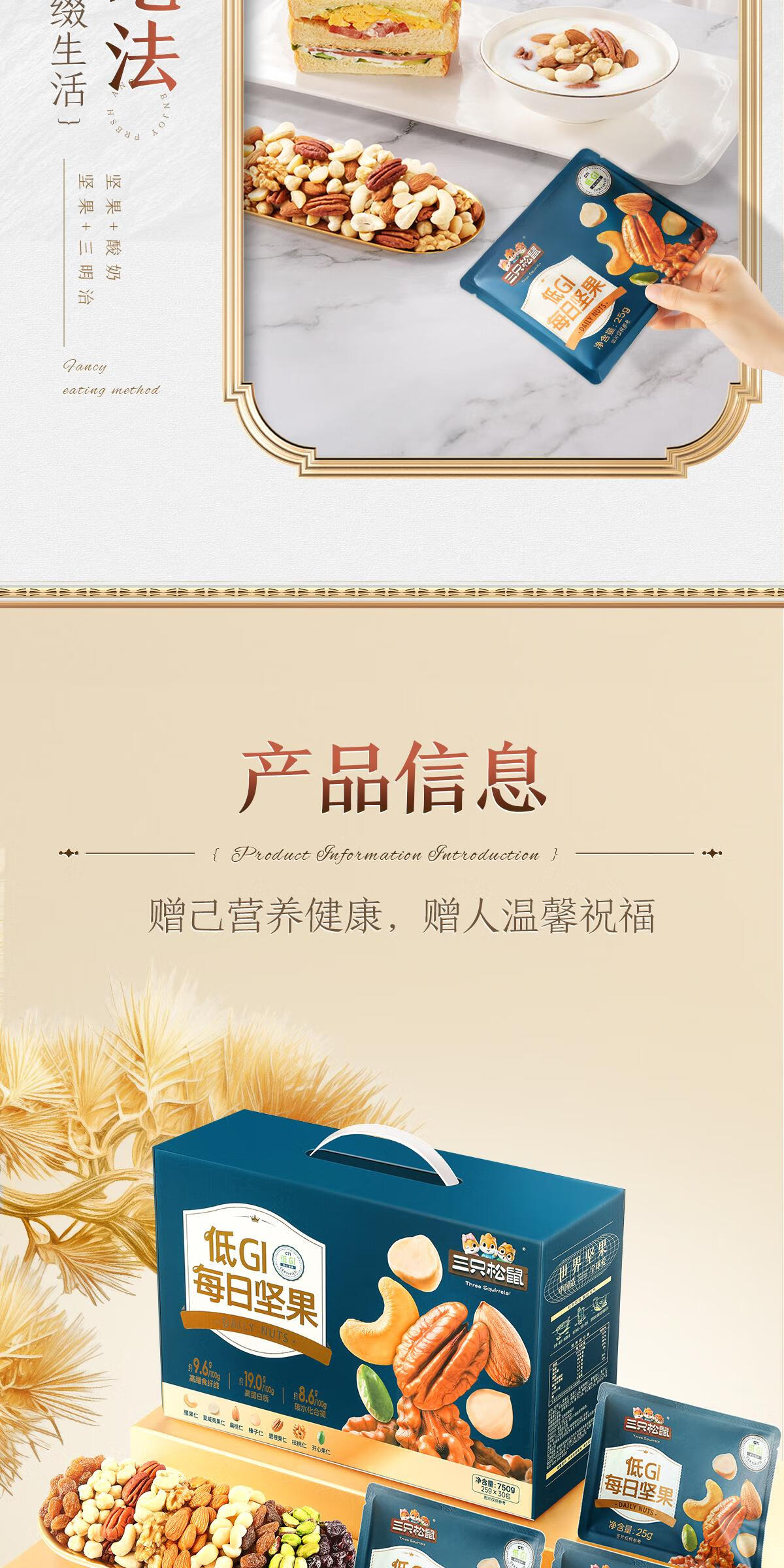 三只松鼠每日坚果纯坚果750g 坚果零食礼盒开心果新春年货送礼企业团购