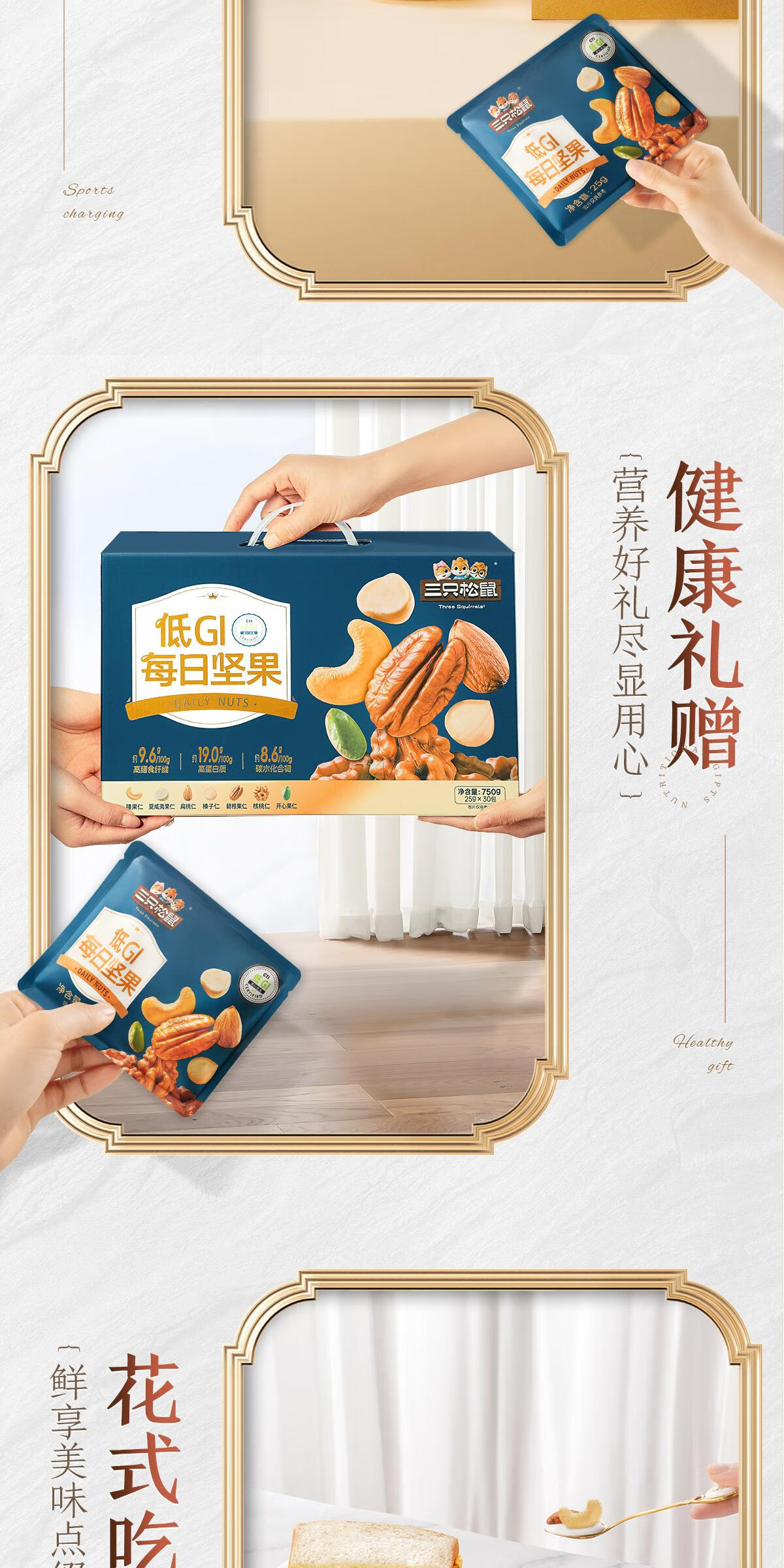 百草味活力款750g30袋 每日坚果礼盒休闲零食礼包腰果送