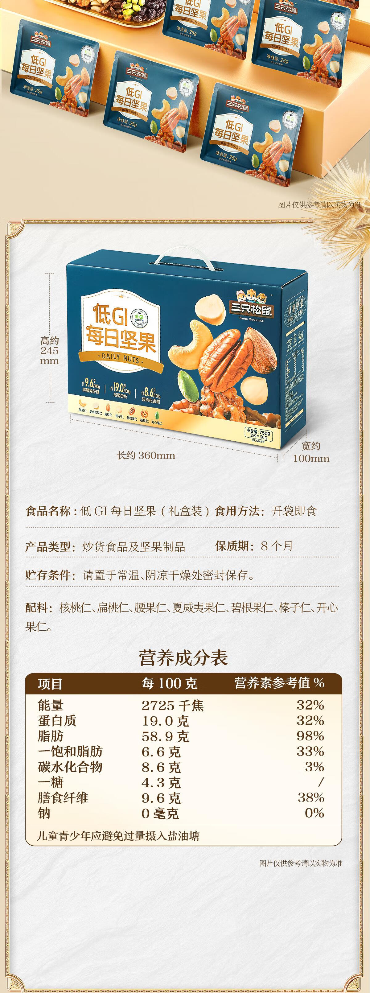 三只松鼠每日坚果纯坚果750g 坚果零食礼盒开心果新春年