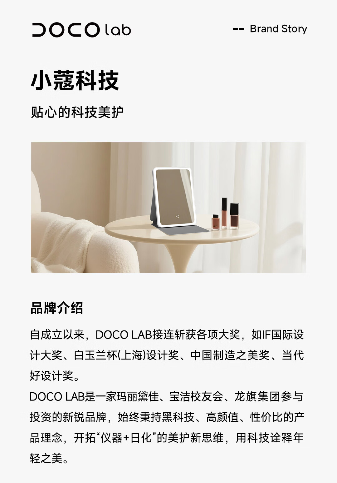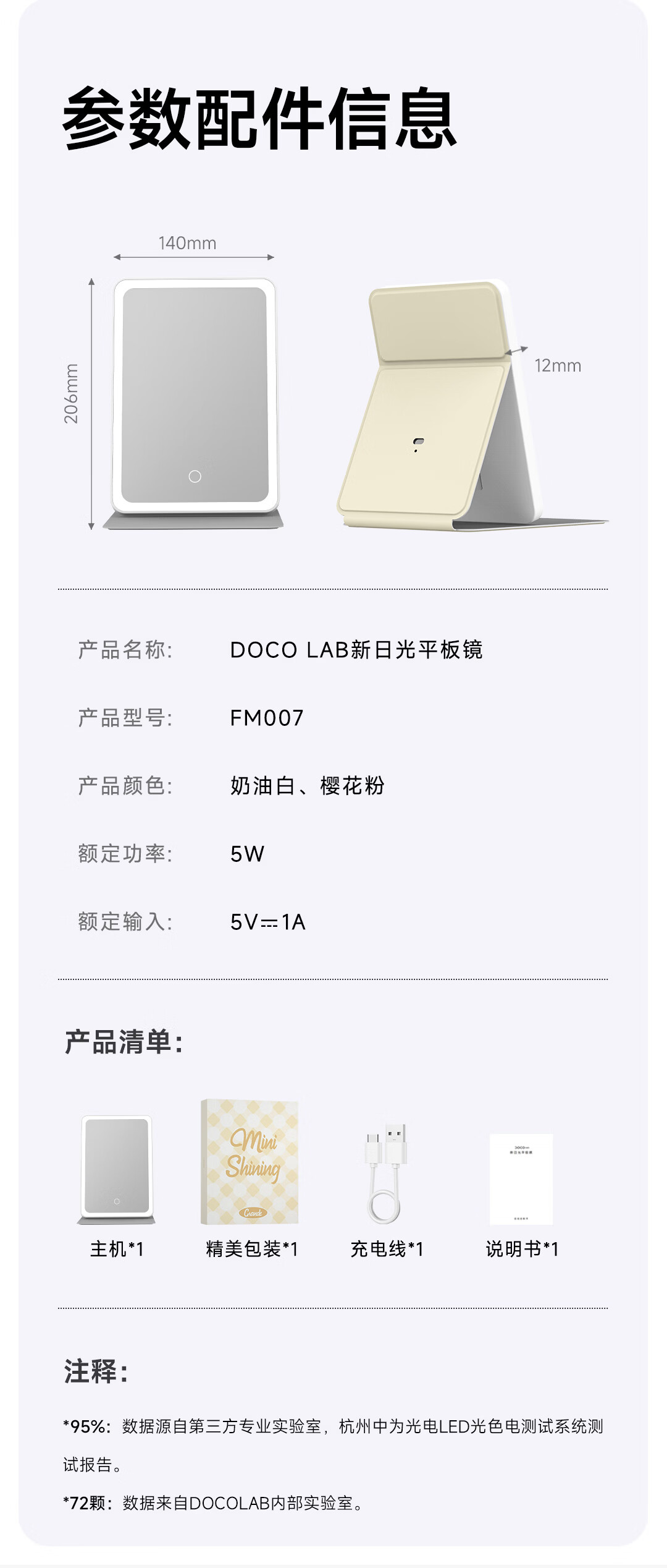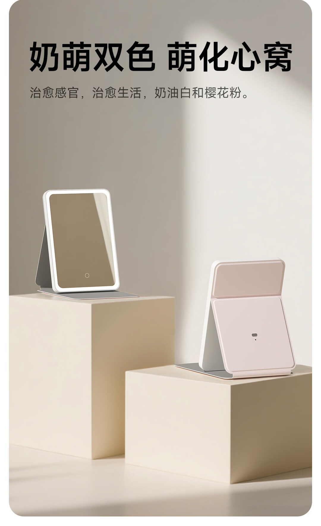 DOCO LAB镜子化妆镜带灯led随身便携可折叠化妆镜卧室宿舍梳妆台桌面高清智能补妆美妆镜生日新年礼物女生