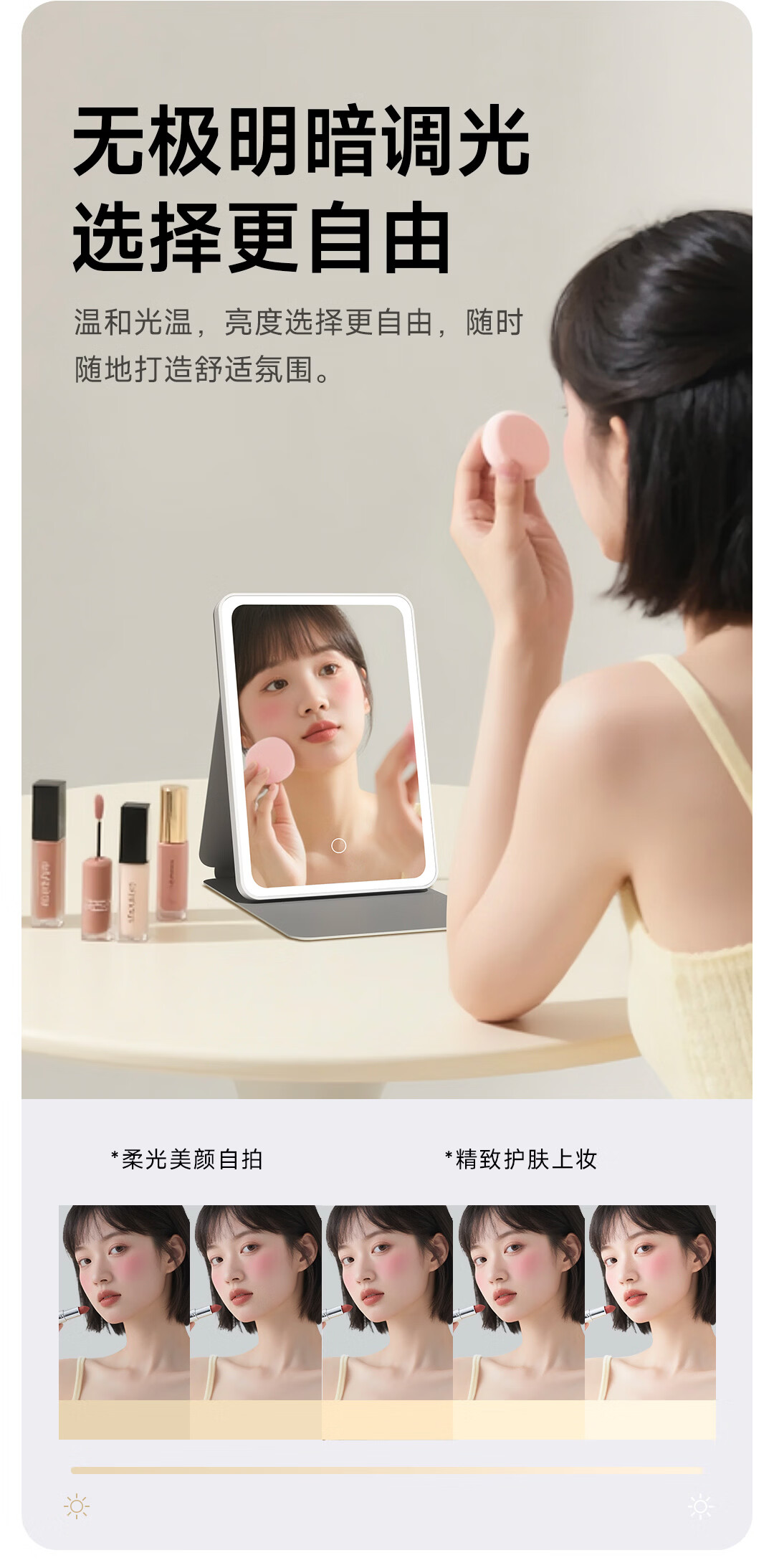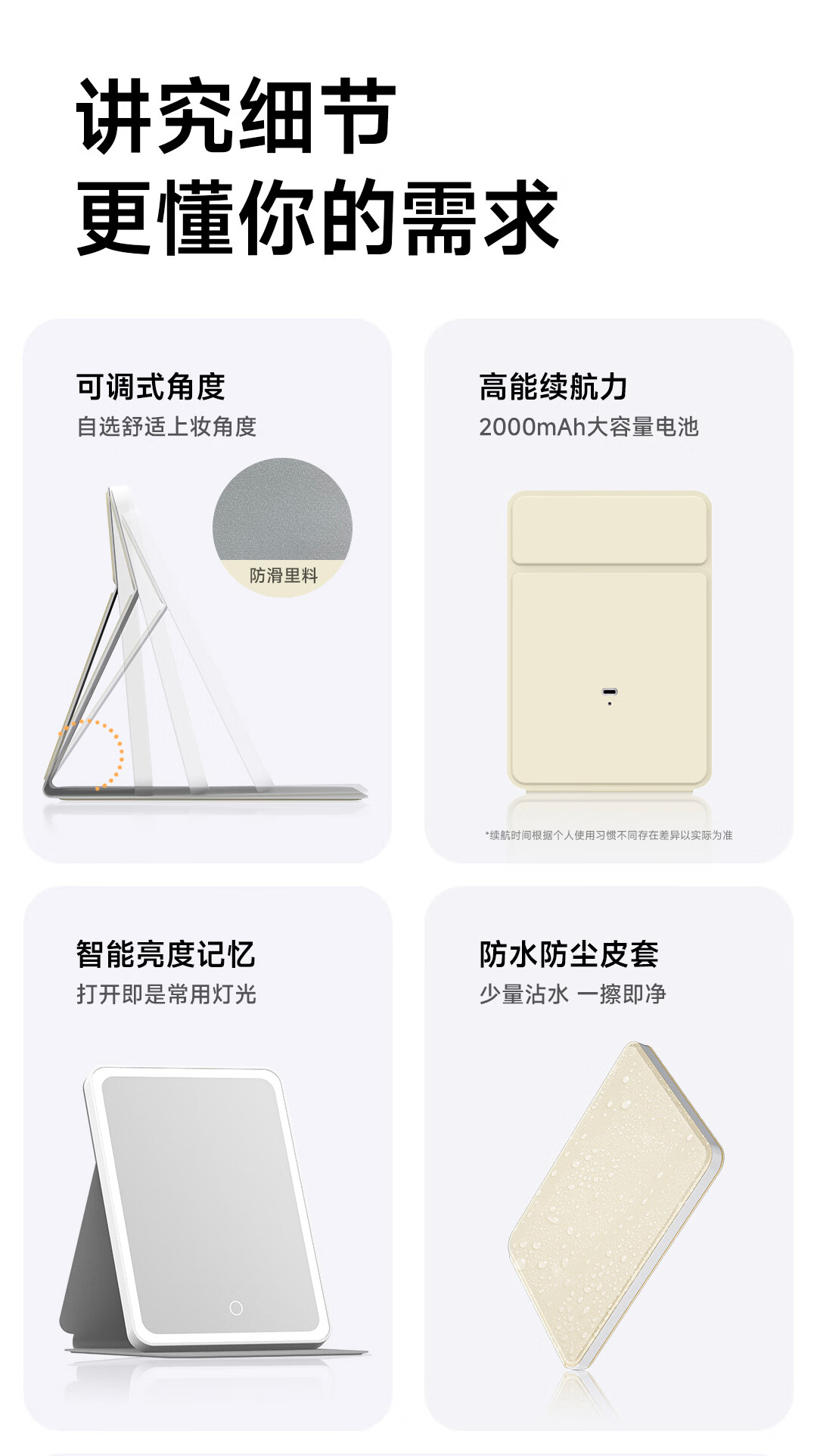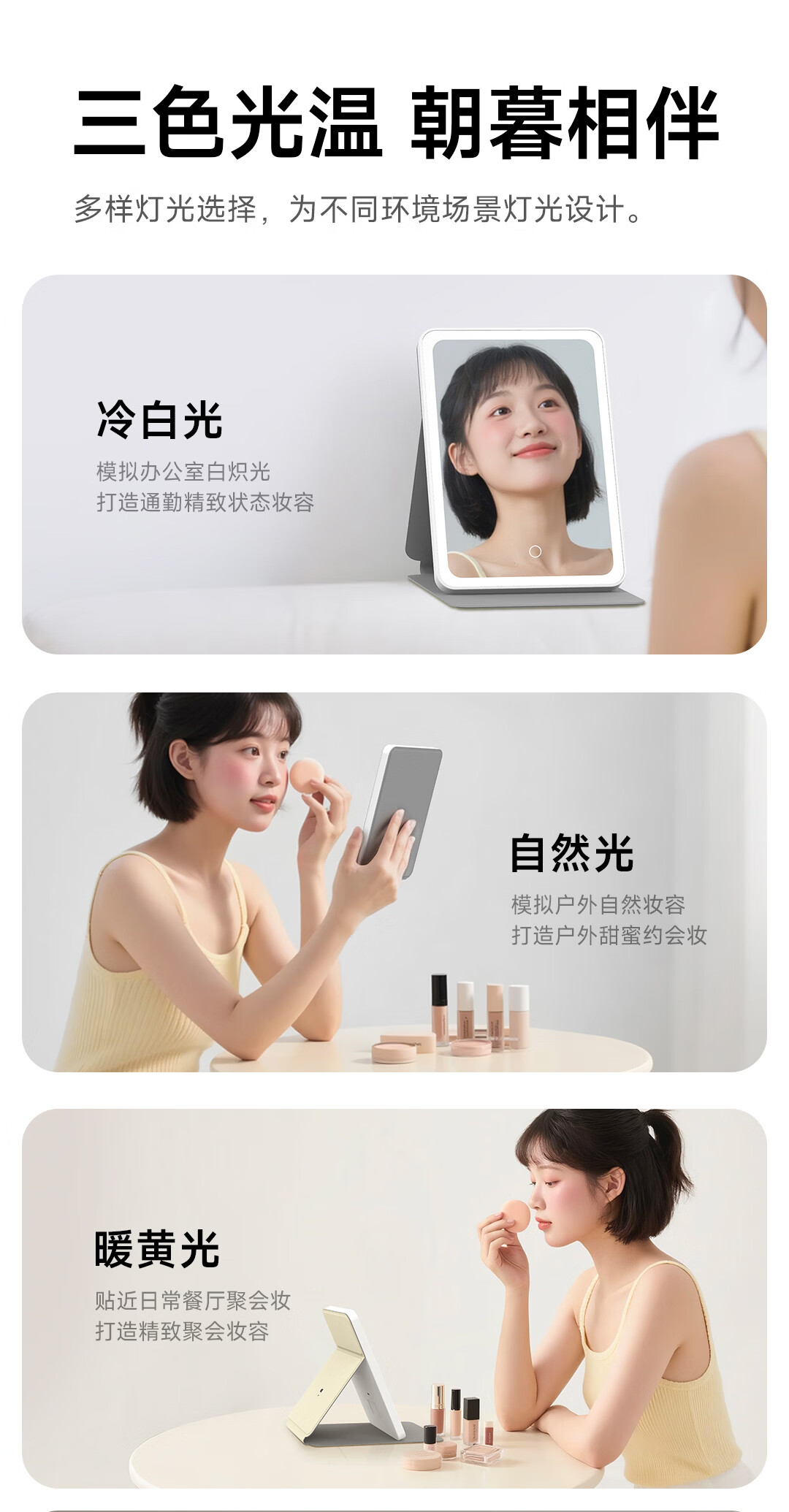DOCO LAB镜子化妆镜带灯led随身便携可折叠化妆镜卧室宿舍梳妆台桌面高清智能补妆美妆镜生日新年礼物女生