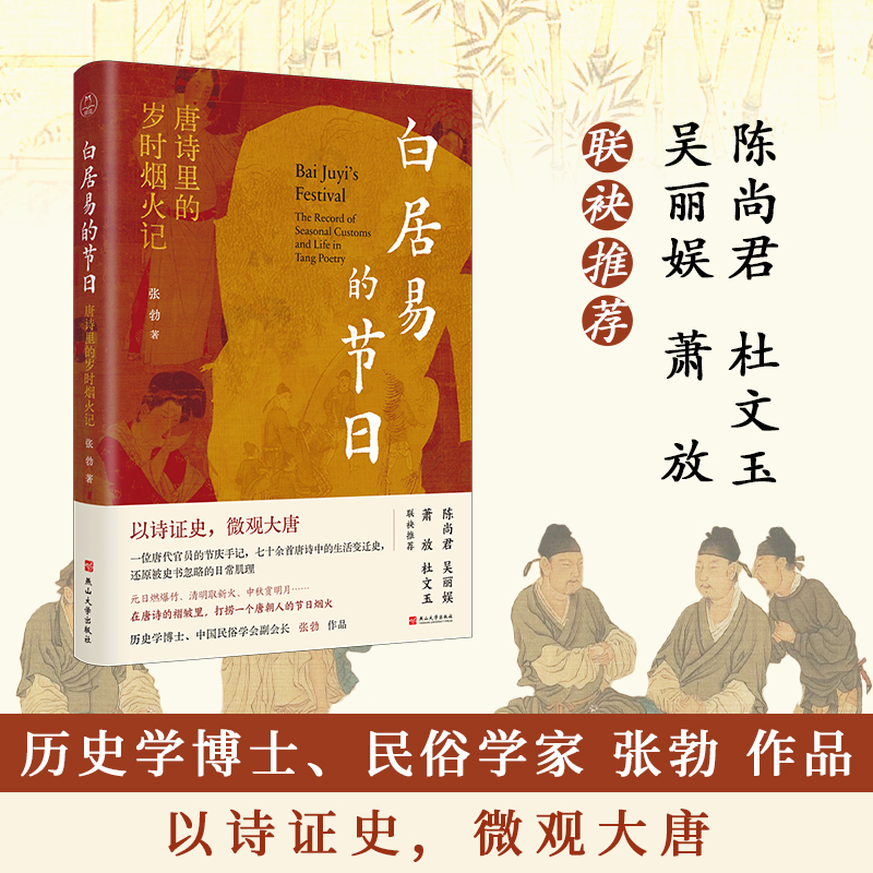 本书以白居易的节日诗文为经纬,编织出一幅唐代节俗文化的全景画卷。全书分上下两篇,上篇循白居易的人生轨迹——从宿州避乱的孤灯除夕、长安求仕的元日朝贺,到贬谪江州的湓浦望月、晚归洛阳的千里邈思——在不同的地理节点中,白诗如时光琥珀,封存了元日柏酒、寒食禁火、端午竞渡、中秋玩月等盛世节俗的鲜活细节。下篇则深掘个体与时代的互动——节俗的千年传承、中唐的诗酒风尚、宦海浮沉的身份印记、生命意识的悲欣交集,共同熔铸成其诗中“万人行乐一人愁”的独特节庆美学。
