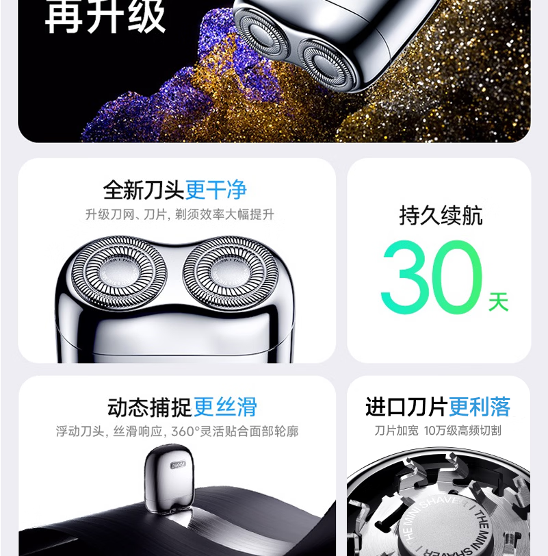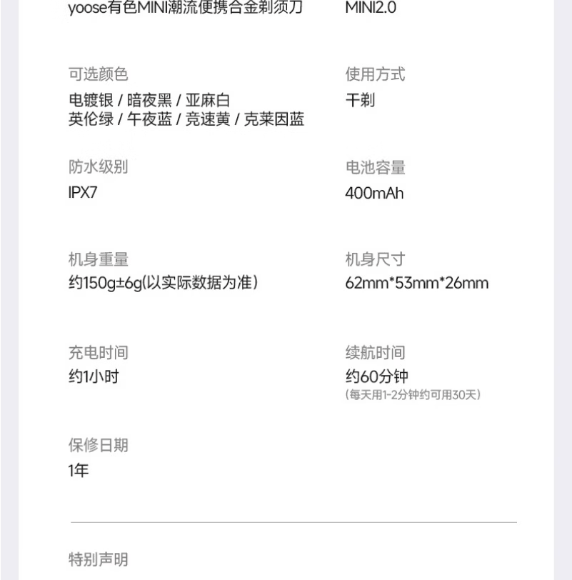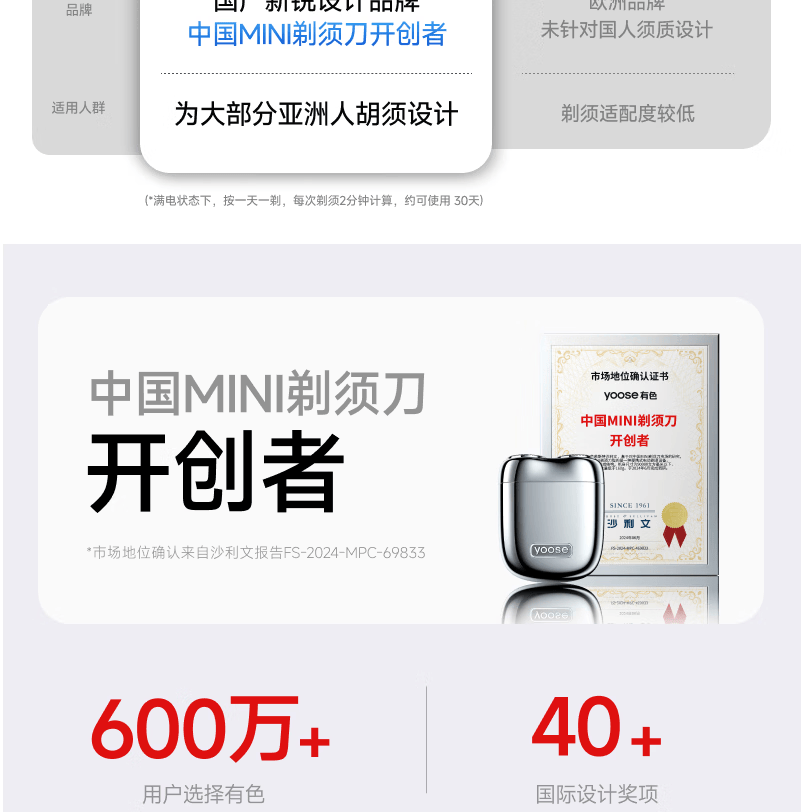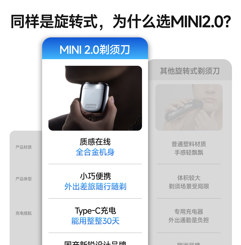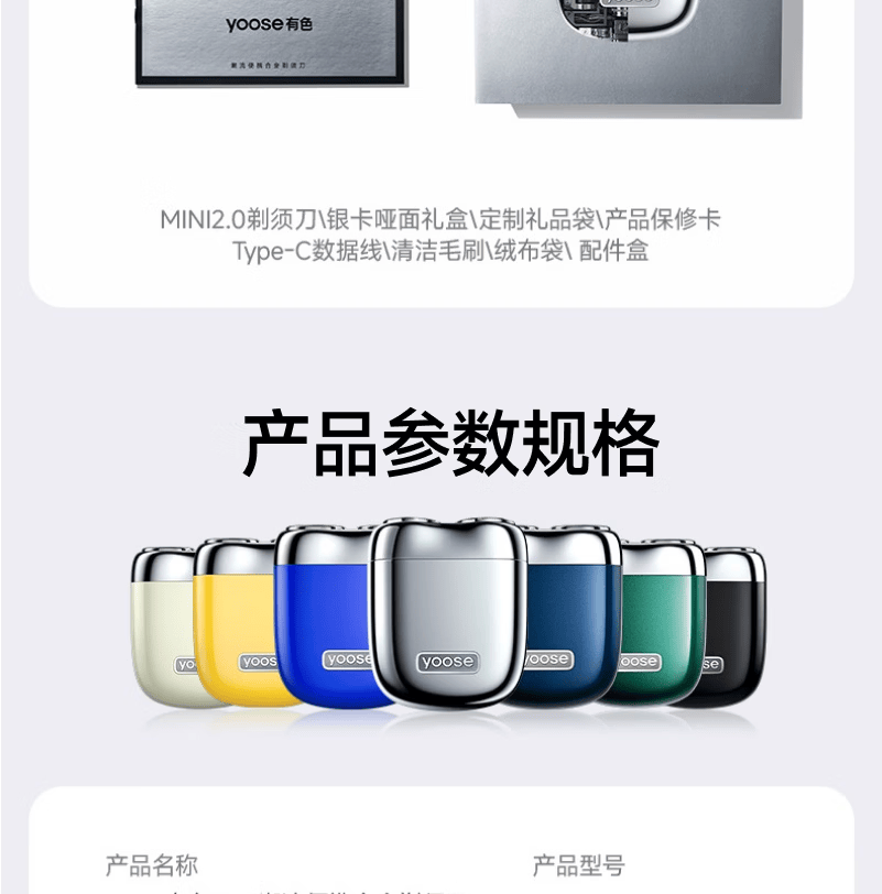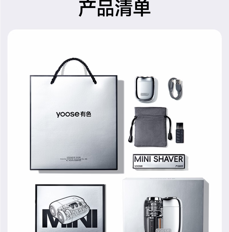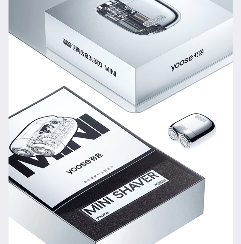 有色(yoose)剃须刀合金电动刮胡刀迷你便携亲肤旋转式 男士生日礼物送男朋友老公胡须刀礼盒 MINI 2.0电镀银