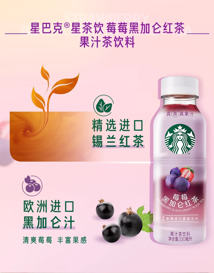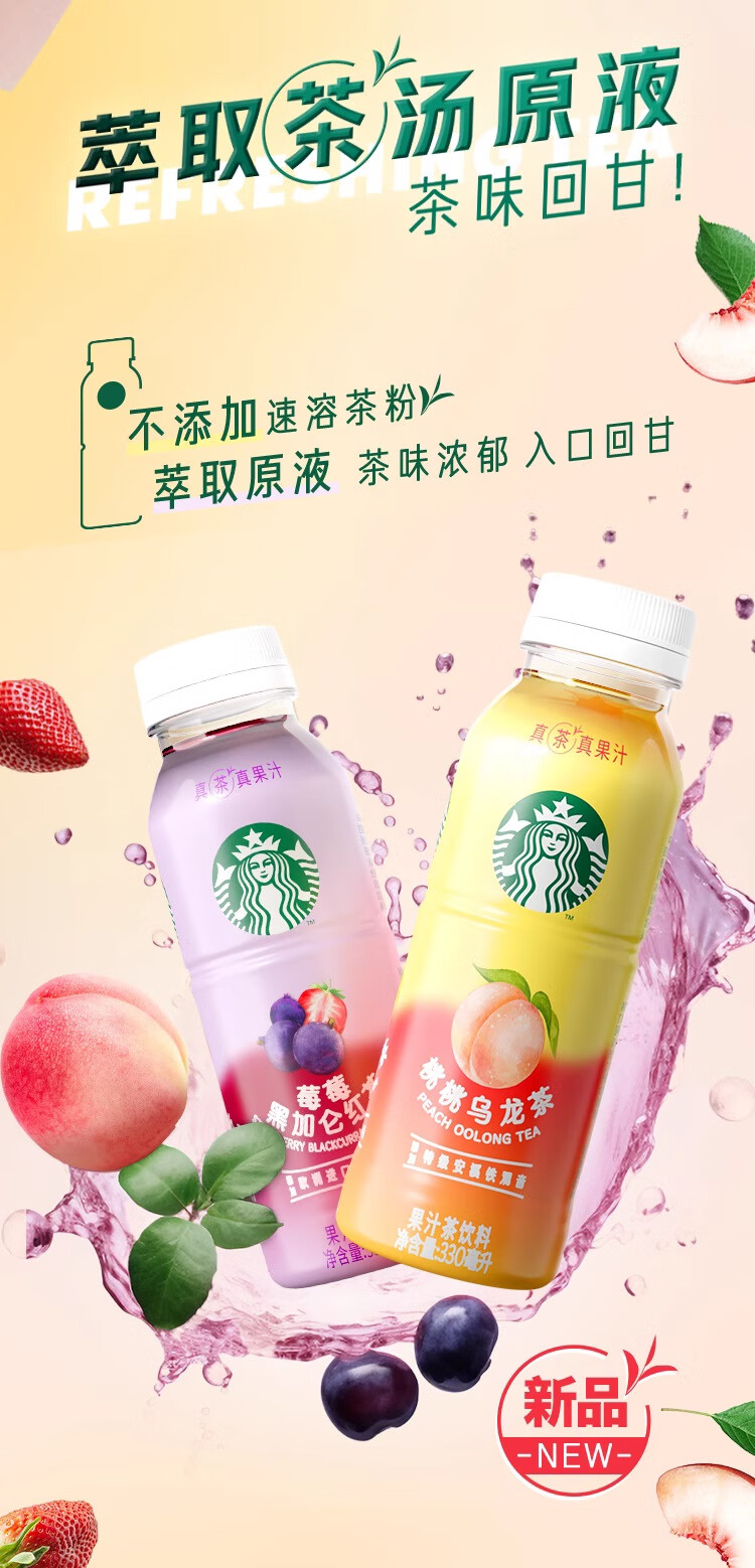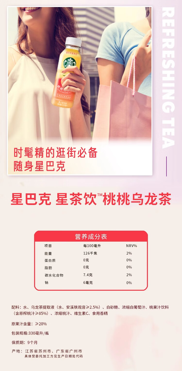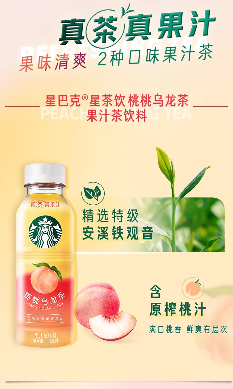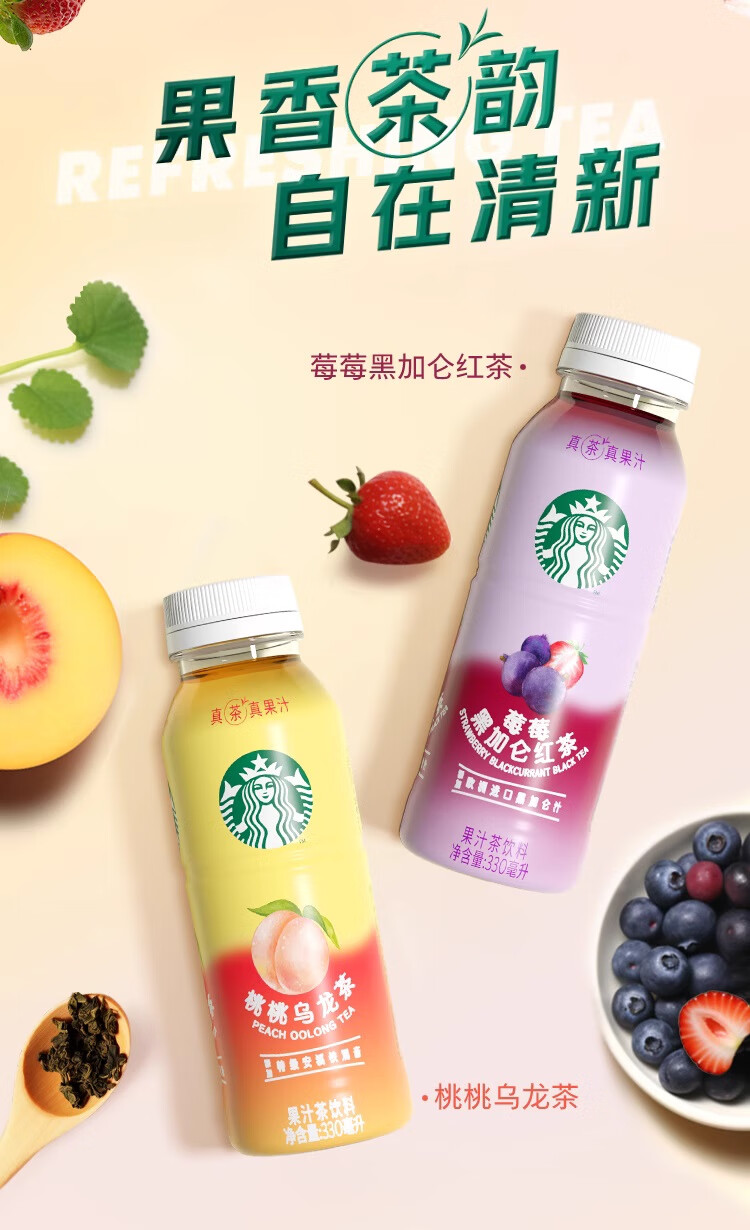 星巴克星茶饮桃桃乌龙茶果汁茶饮料330ml*15瓶 AJ1386