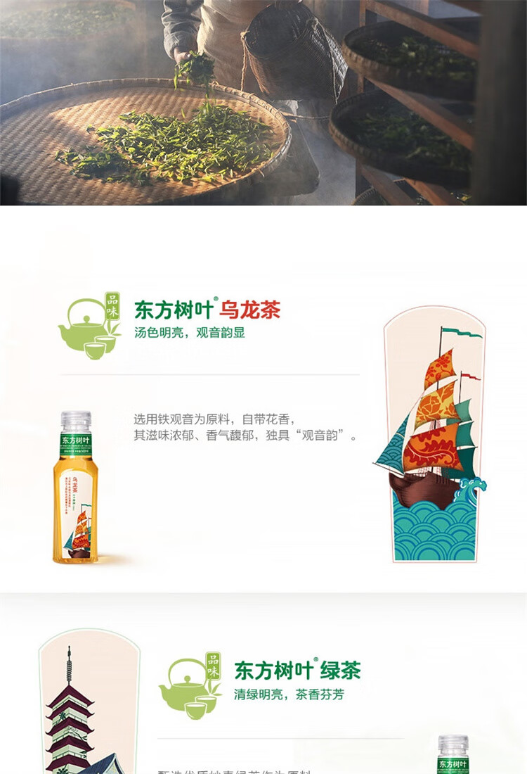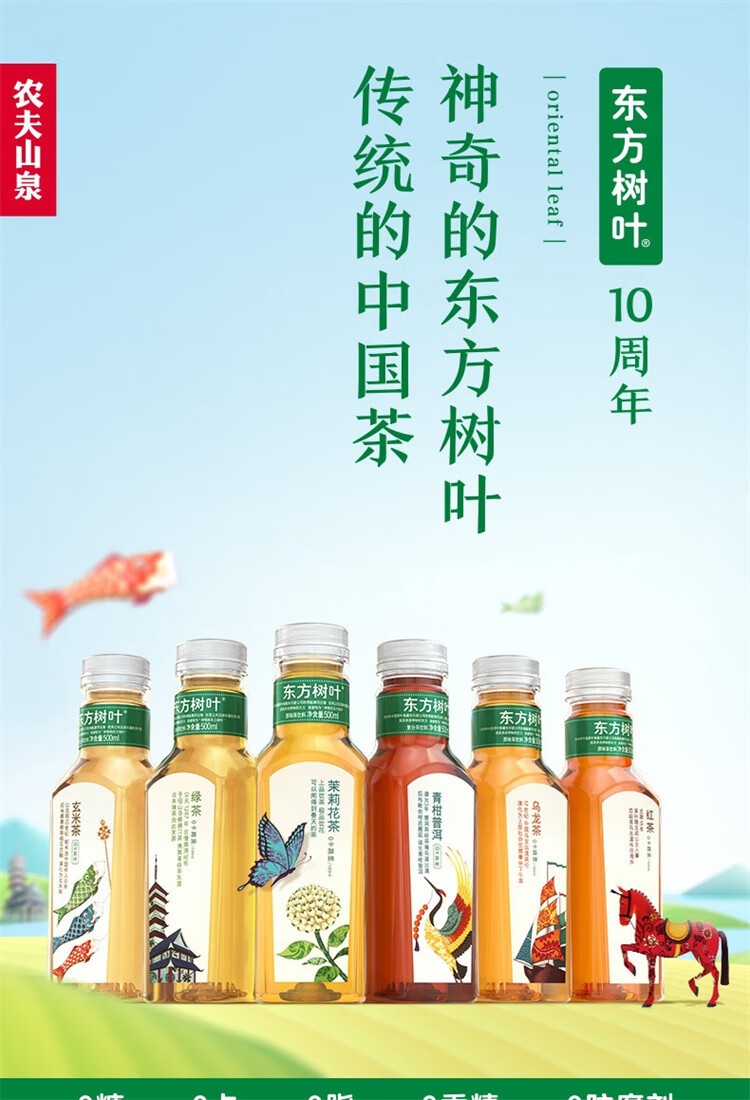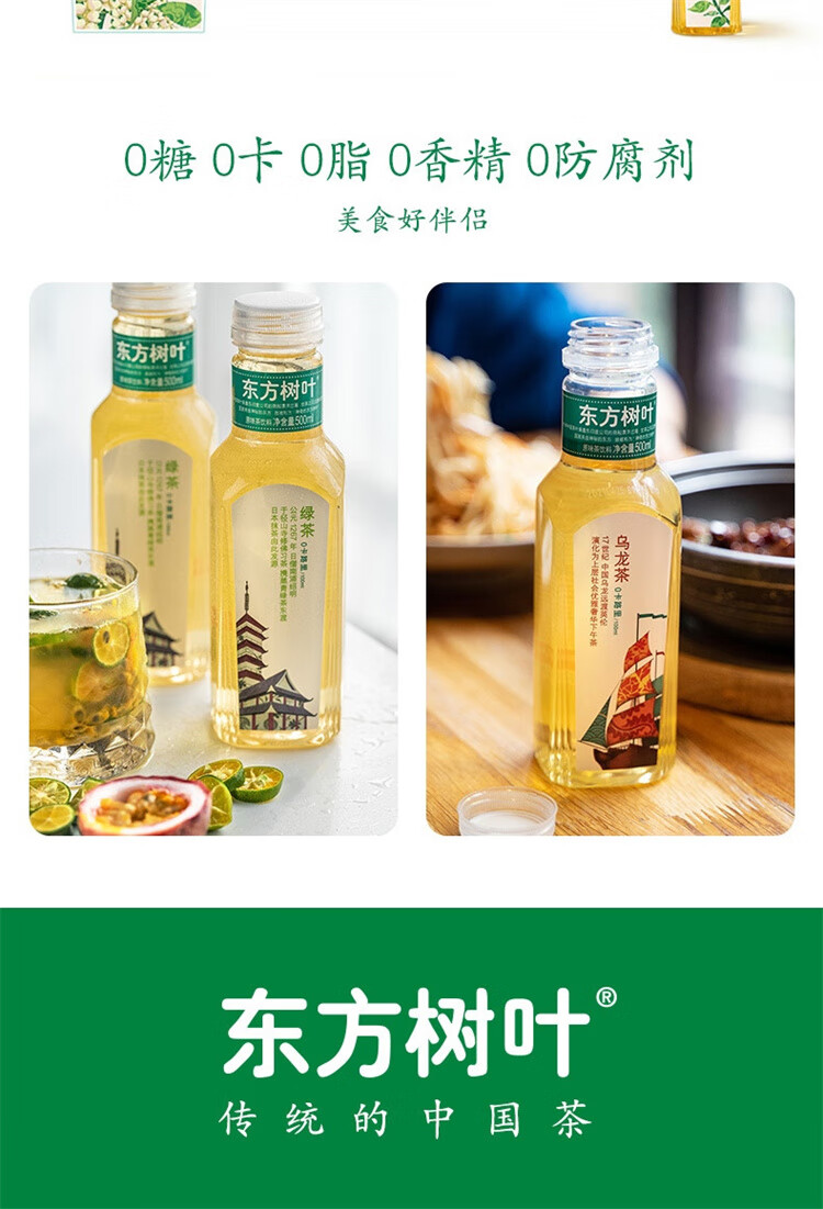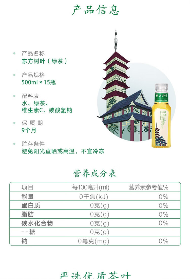 农夫山泉东方树叶绿茶500ml*15瓶 0糖0脂0卡无糖饮料茶饮料 整箱装
