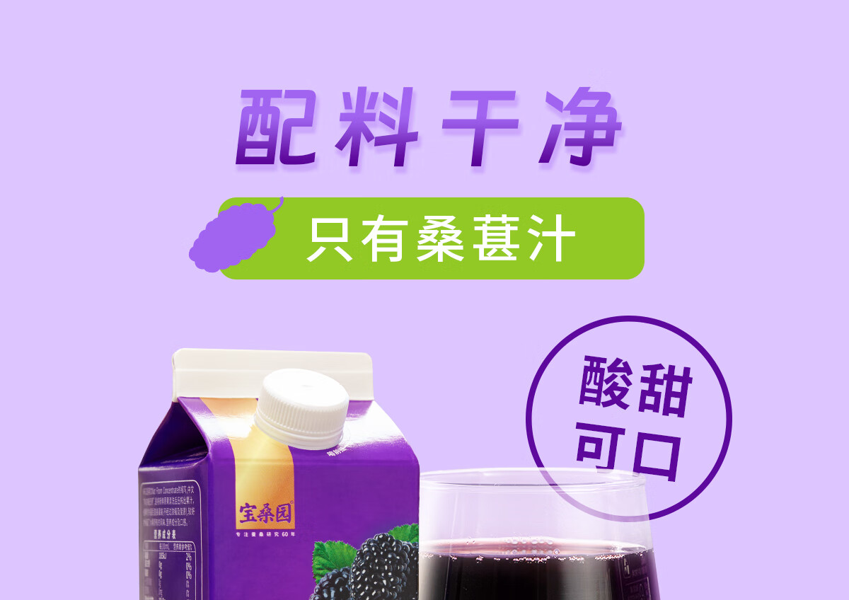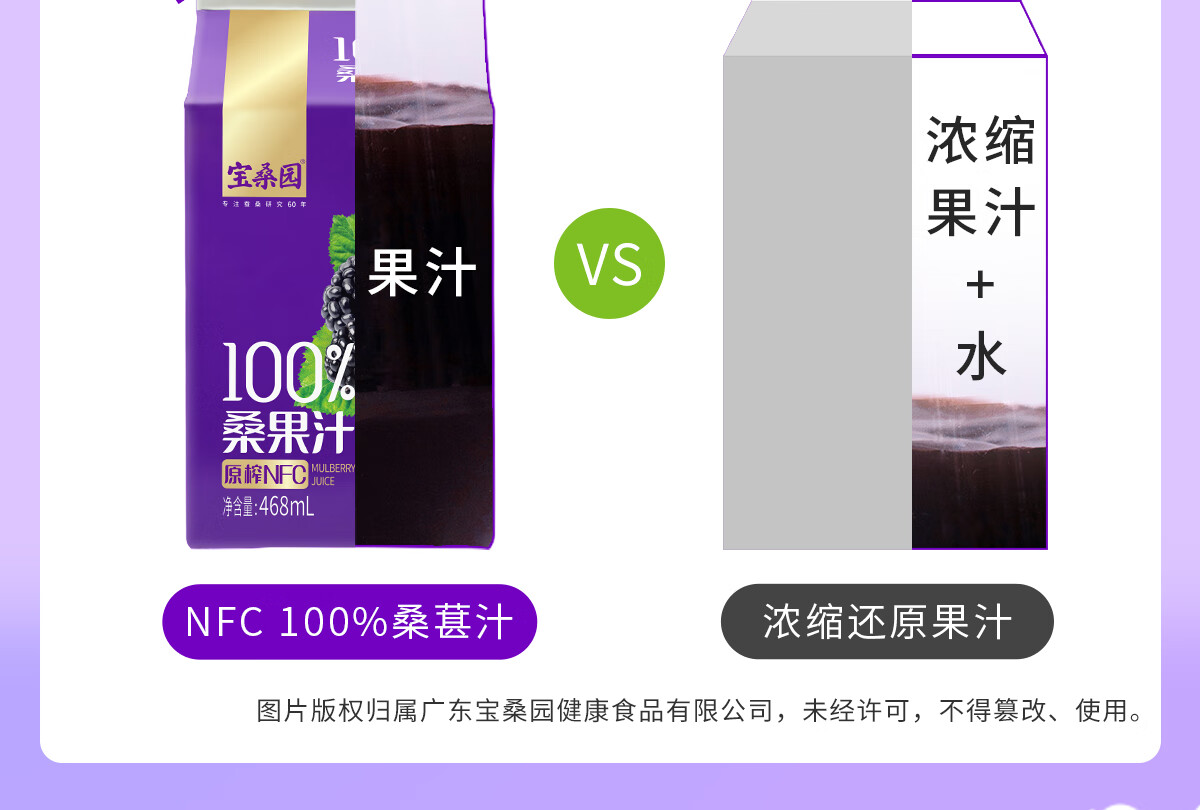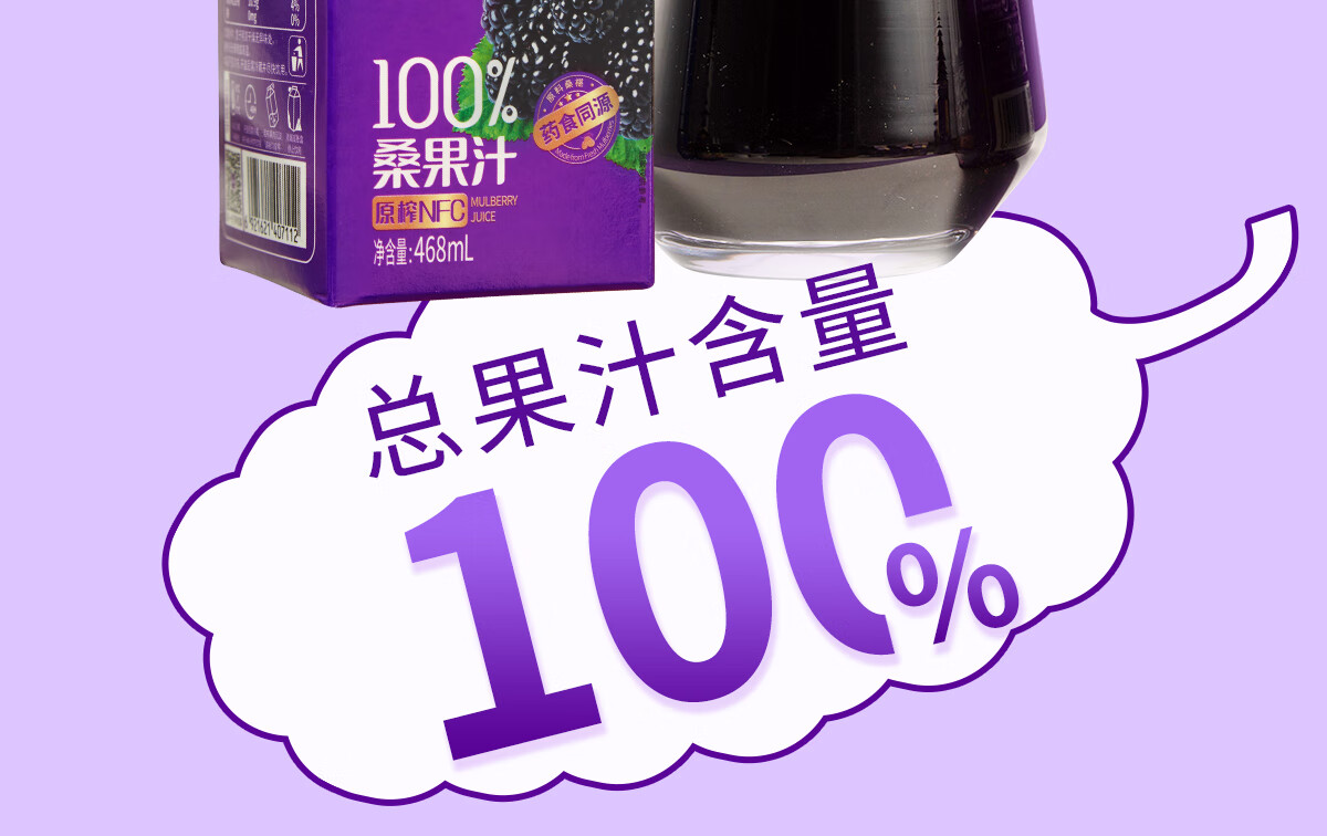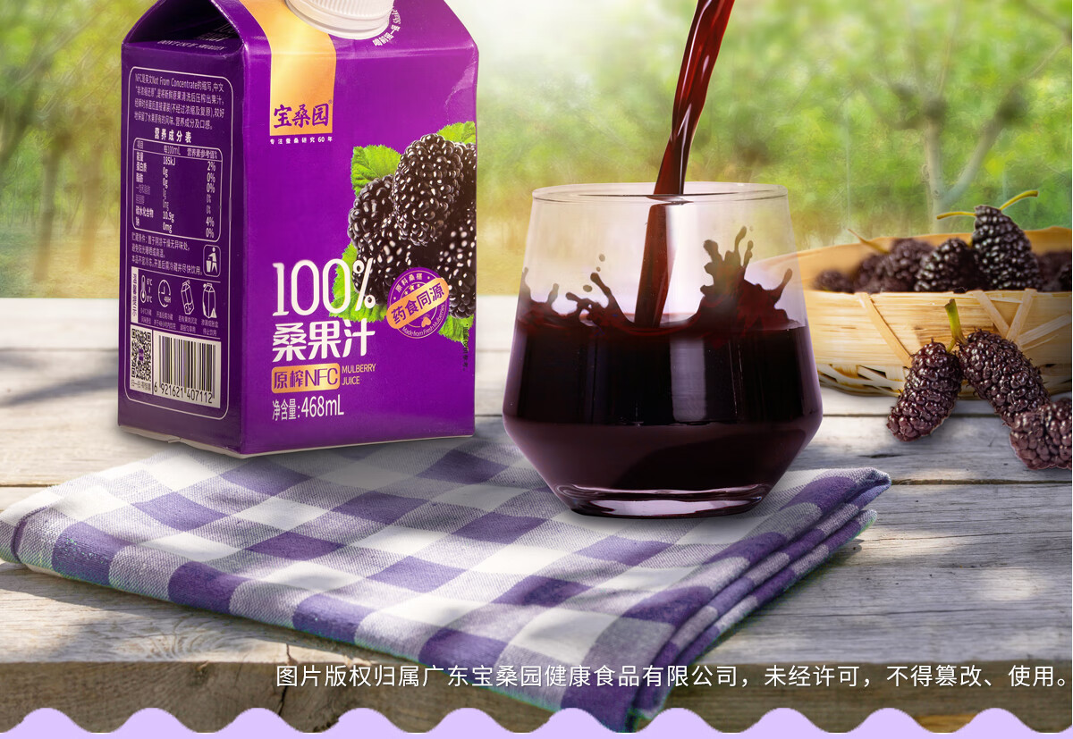 宝桑园 100%桑葚汁468ml*12盒NFC桑果汁 纯果蔬汁礼盒装