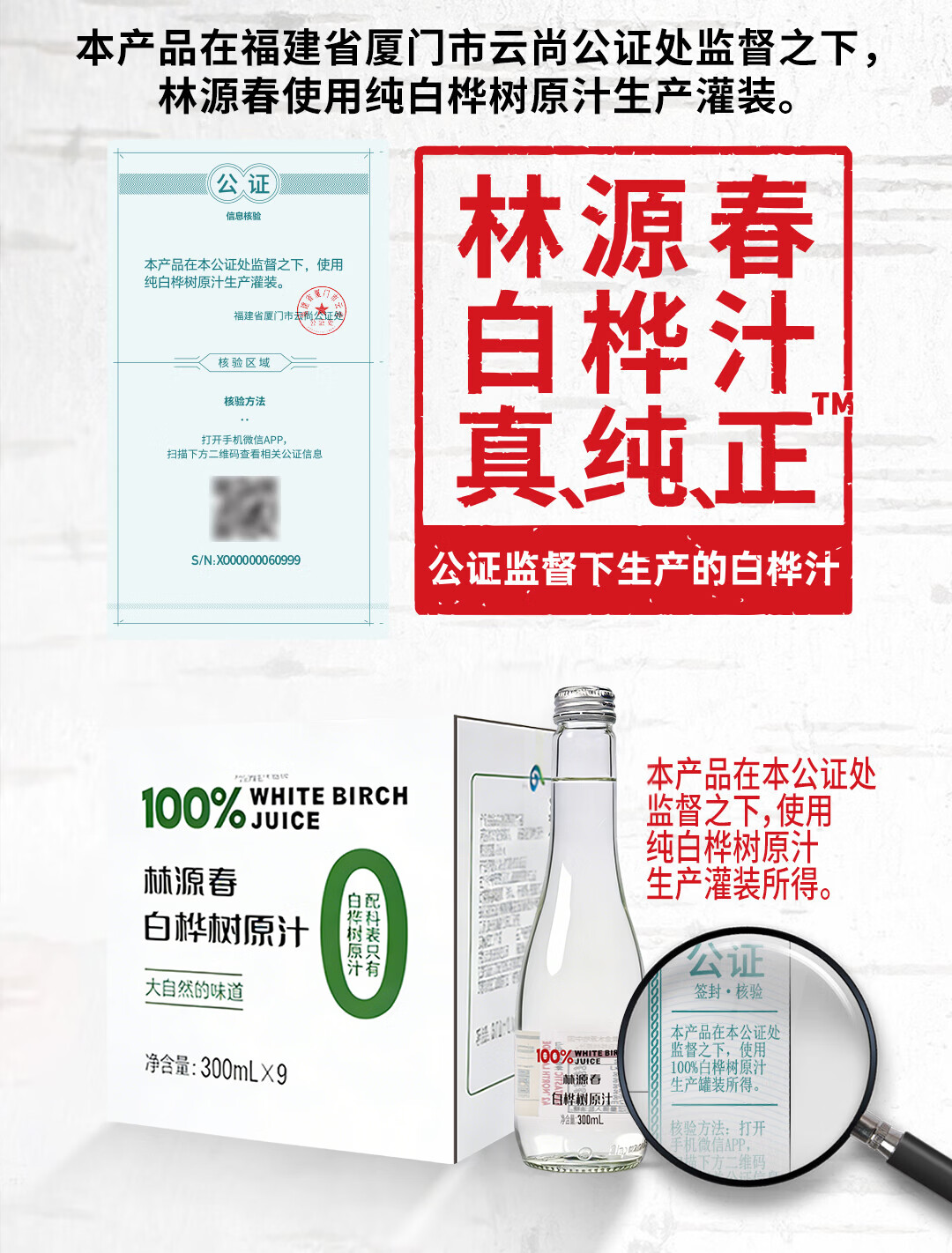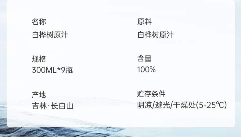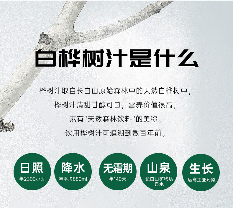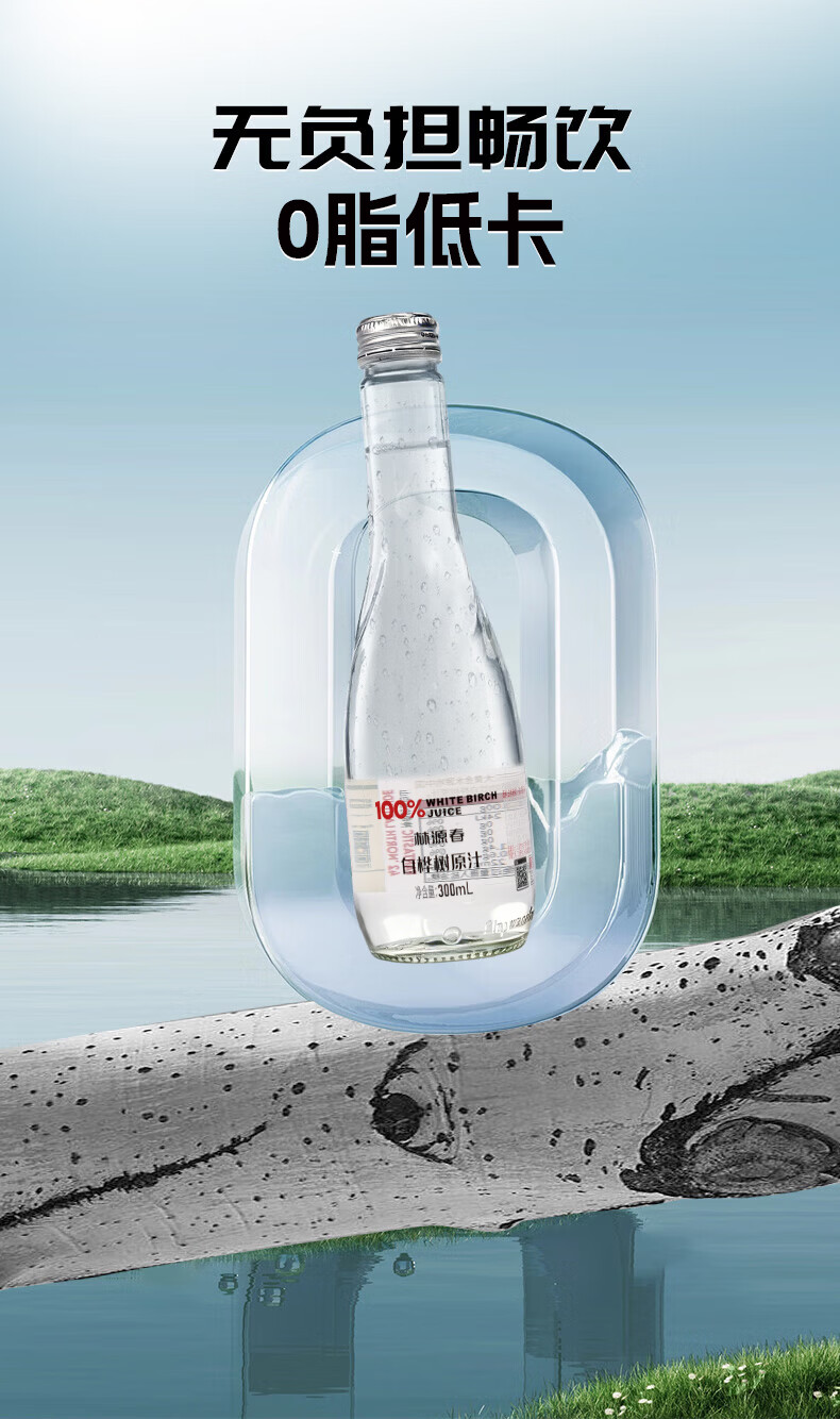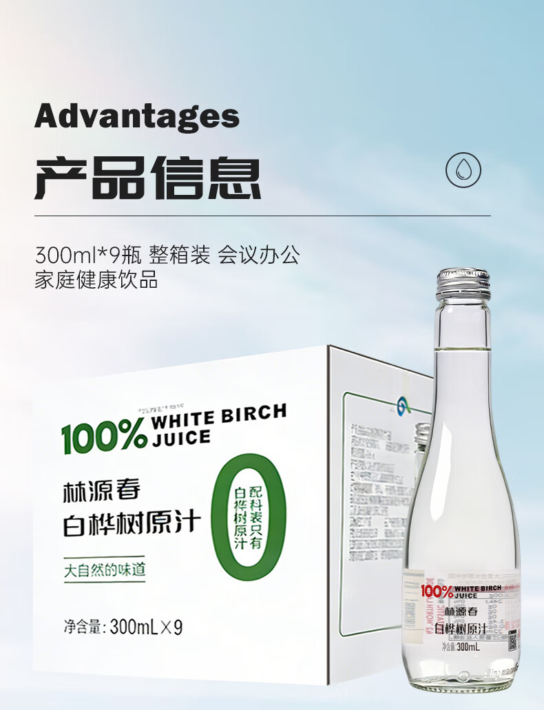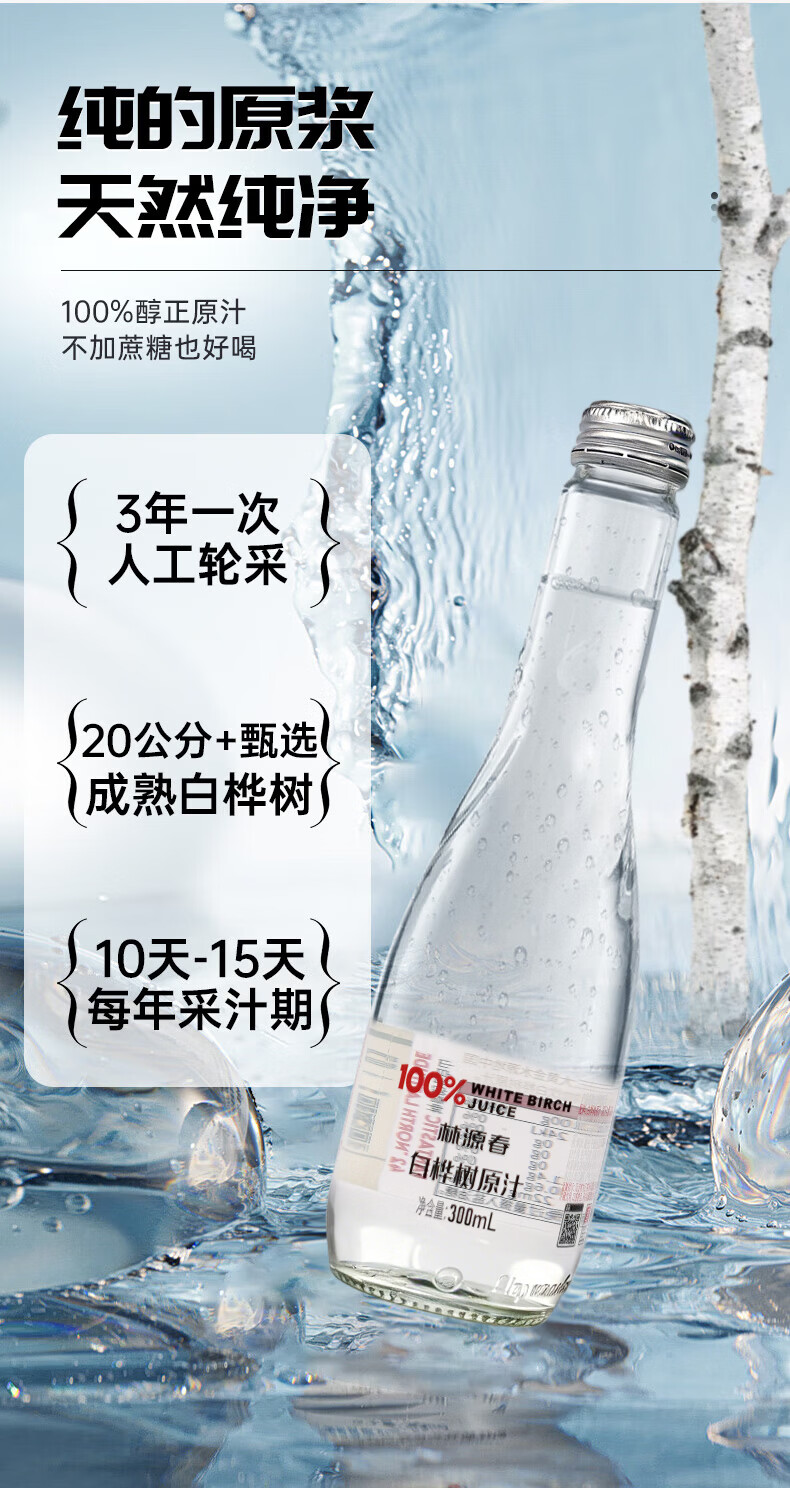 林源春白桦树汁原液饮料100%NFC原汁0添加白桦树树汁300ml*9瓶年货送礼
