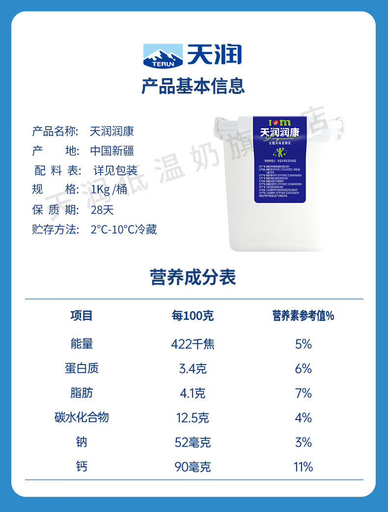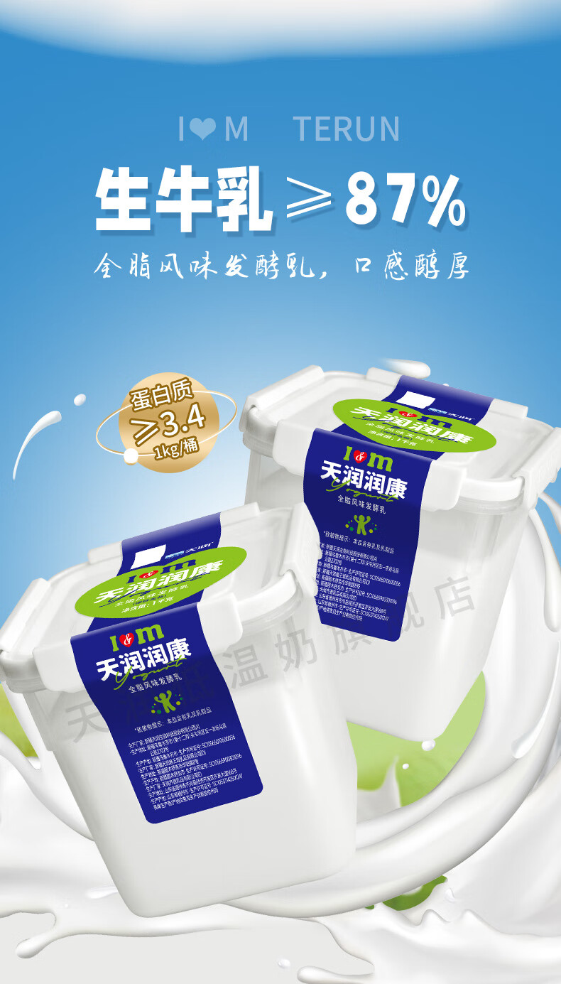 天润(TERUN)新疆酸奶 润康方桶 低温酸奶酸牛奶老酸奶 大桶酸奶 1kg*1桶