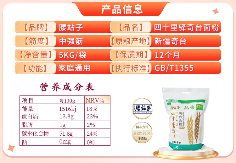 腰站子新疆奇台小麦面粉10斤中强筋绿色认证馒头包子通用粉热门商品推荐