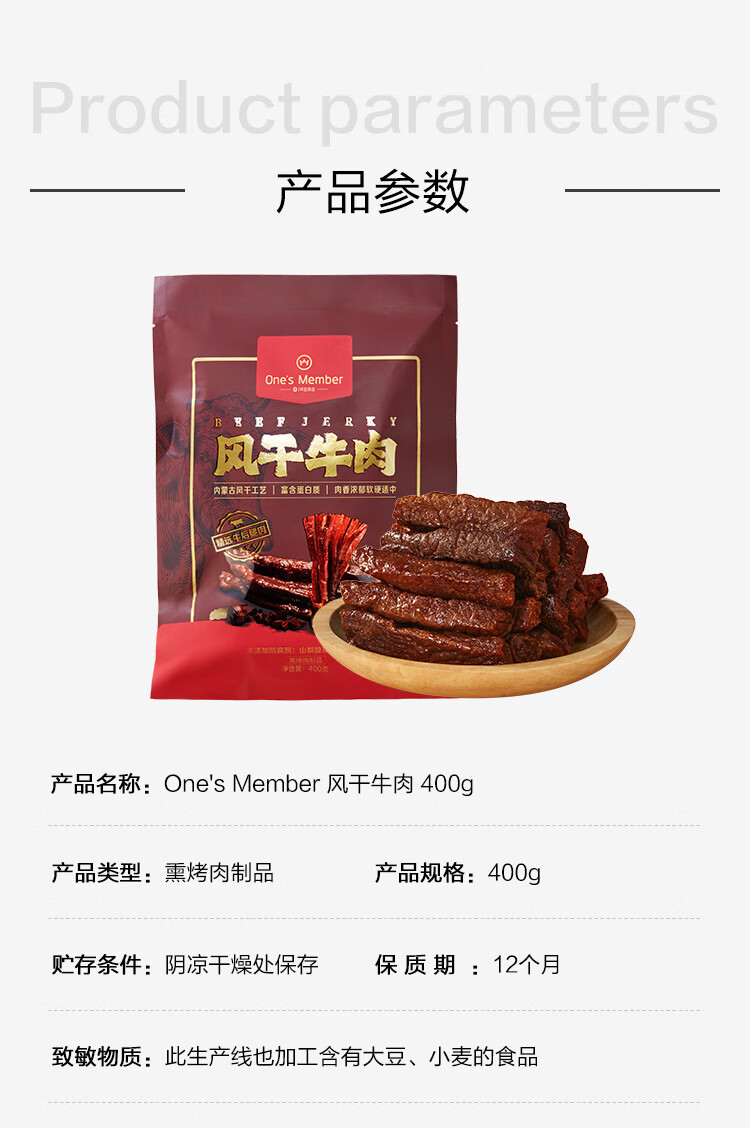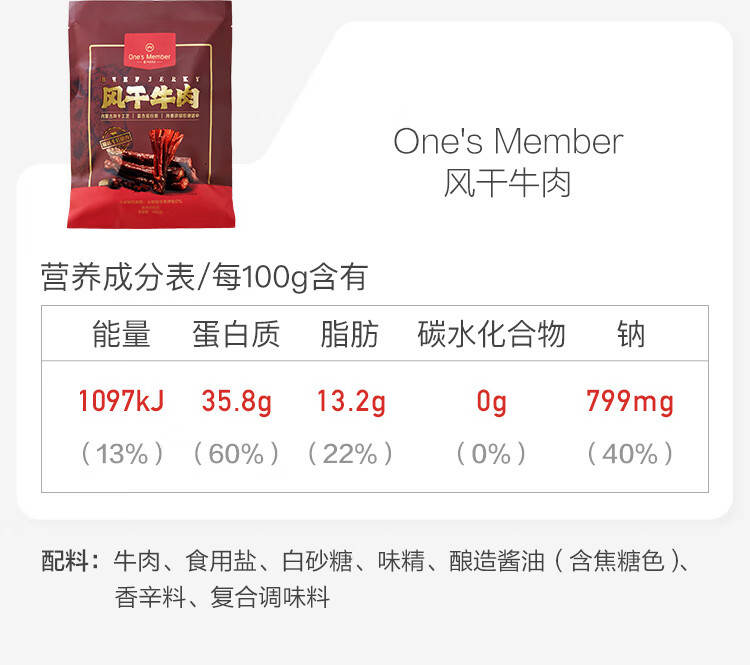 1号会员店1号会员店风干牛肉干原味 400g偏软休闲零食量贩装