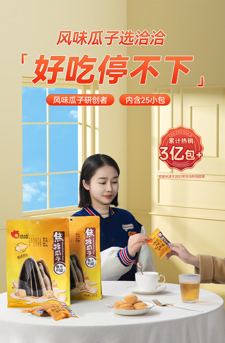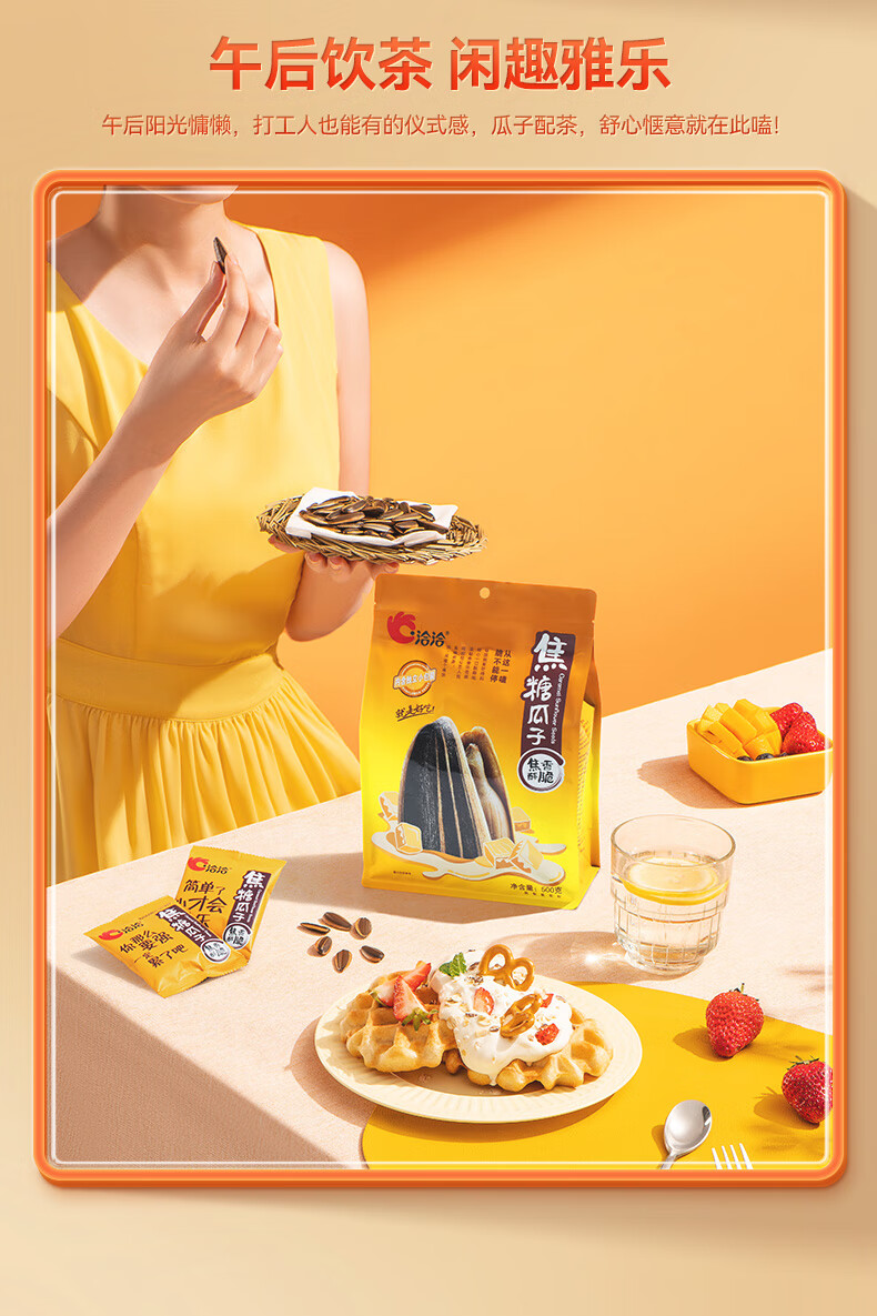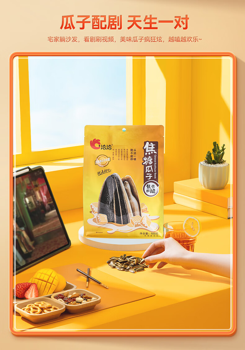 洽洽焦糖瓜子零食500g葵花籽大颗粒休闲零食独立小包20g*25包大包装