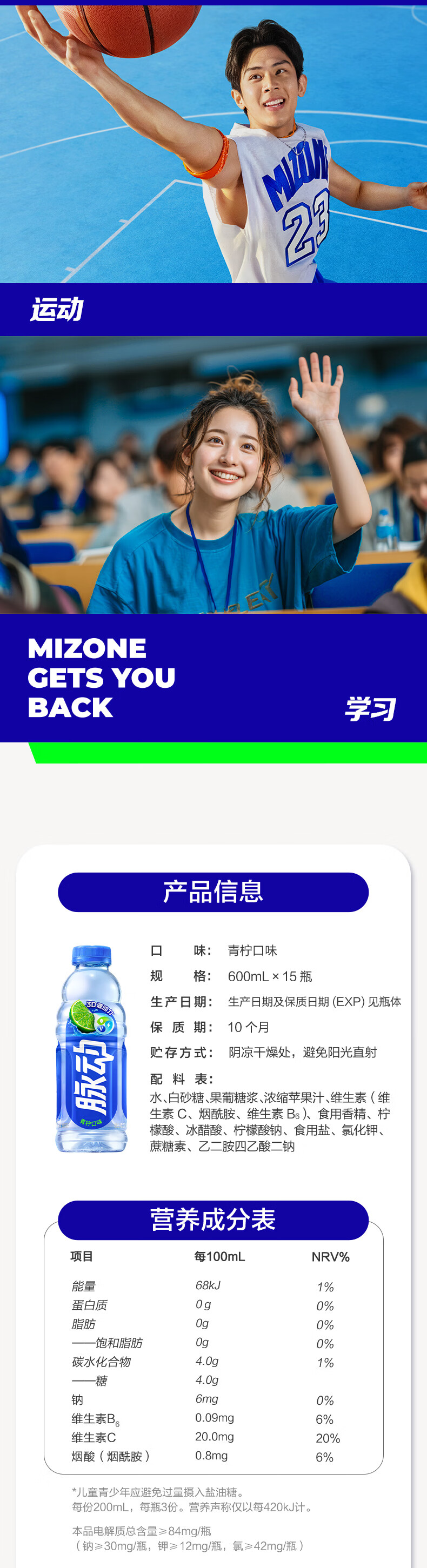 脉动青柠口味 600ML*15瓶 维C低糖维生素出游运动功能饮料 宋雨琦同款