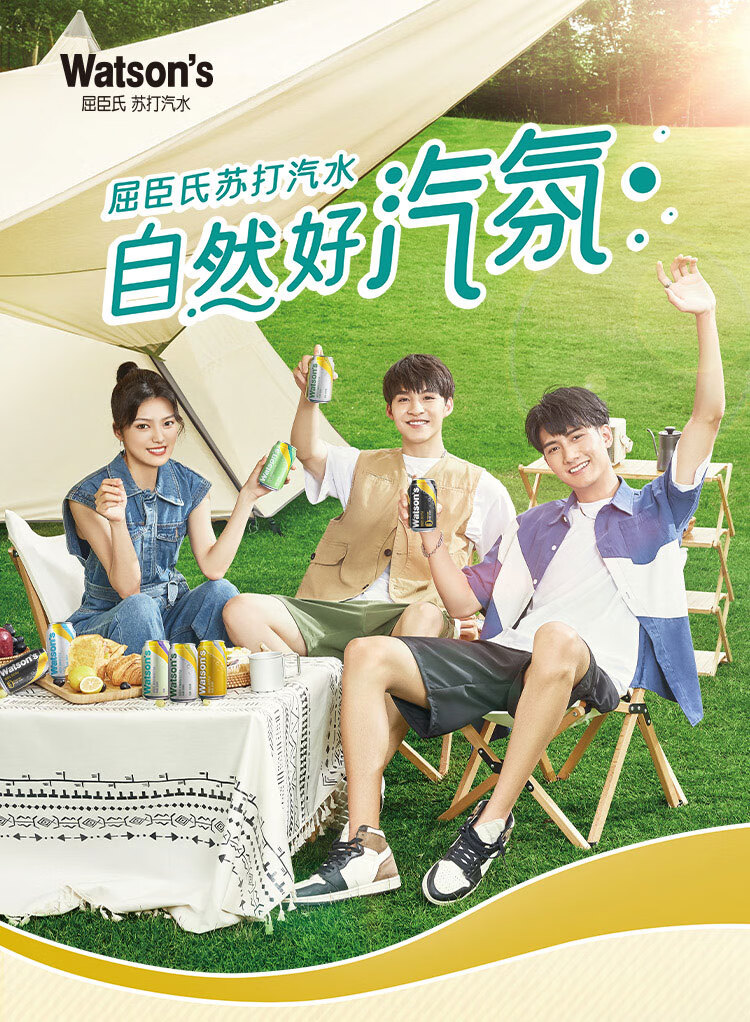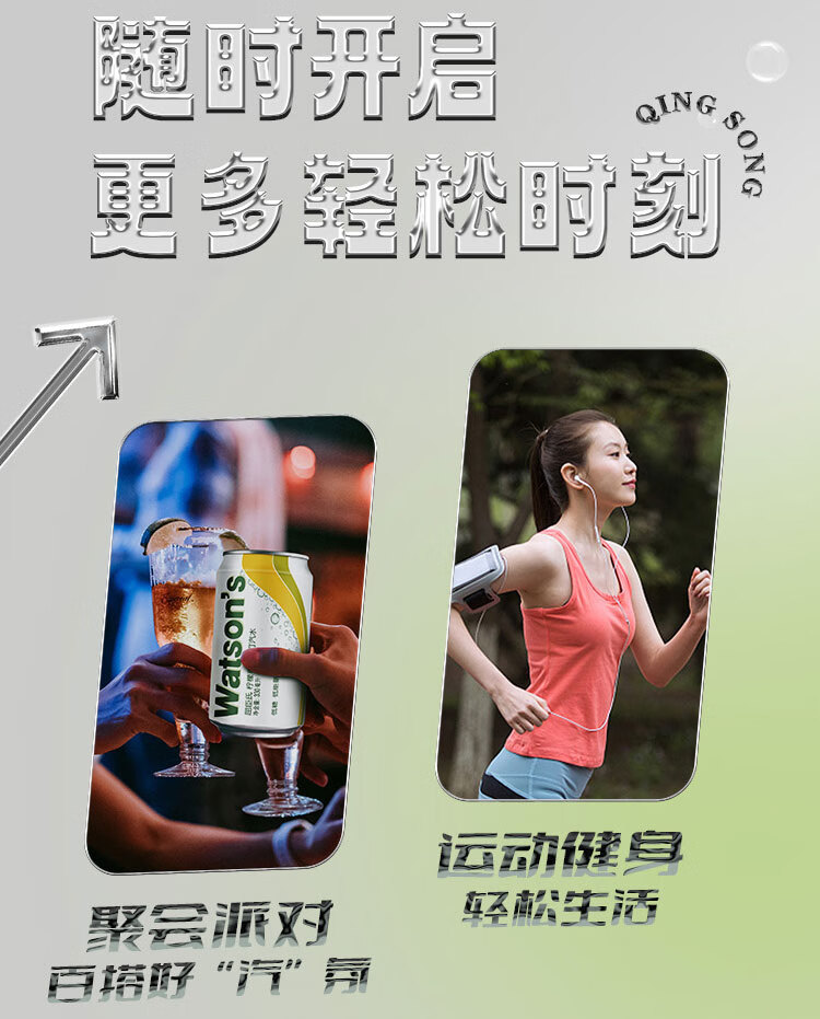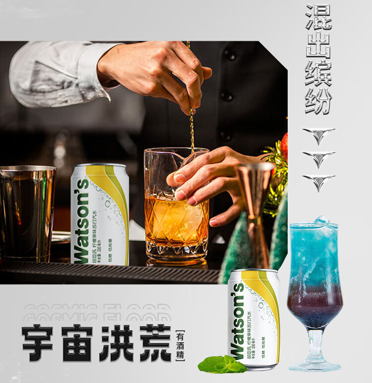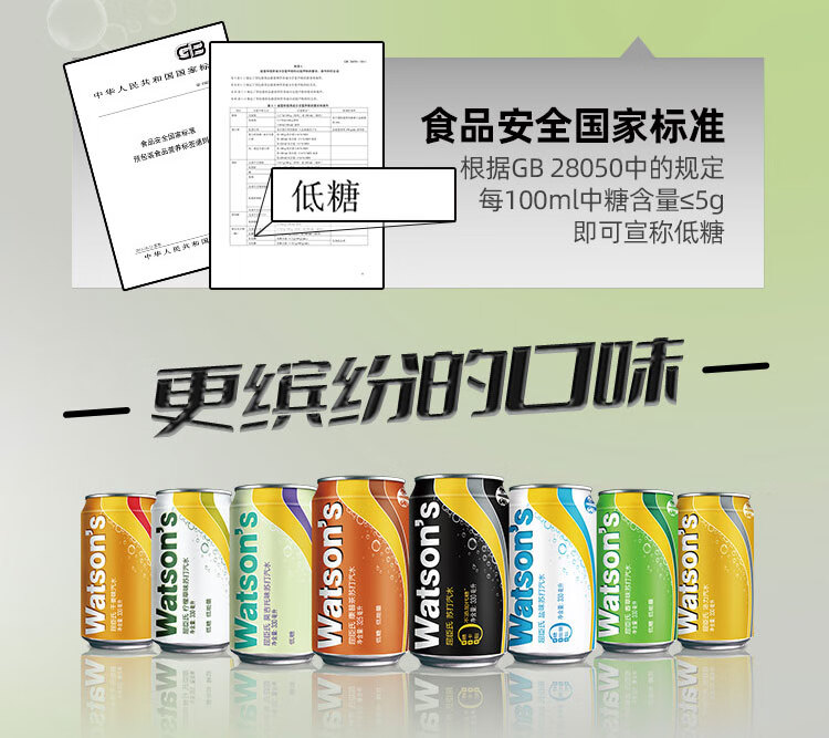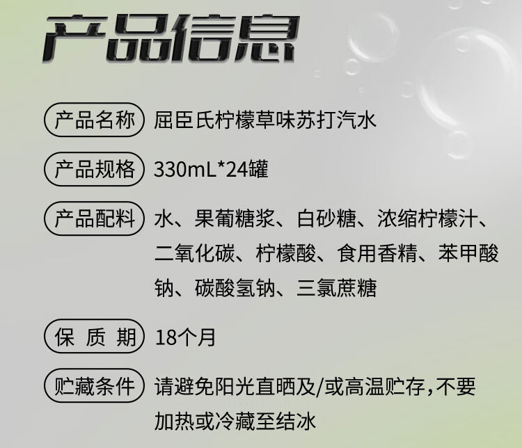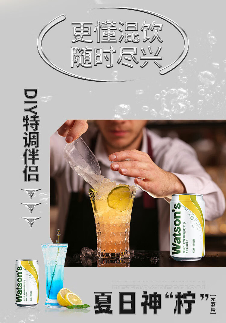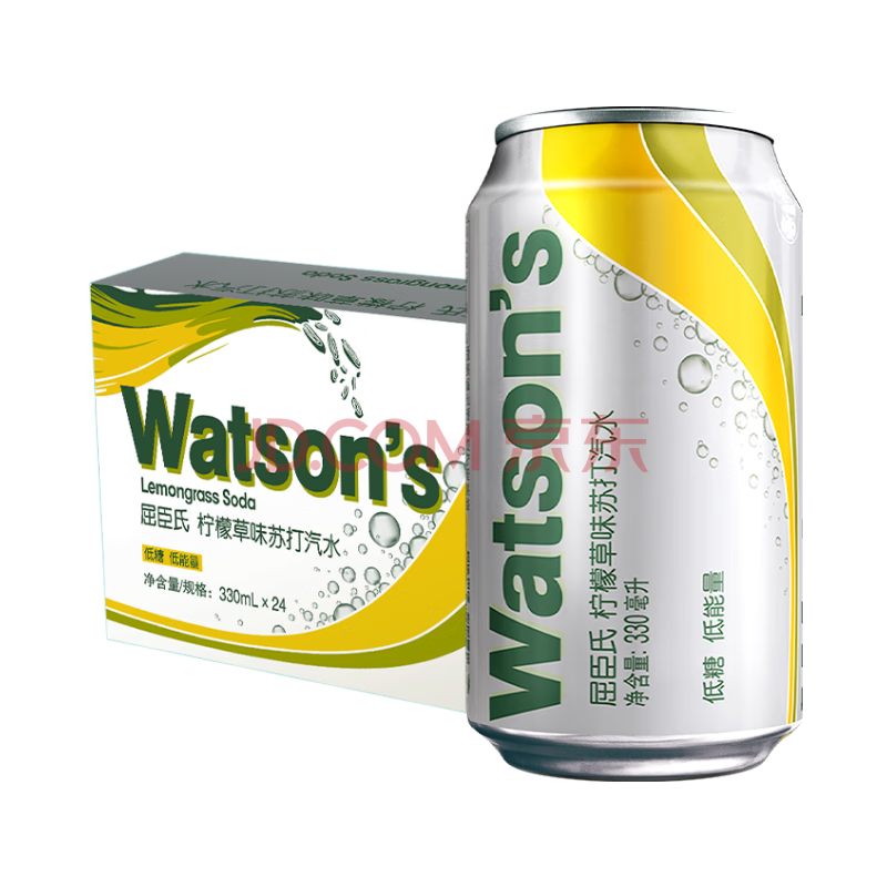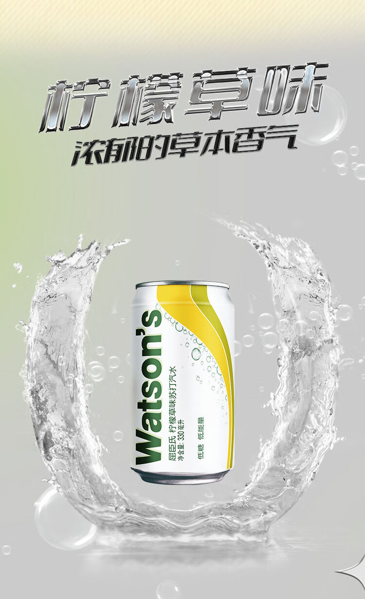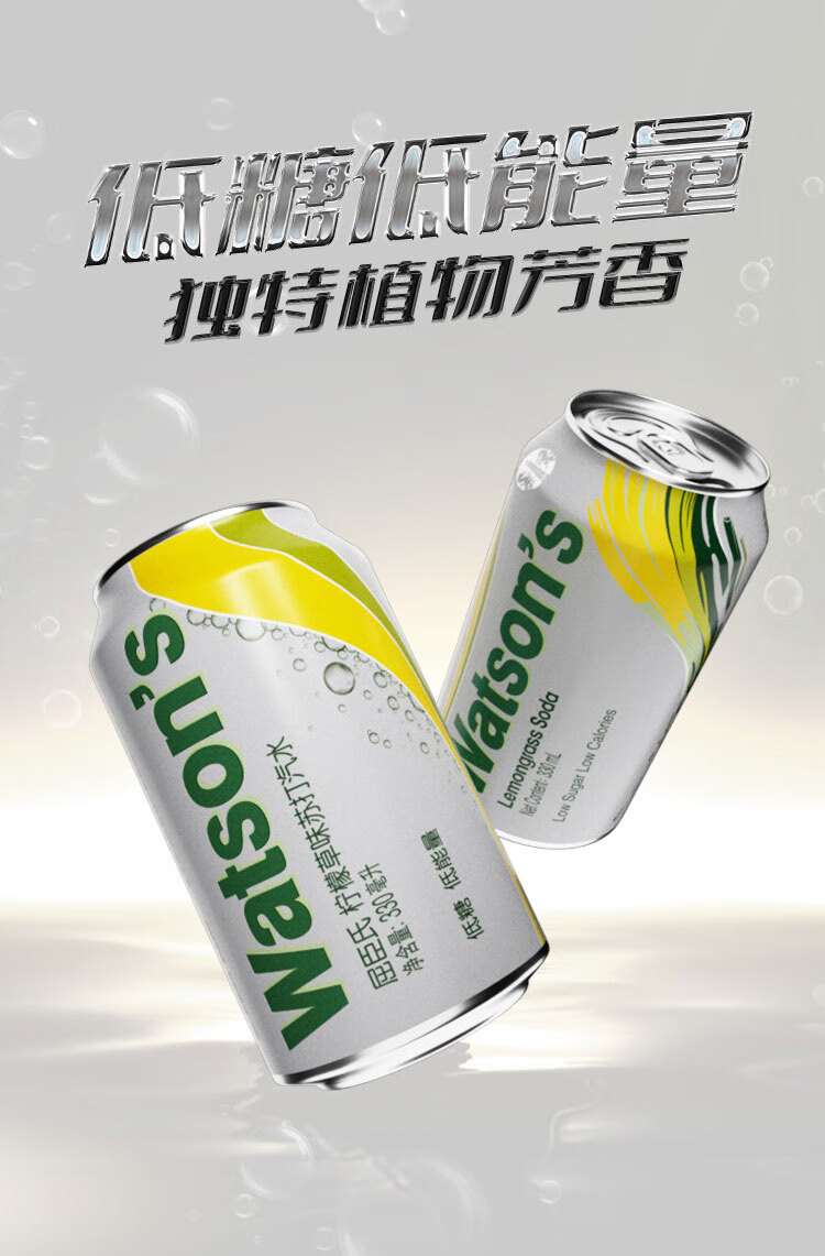 屈臣氏(Watsons)苏打水柠檬草味低糖0脂低卡饮料解腻调酒火锅330mL*24罐整箱