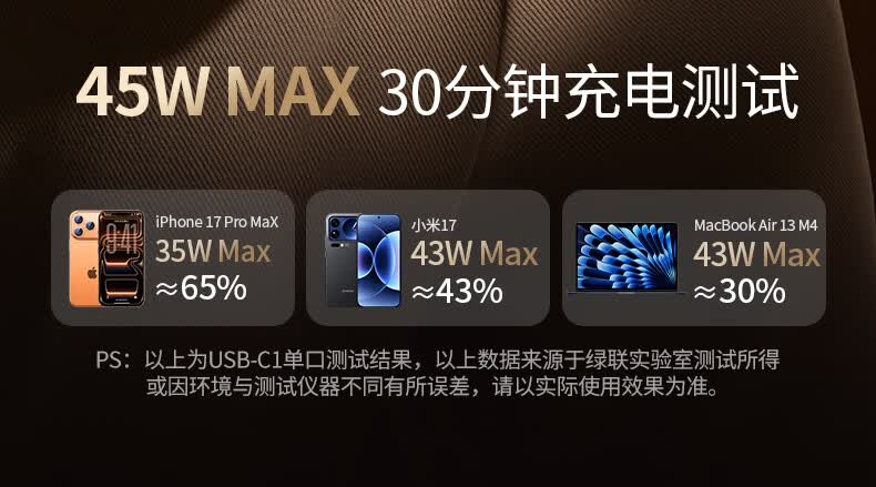 绿联【3C认证上飞机】超能块充电宝自带线20000毫安45W快充