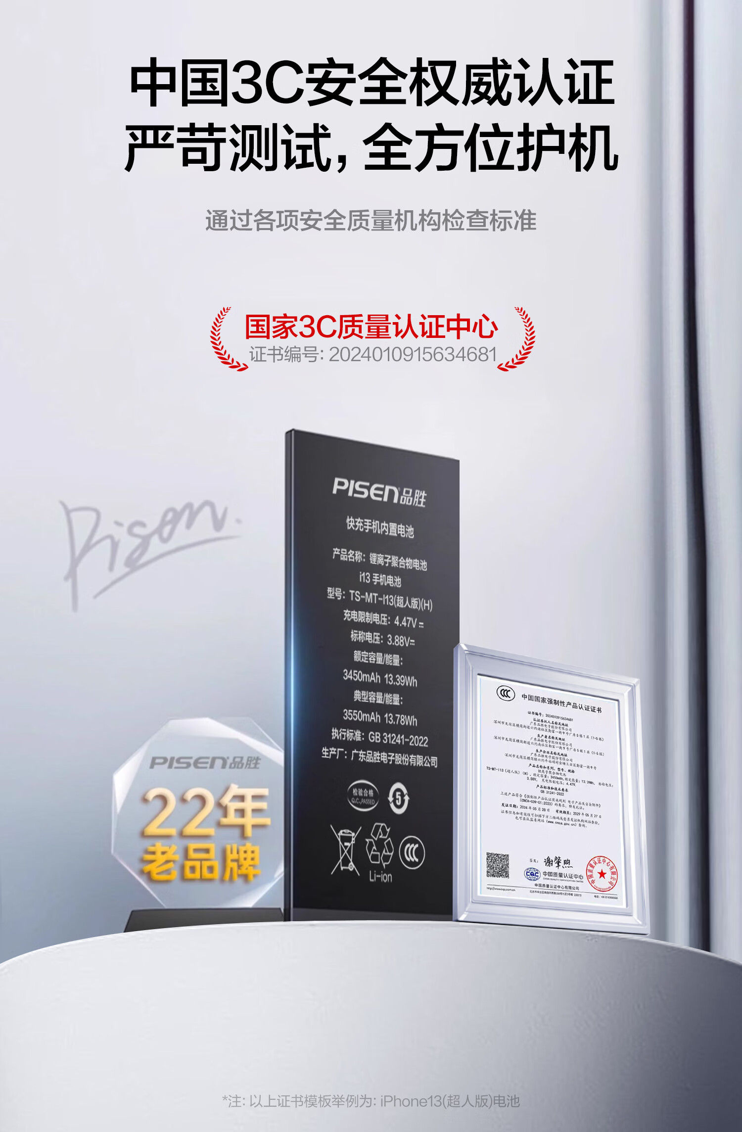 品胜 苹果13电池/iphone13电池 3C认证【到店免费安装】苹果手机内置电池更换 【3450mAh】