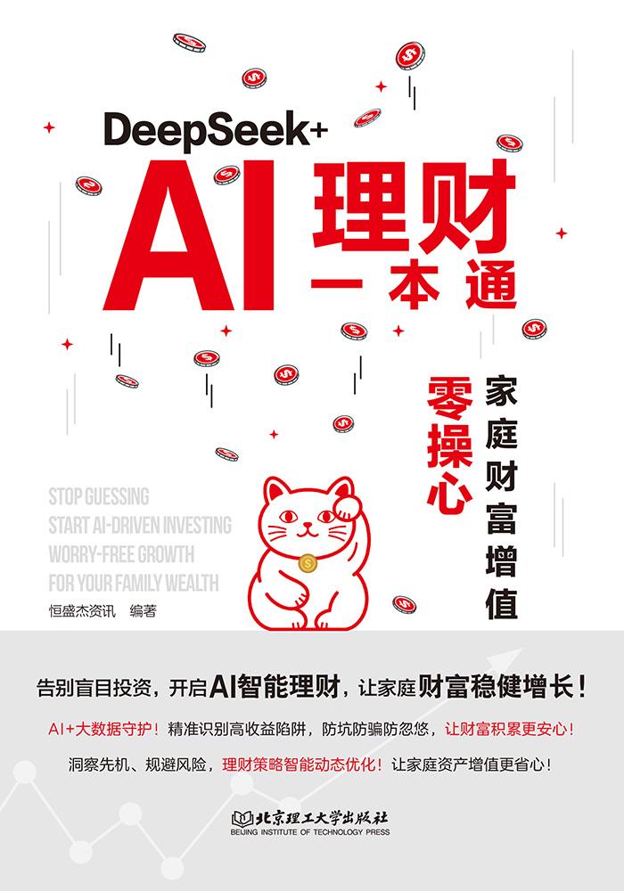 本书精准切中当代家庭理财的痛点,将前沿AI技术与传统财富管理深度融合,是一本真正“懂普通人”的智能理财指南。书中不仅系统覆盖收支管理、投资配置、保险规划、教育养老等全环节,更借助DeepSeek等工具提供实操性极强的解决方案——比如用AI解析产品陷阱、优化消费储蓄、预警风险波动,让复杂决策变得简单清晰。语言通俗、案例生动,即使零基础读者也能轻松上手。推荐给每一个渴望实现财富稳健增长、拒绝被“割韭菜”的现代家庭。