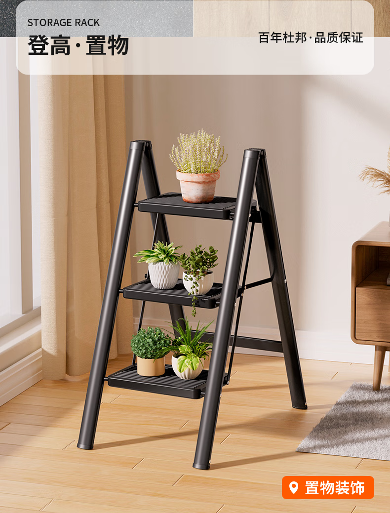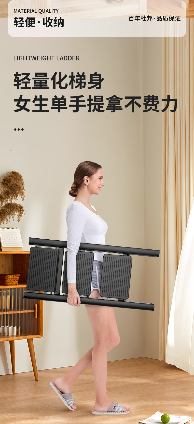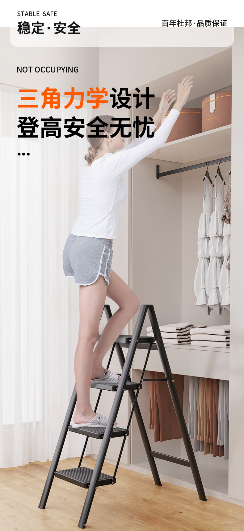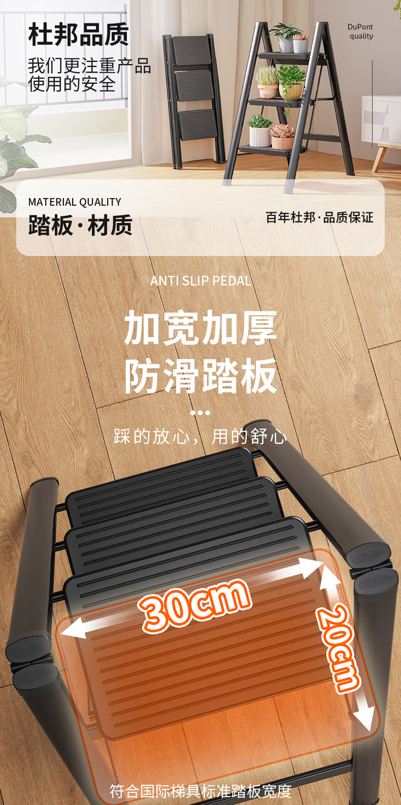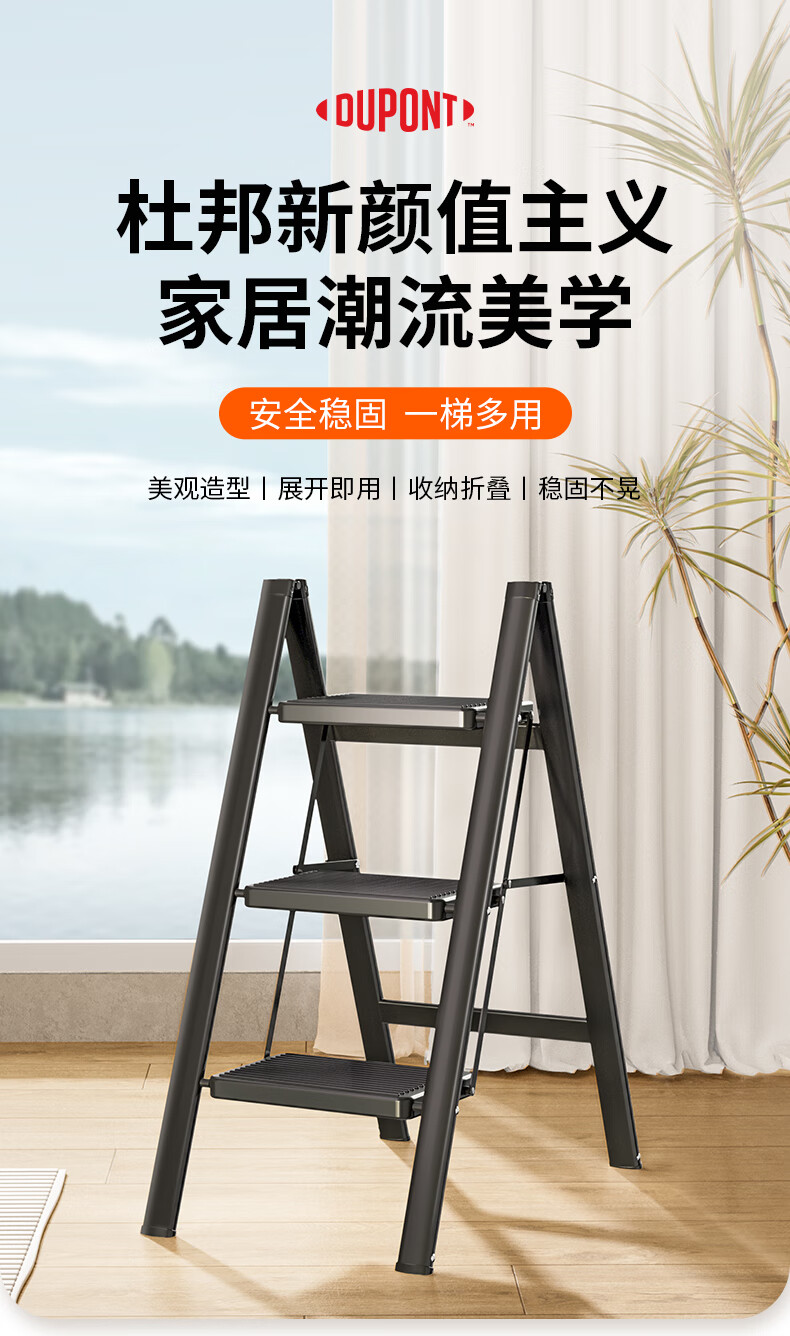杜邦(DU PONT)梯子家用人字梯折叠梯多功能凳登高台阶小步梯【曜黑】四步