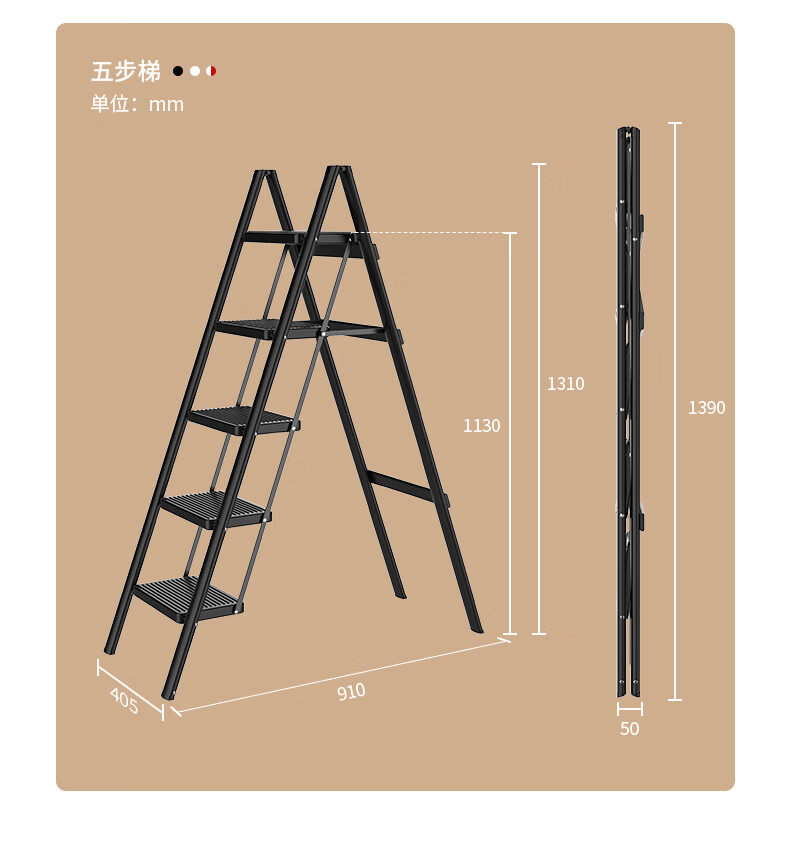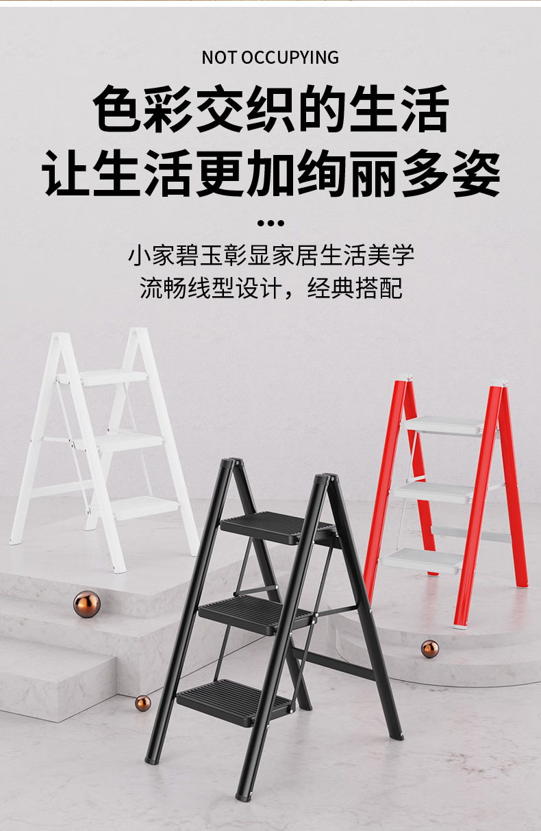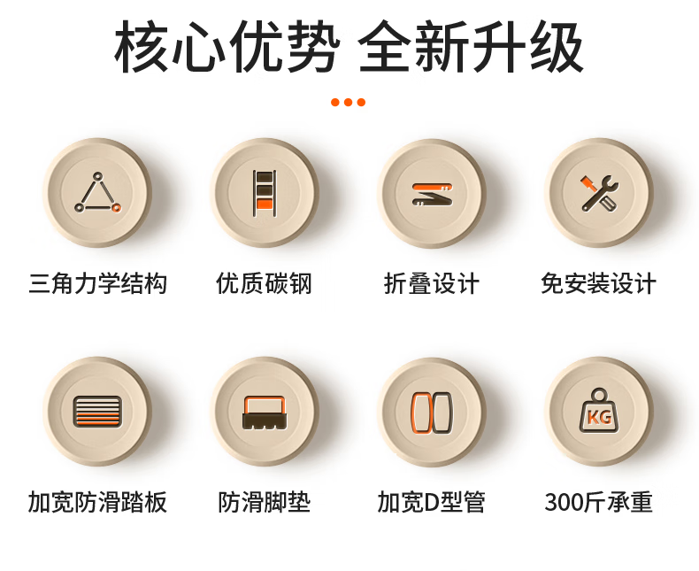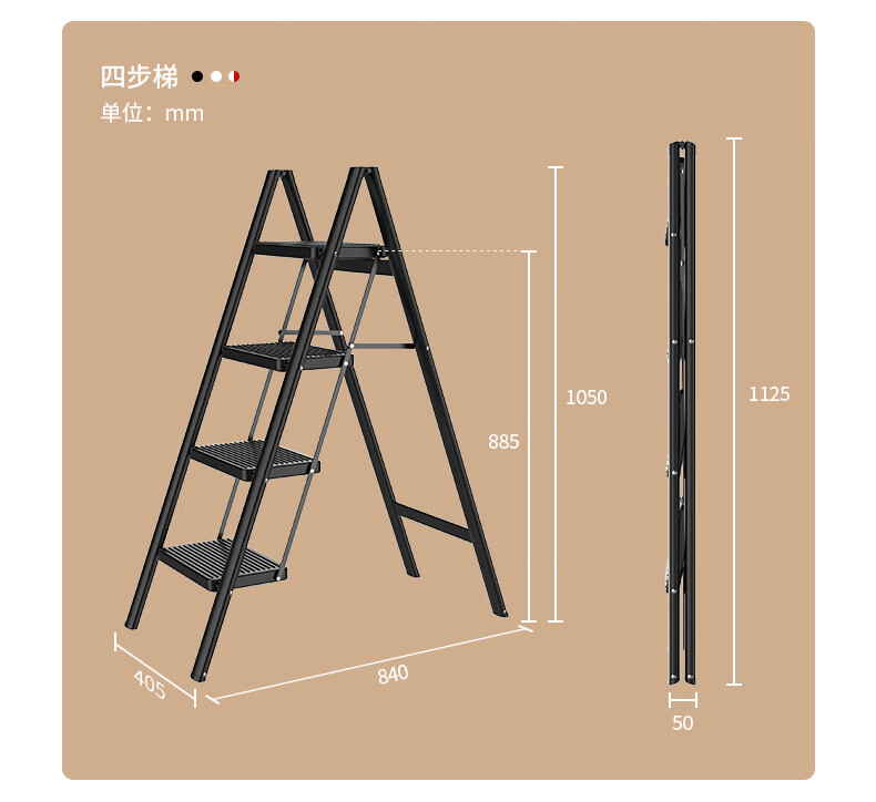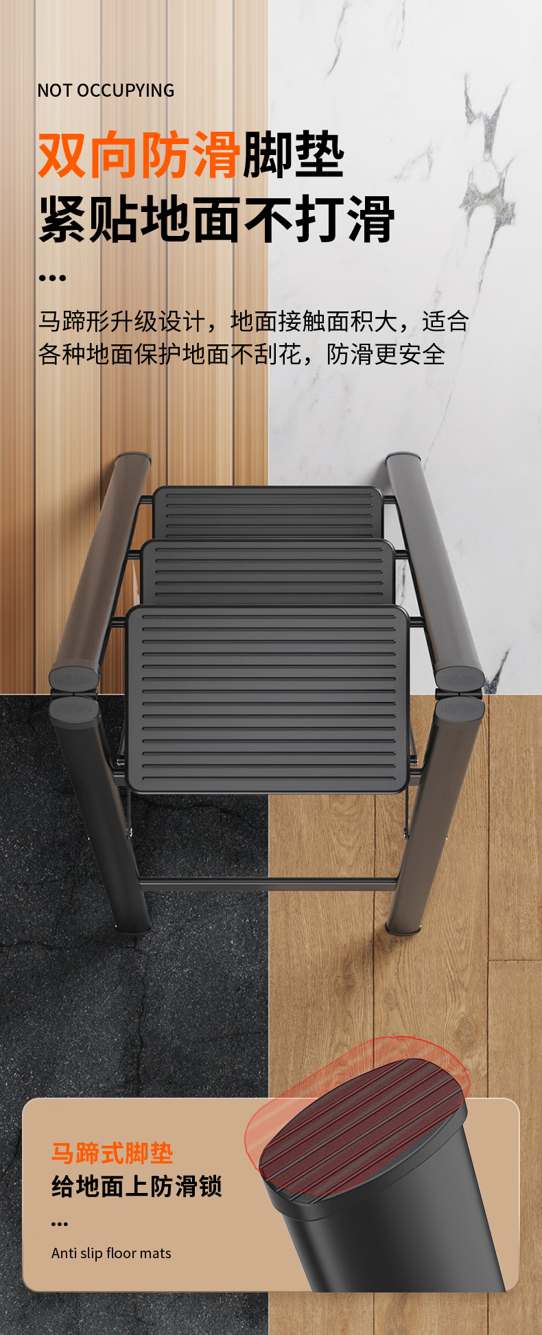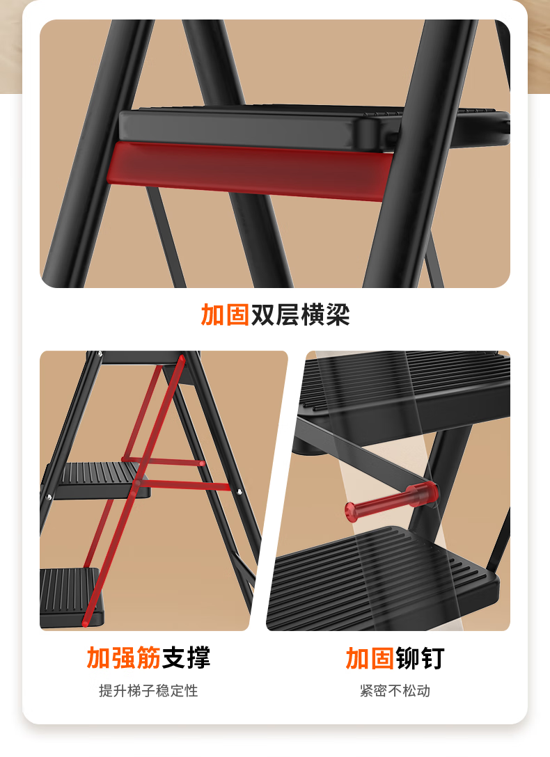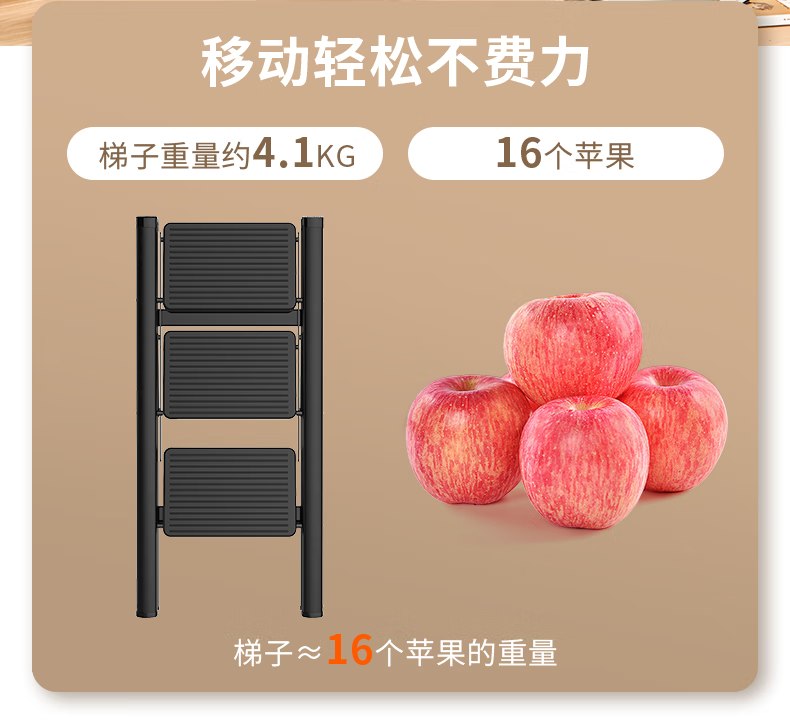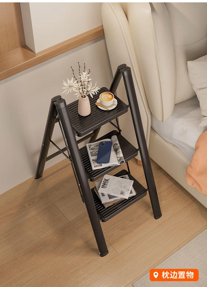 杜邦(DU PONT)梯子家用人字梯折叠梯多功能凳登高台阶小步梯【曜黑】四步