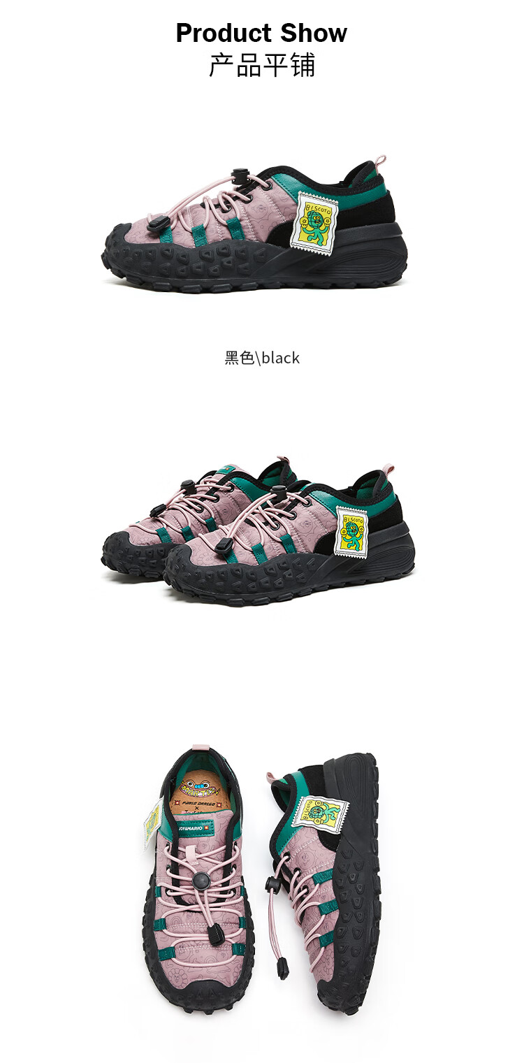 快乐玛丽(J&M)休闲鞋女秋季登山鞋厚底运动鞋户外露营丑萌溶解女鞋 黑色 38