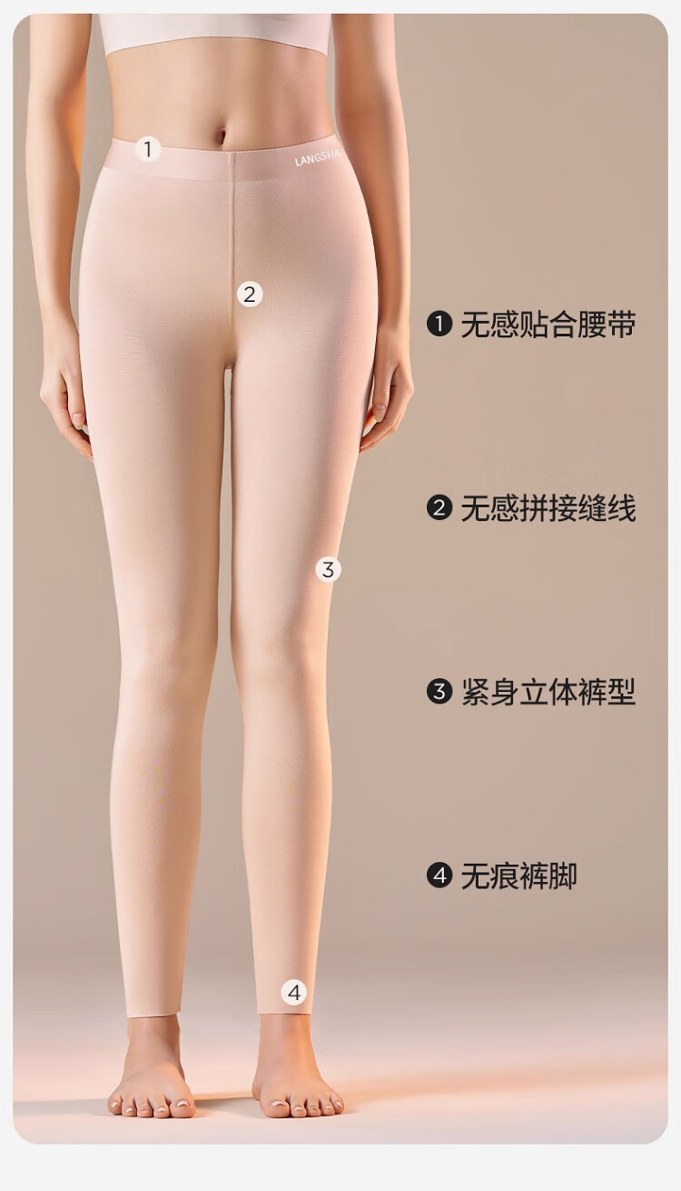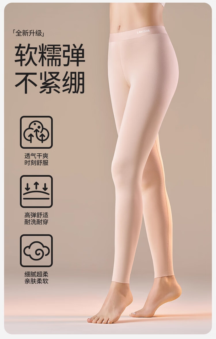 浪莎秋裤女薄款10A抑菌无痕薄款打底裤秋冬女士衬裤内穿紧身裤 蜜桃茶