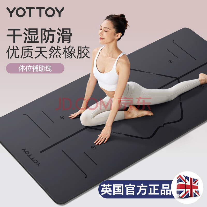 yottoy天然橡胶防滑瑜伽垫183*68cm初学者加厚加宽加长健身垫男女加厚