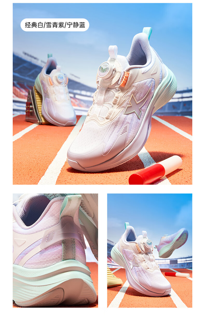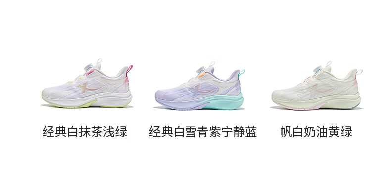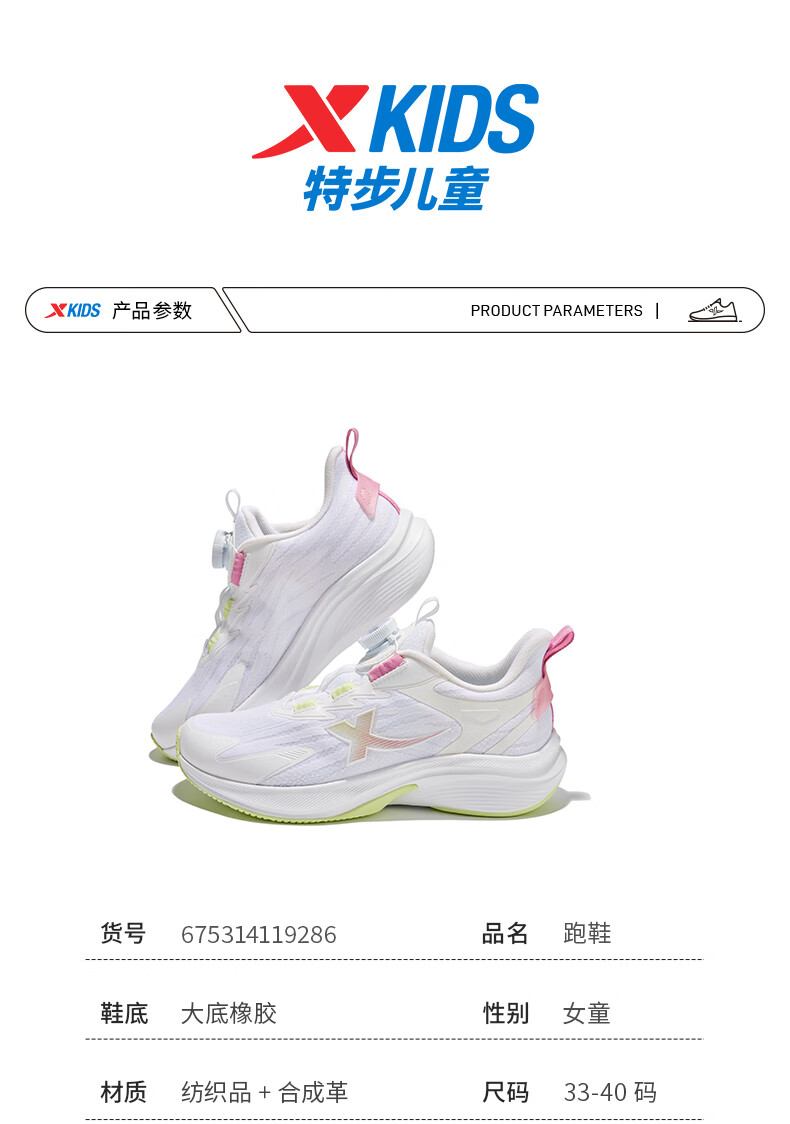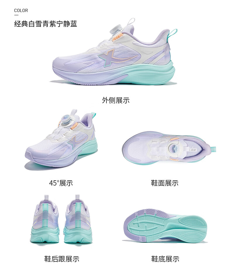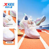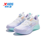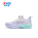 特步(XTEP)童鞋儿童棉花糖女童网面透气旋钮扣跑鞋 经典白/雪青紫/宁静蓝 37