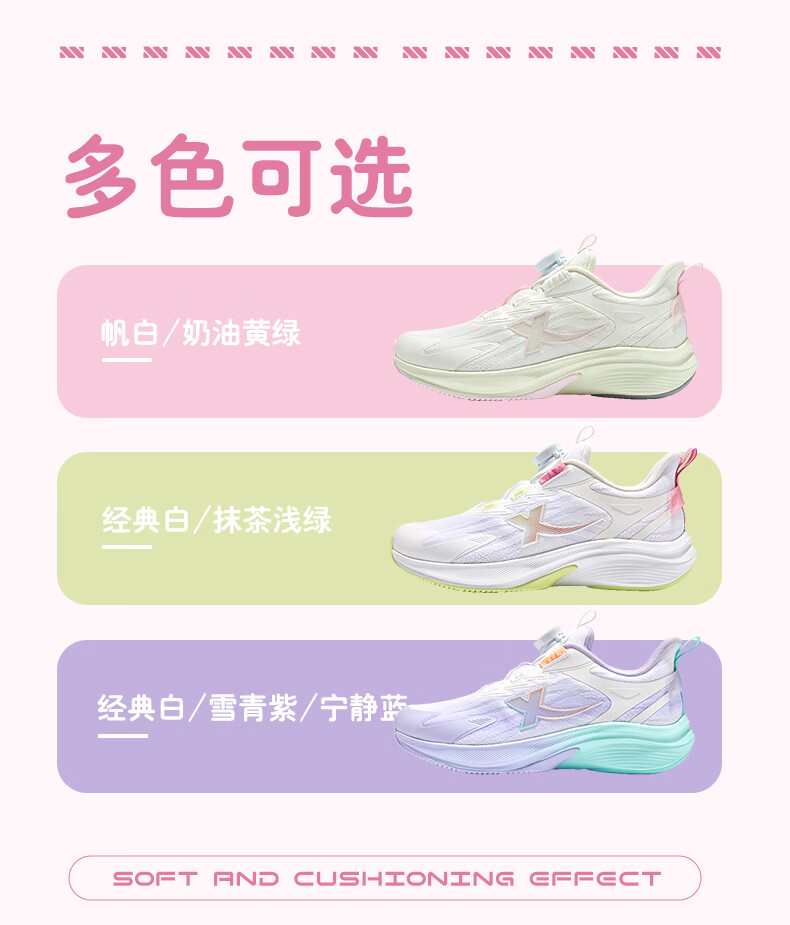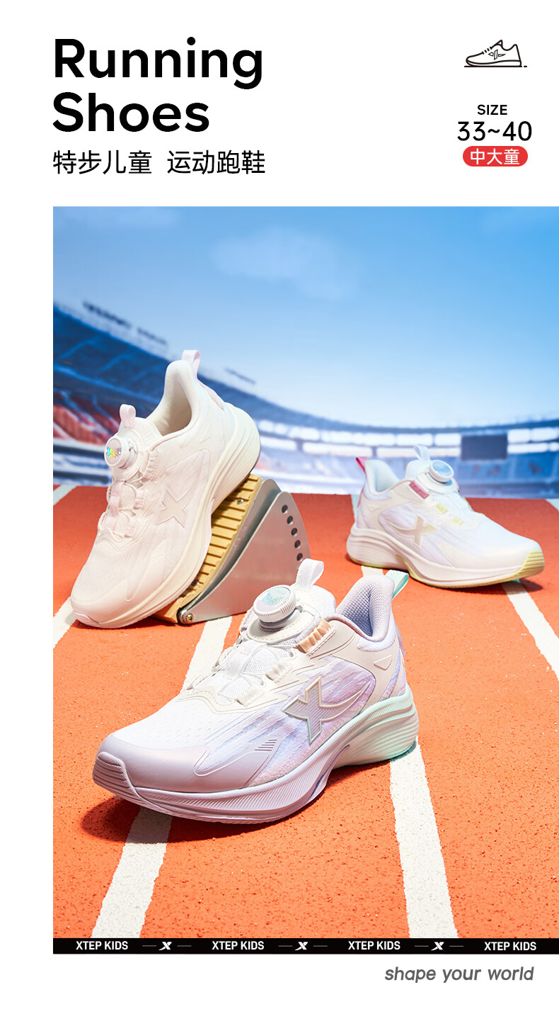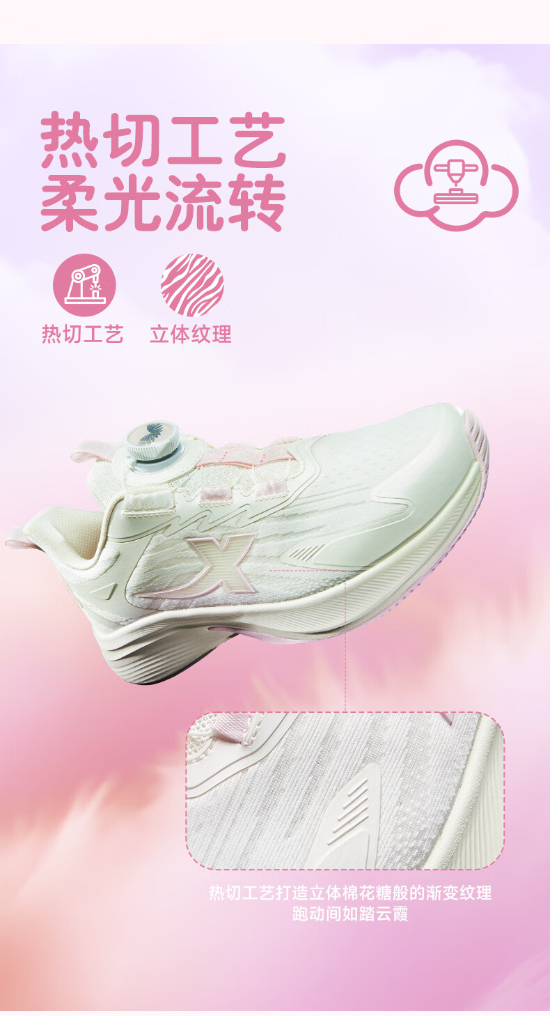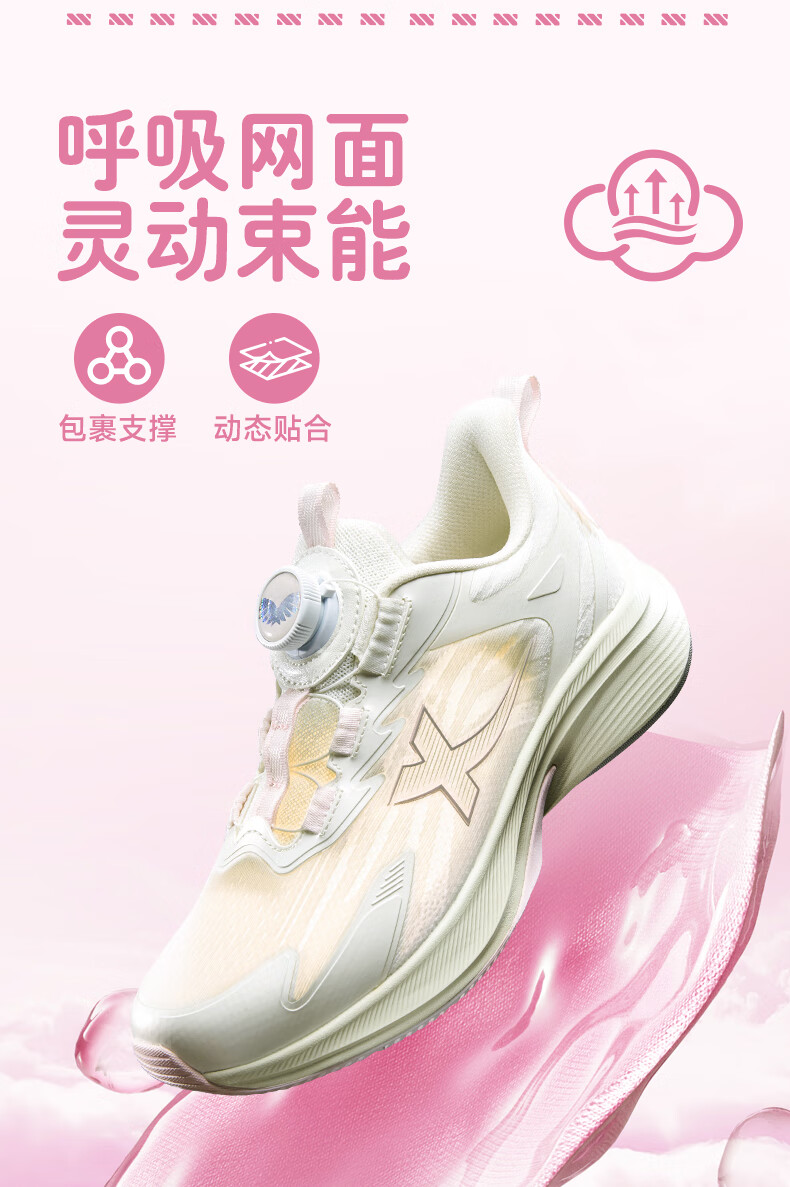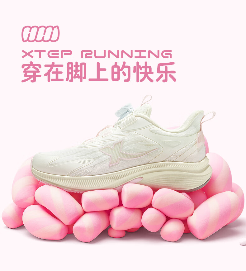 特步(XTEP)童鞋儿童棉花糖女童网面透气旋钮扣跑鞋 经