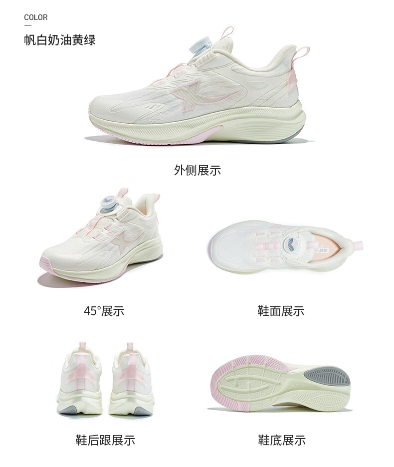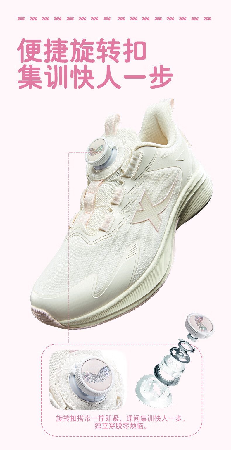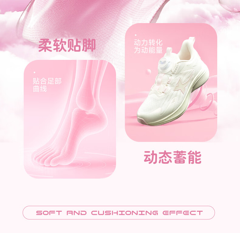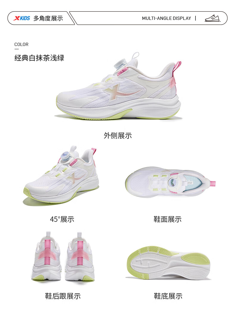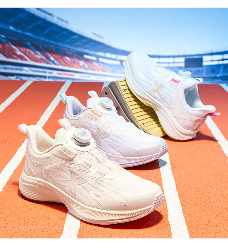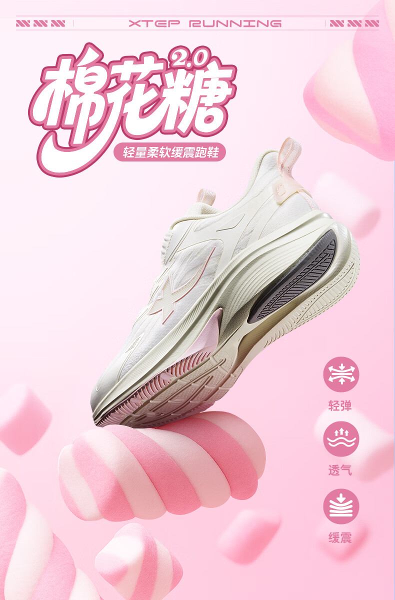 特步(XTEP)童鞋儿童棉花糖女童网面透气旋钮扣跑鞋 经