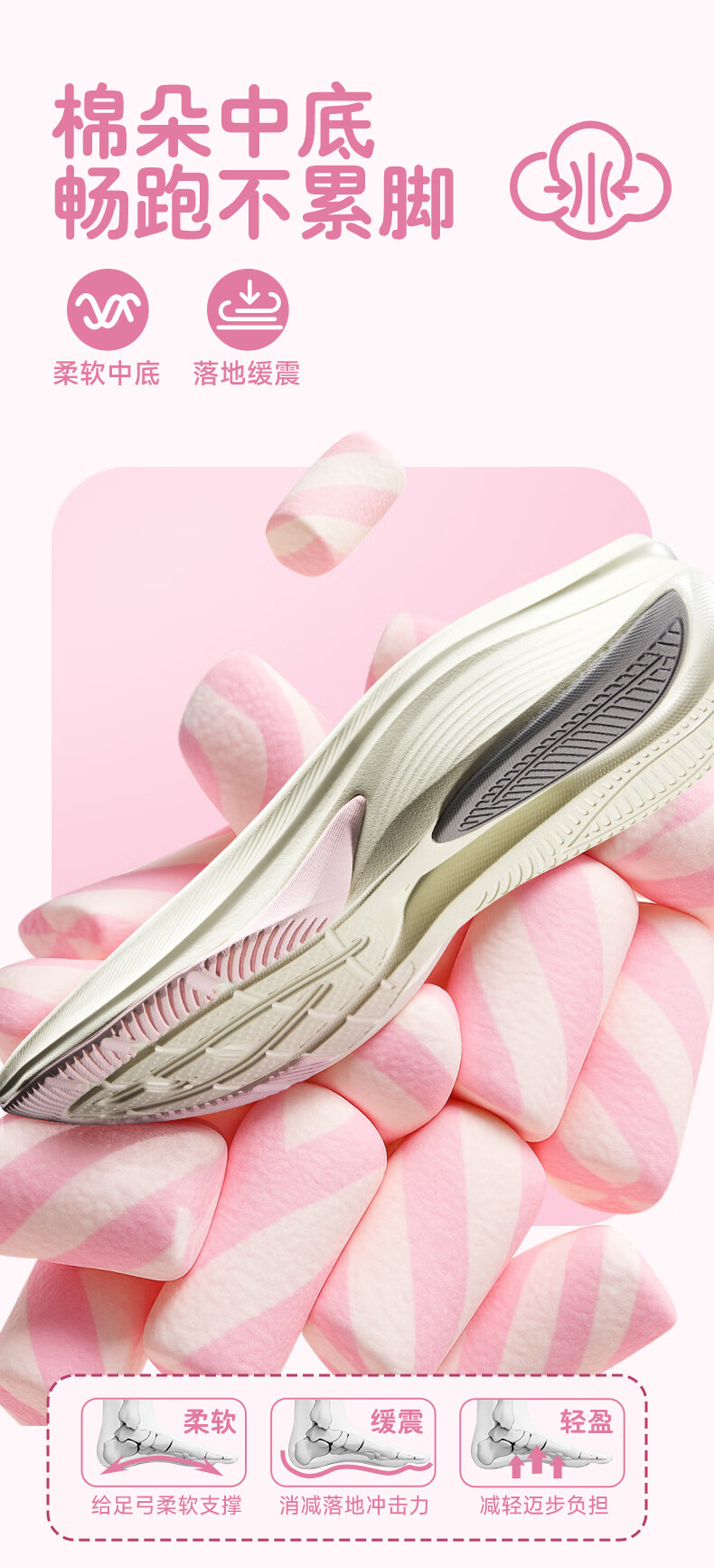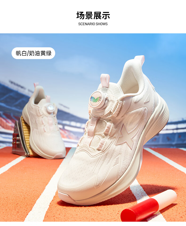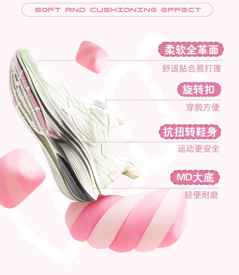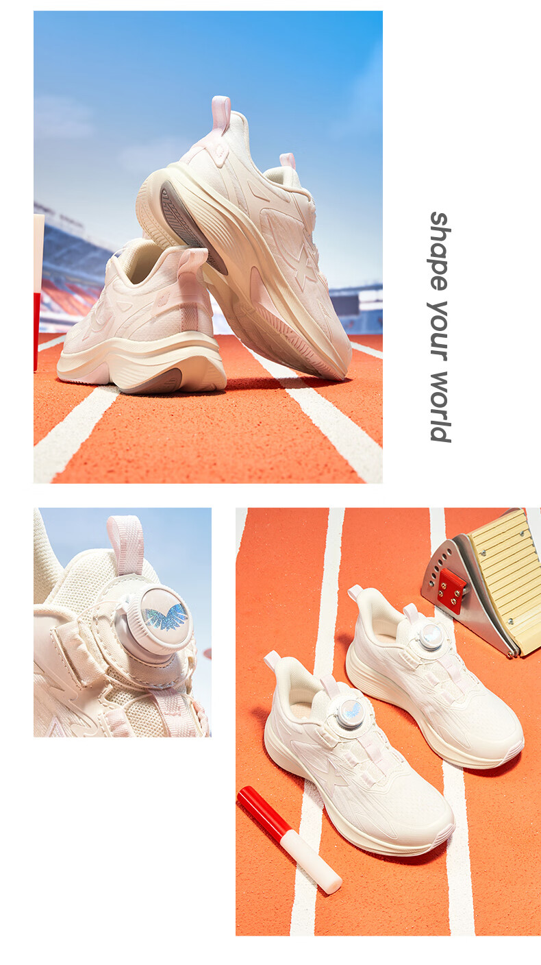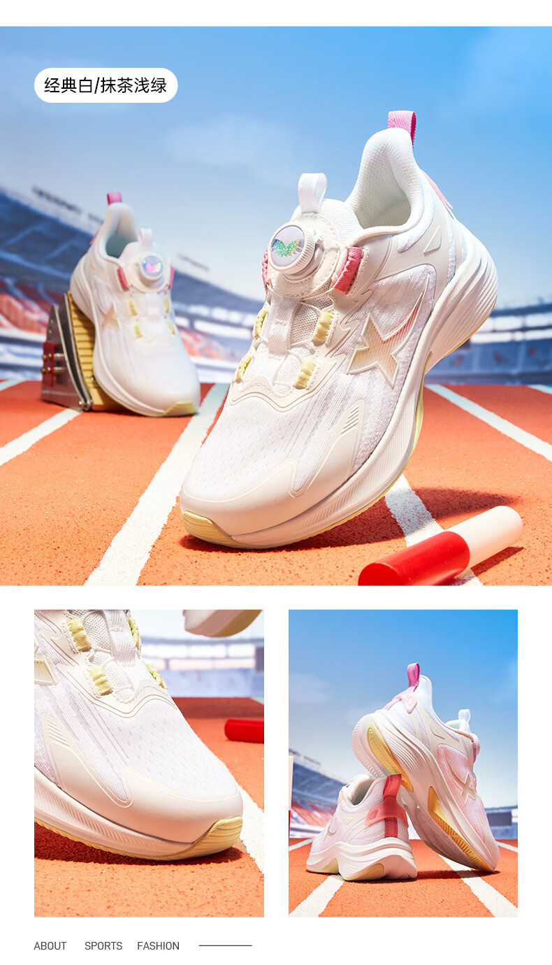 特步(XTEP)童鞋儿童棉花糖女童网面透气旋钮扣跑鞋 经