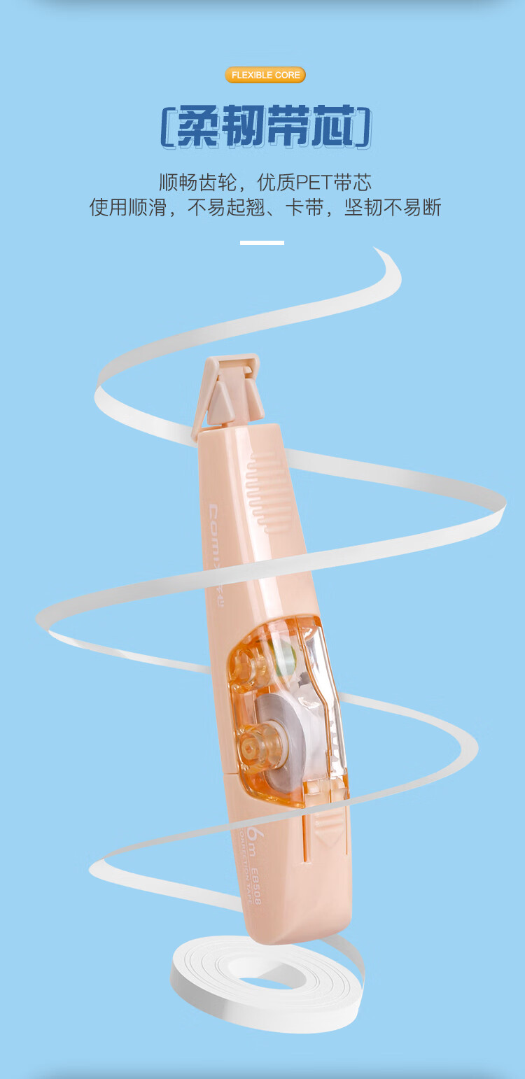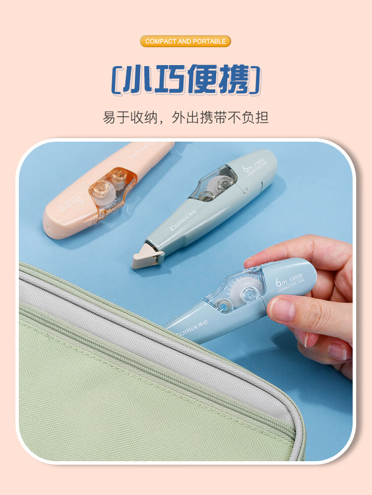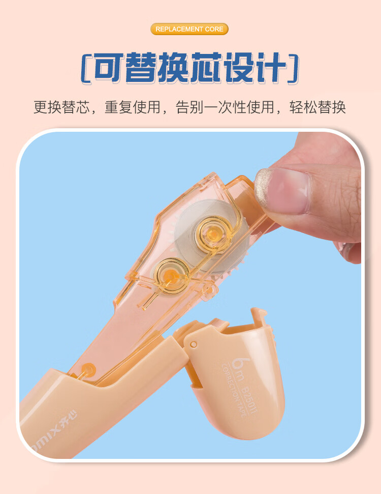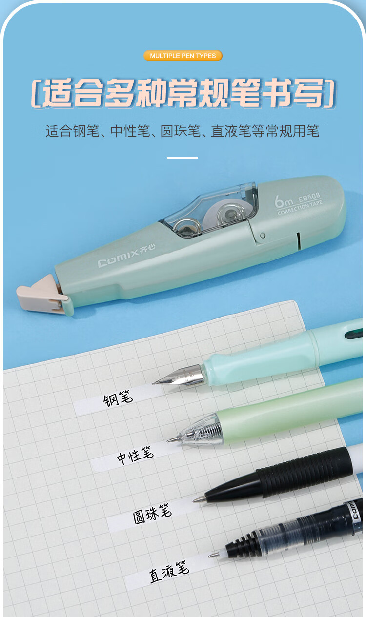 齐心(COMIX)36m笔型修正带6只装 大容量可换替芯便携高颜值 学生开学文具用品涂改带改正带正带EB508
