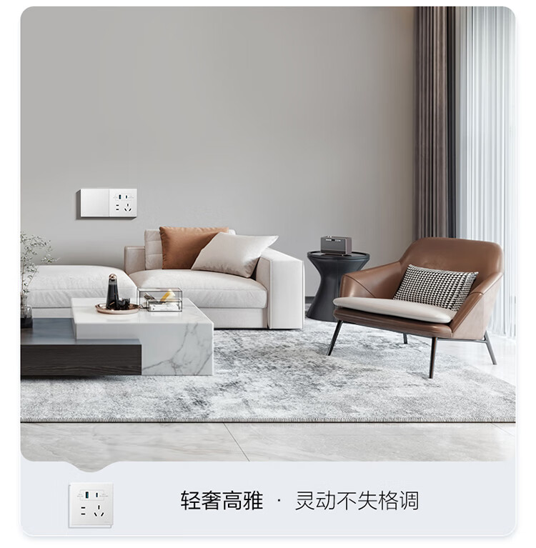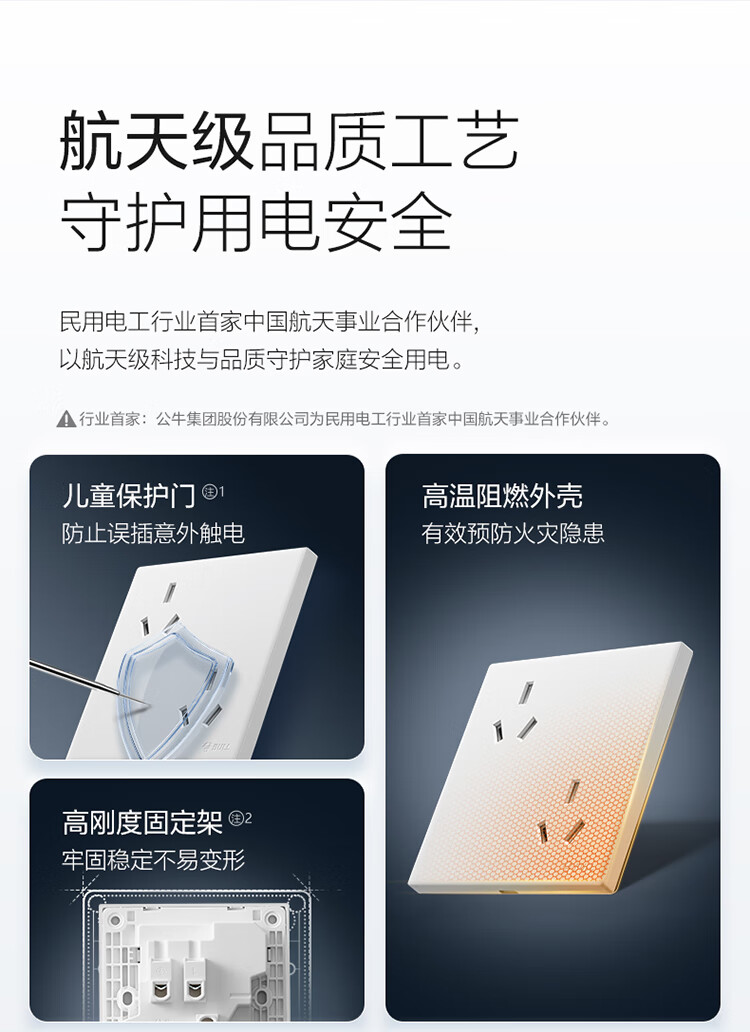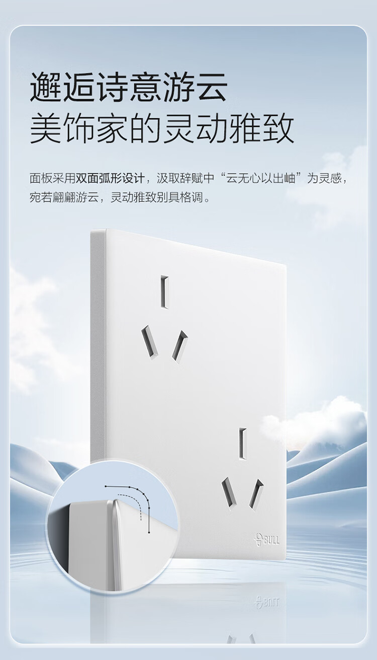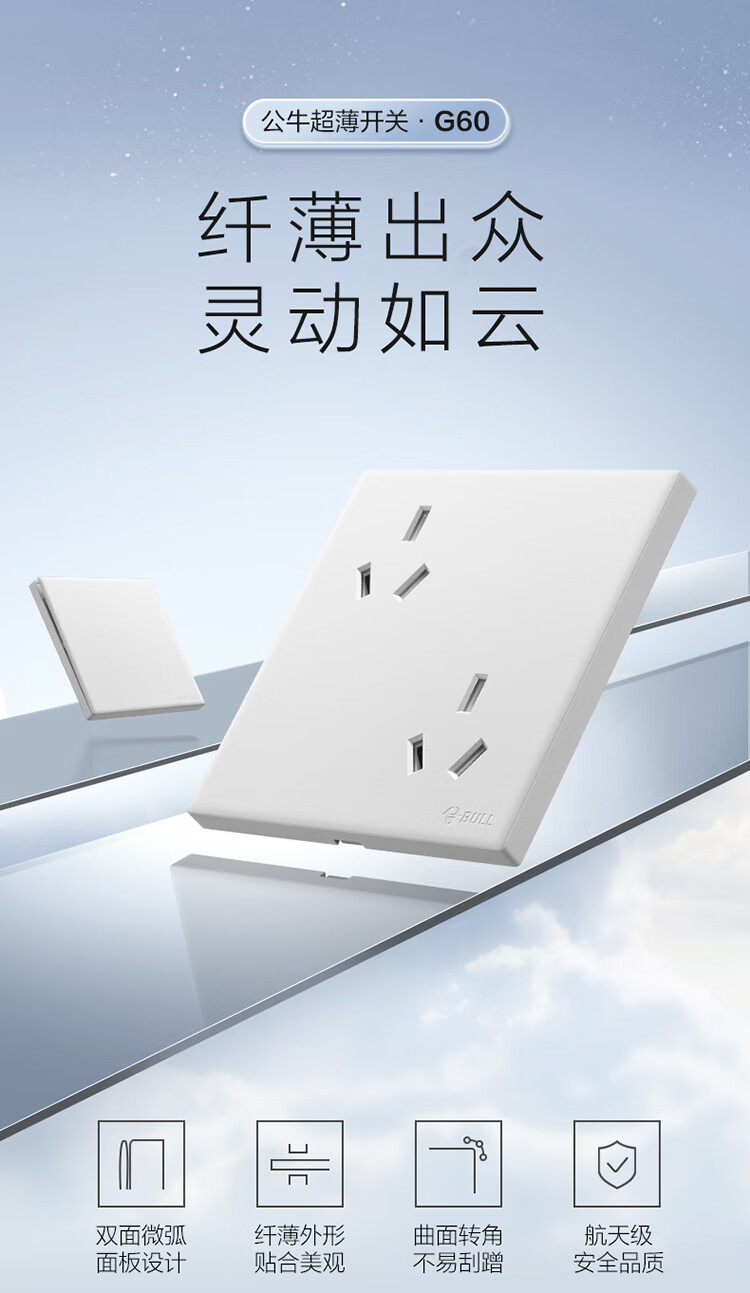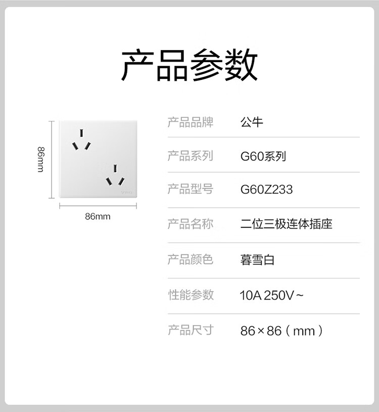 公牛(BULL)开关插座 G60系列六孔10A插座86型超薄插座面板G60Z233暮雪白