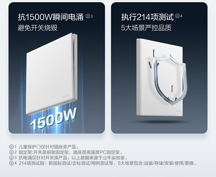 公牛(BULL)开关插座 86型防水开关面板盒防水罩插座浴