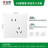 公牛(BULL)G12插座量贩装10A斜五孔插座奶油风G12Z223AS暮雪白10只插座套装