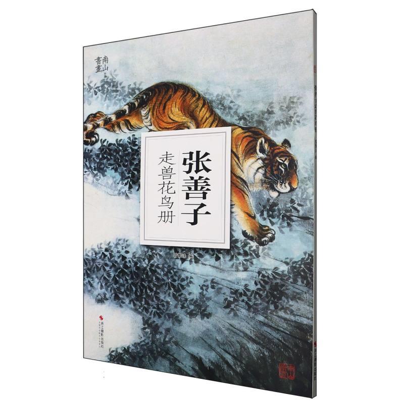 “南山册页”系列为中国历代名家册页小品集,适合书画爱好者、研究者临摹、学习。本册精心选编了张善子以虎、熊猫、花鸟等为题材的代表写生作品。张善子,1882年生于四川内江,原名正兰,单名泽,字善孖,自号“虎痴”,是国画大师张大千的二哥。张善子工诗、善文、精鉴定,山水、人物、花鸟画无所不能,尤精于画虎,通过饲养老虎,对老虎的脾气、习性以及动作神态了如指掌。张善子所画的老虎,传神真,笔墨精妙,展现了极高的艺术造诣和独特的艺术魅力。