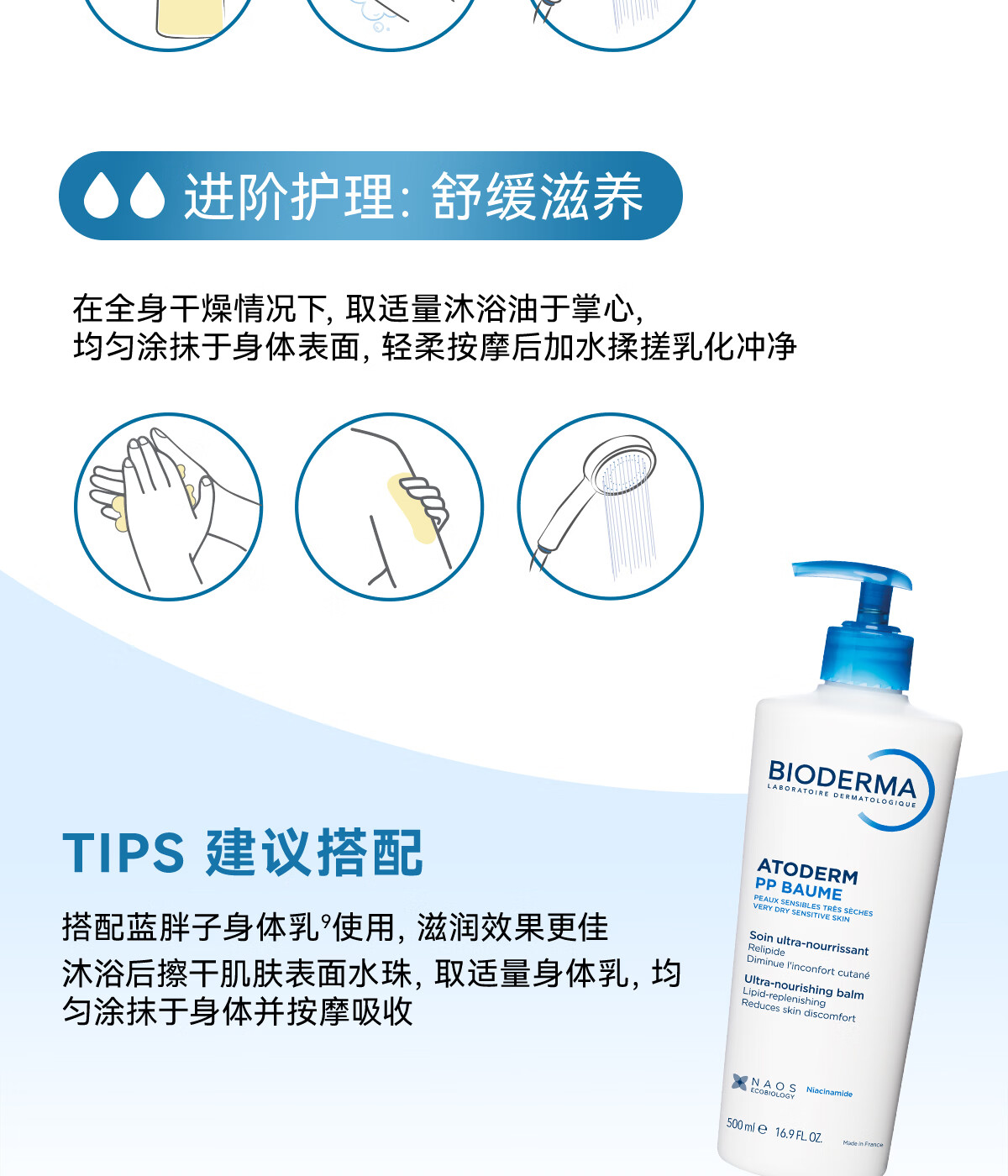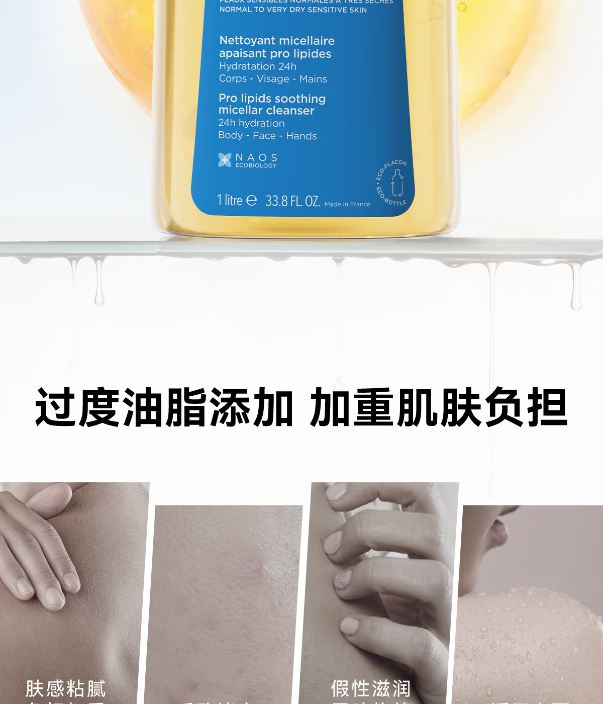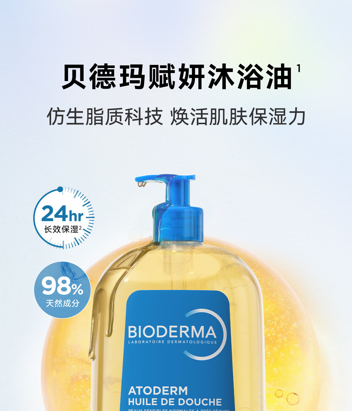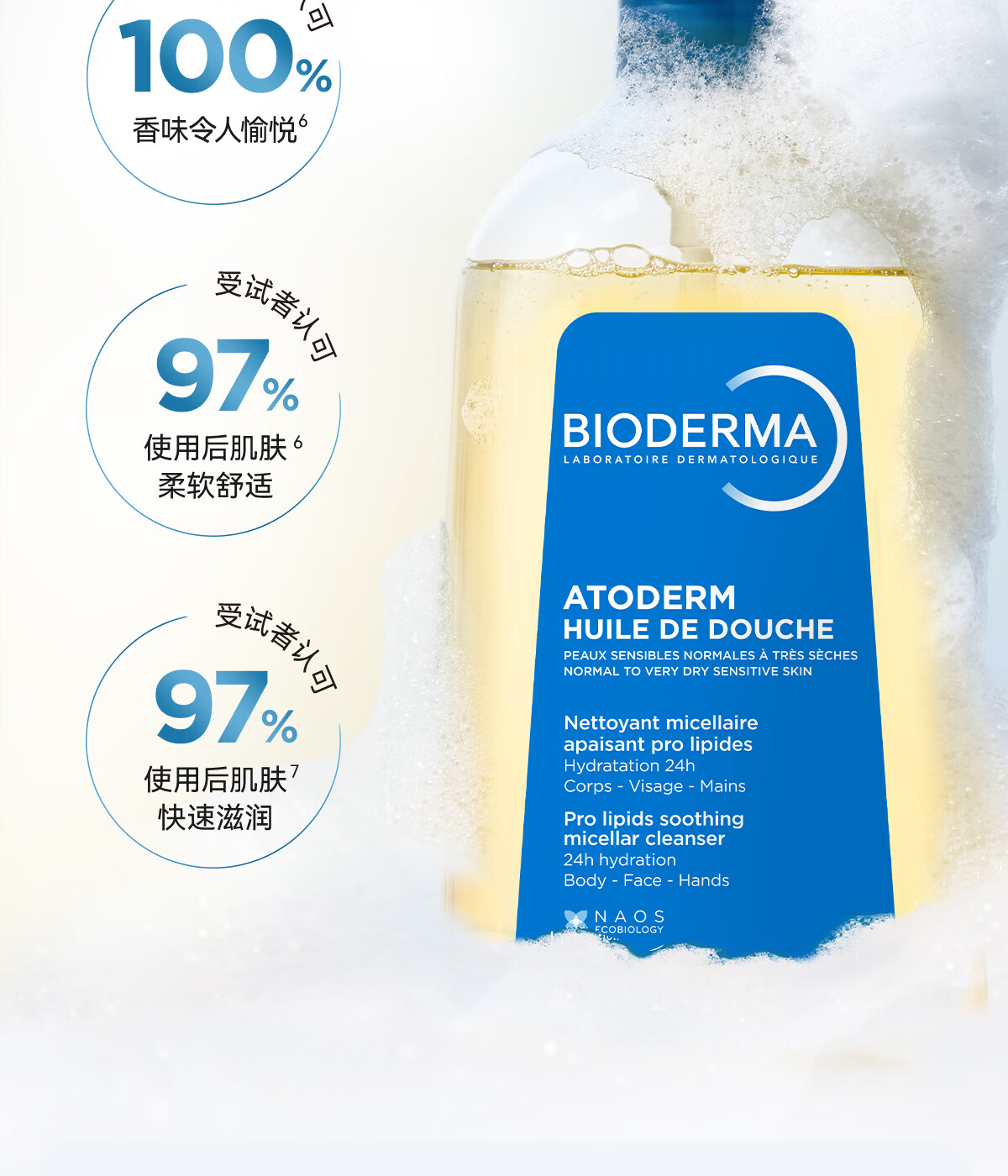 贝德玛赋妍洁净套装1L可卸身体修护脂质水感薄油保湿长效