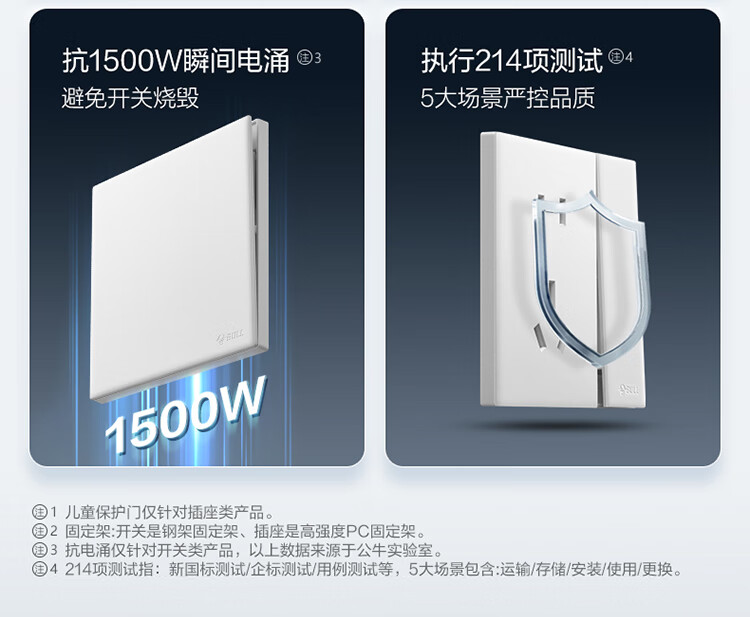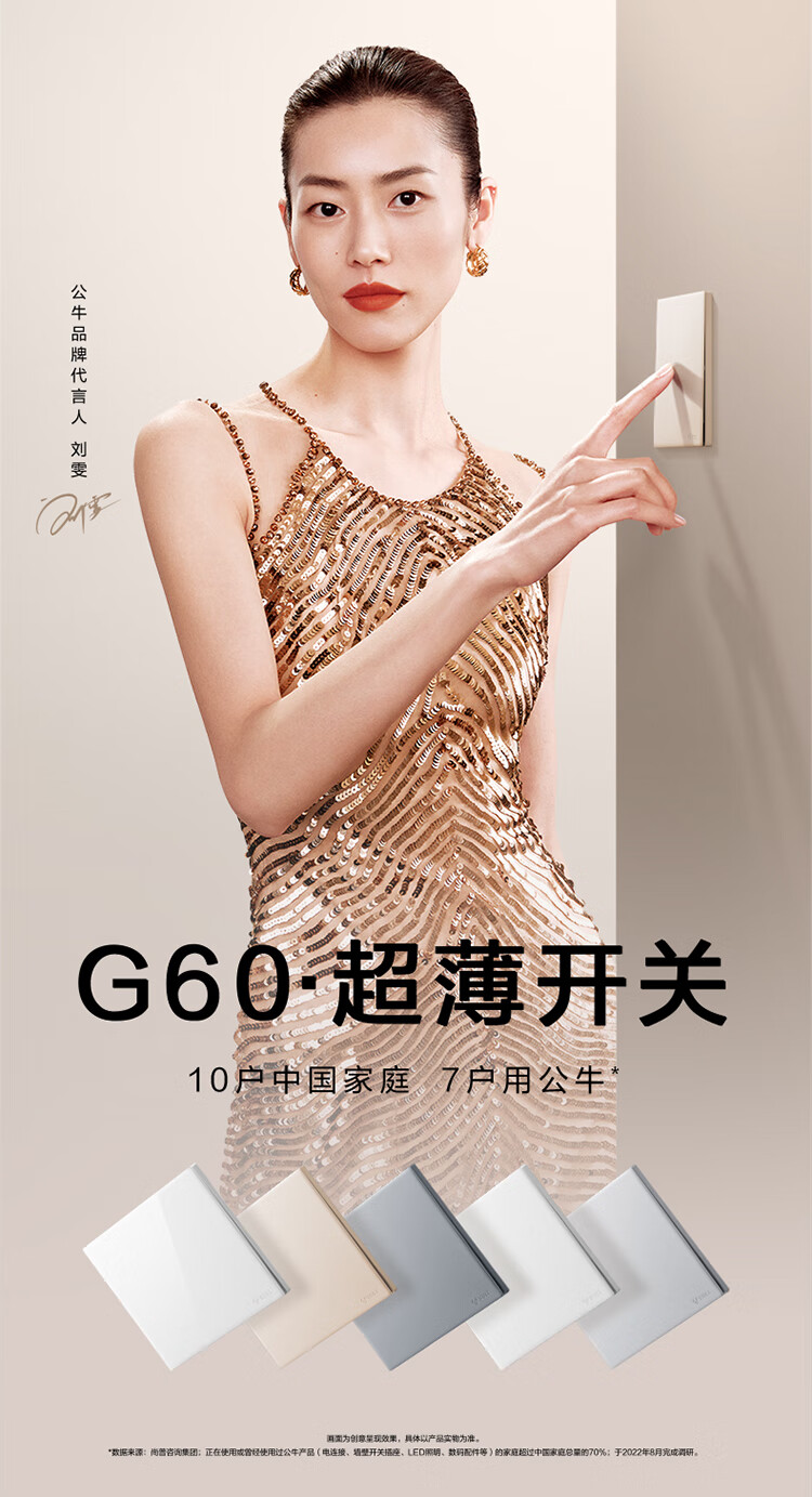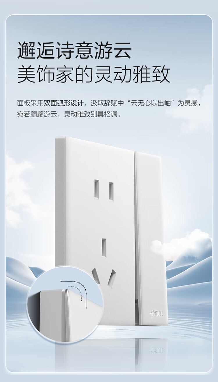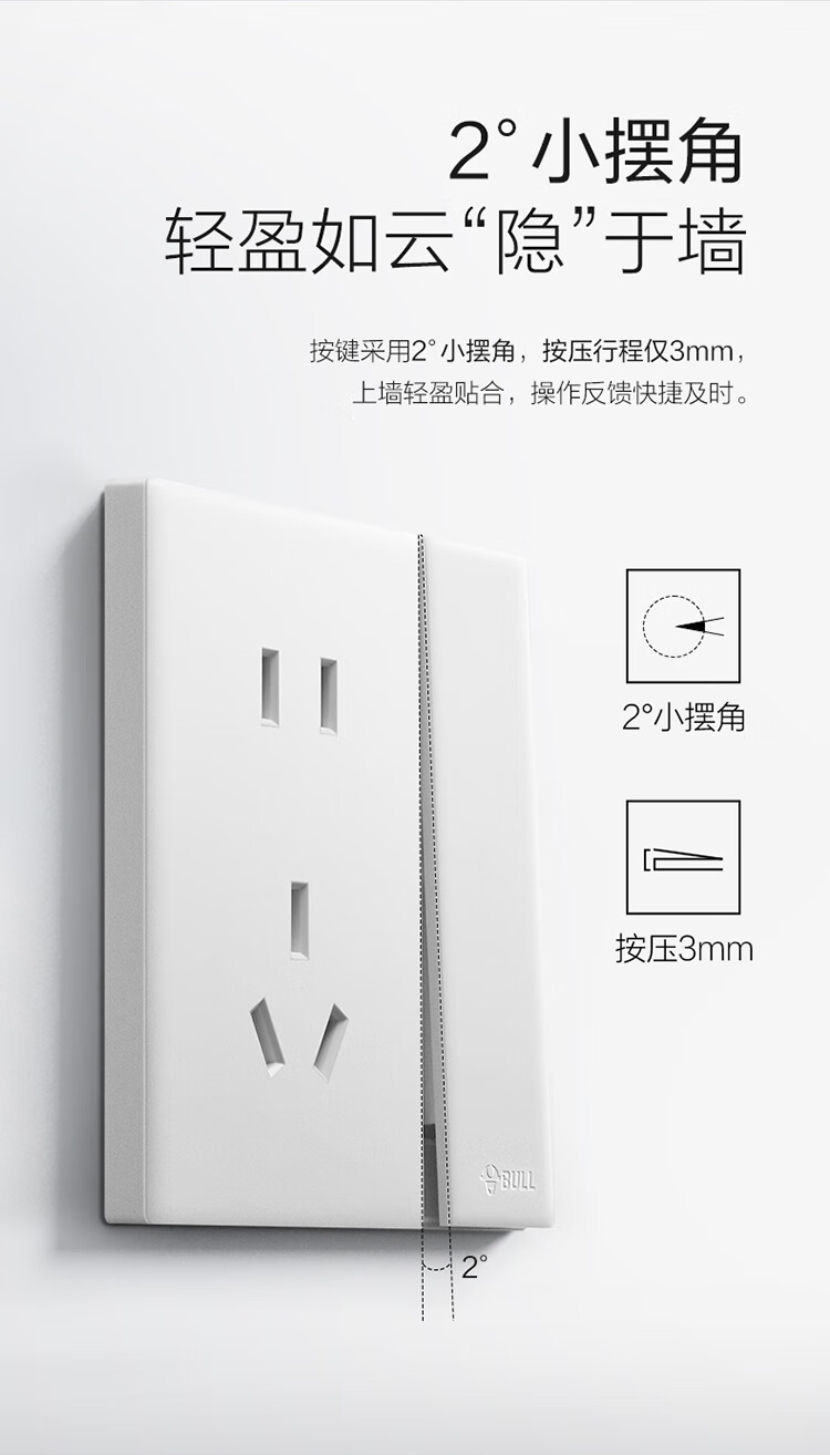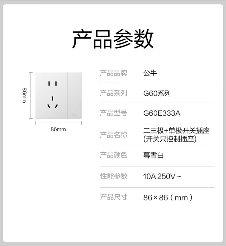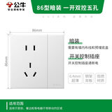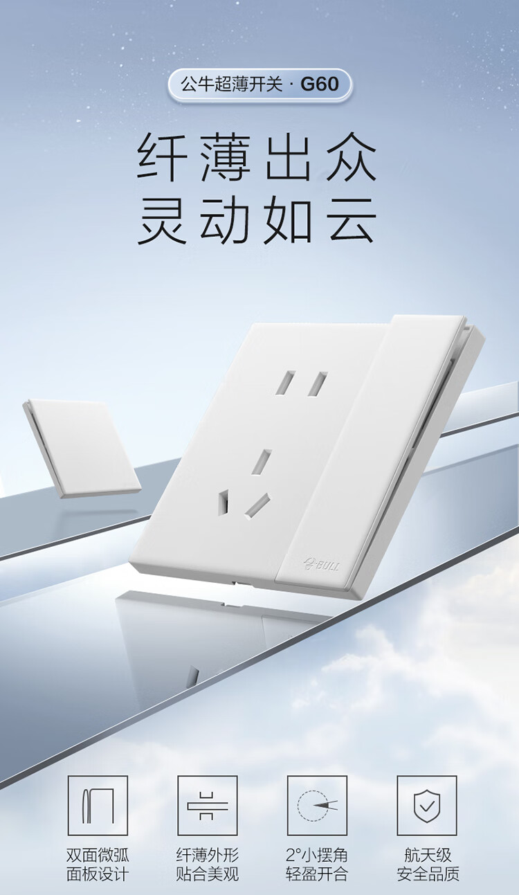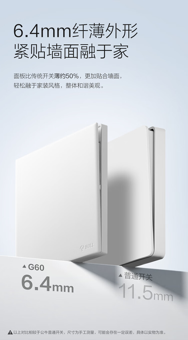 公牛(BULL)开关插座 G60系列一开单控五孔带开关插座超薄面板G60E333A暮雪白